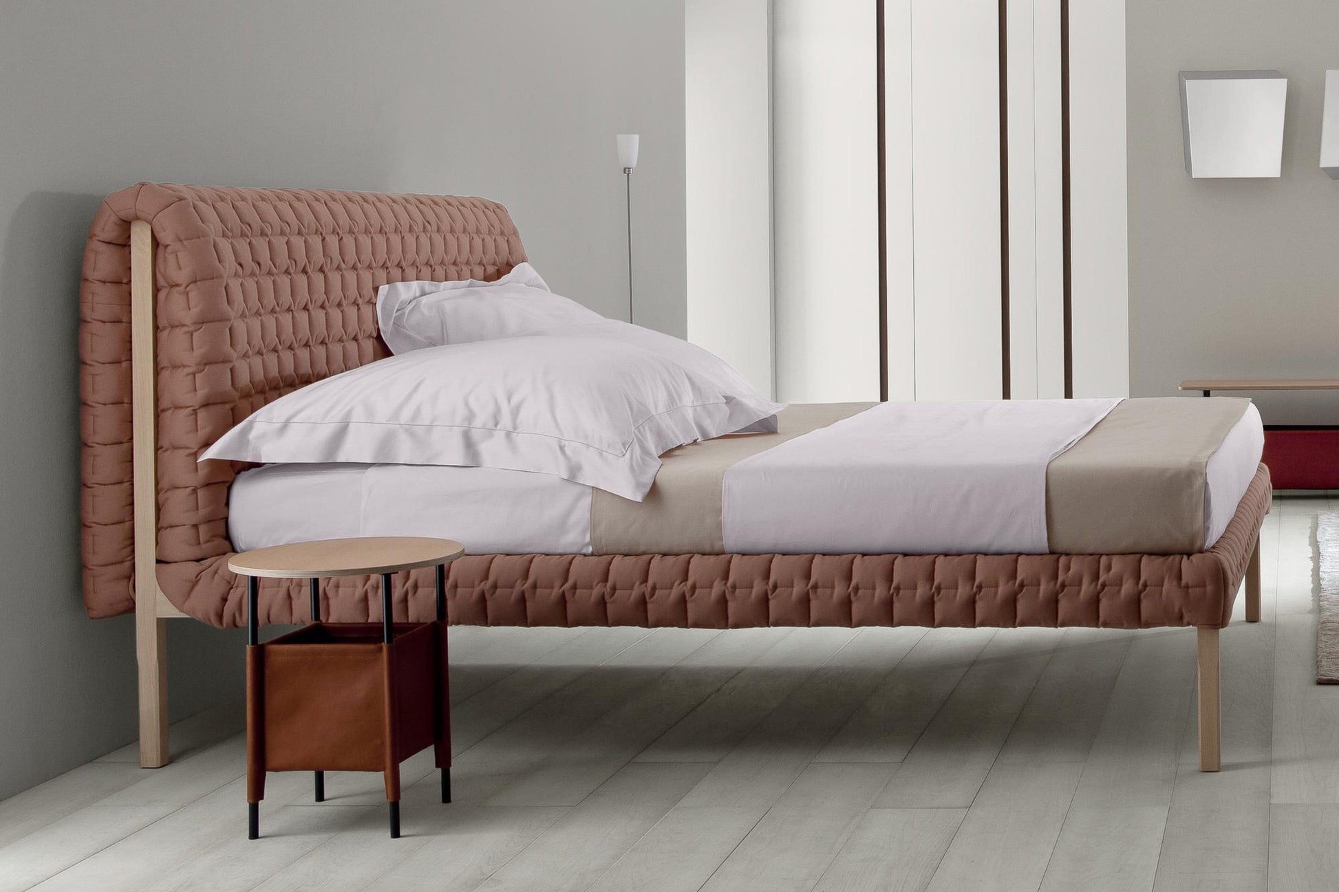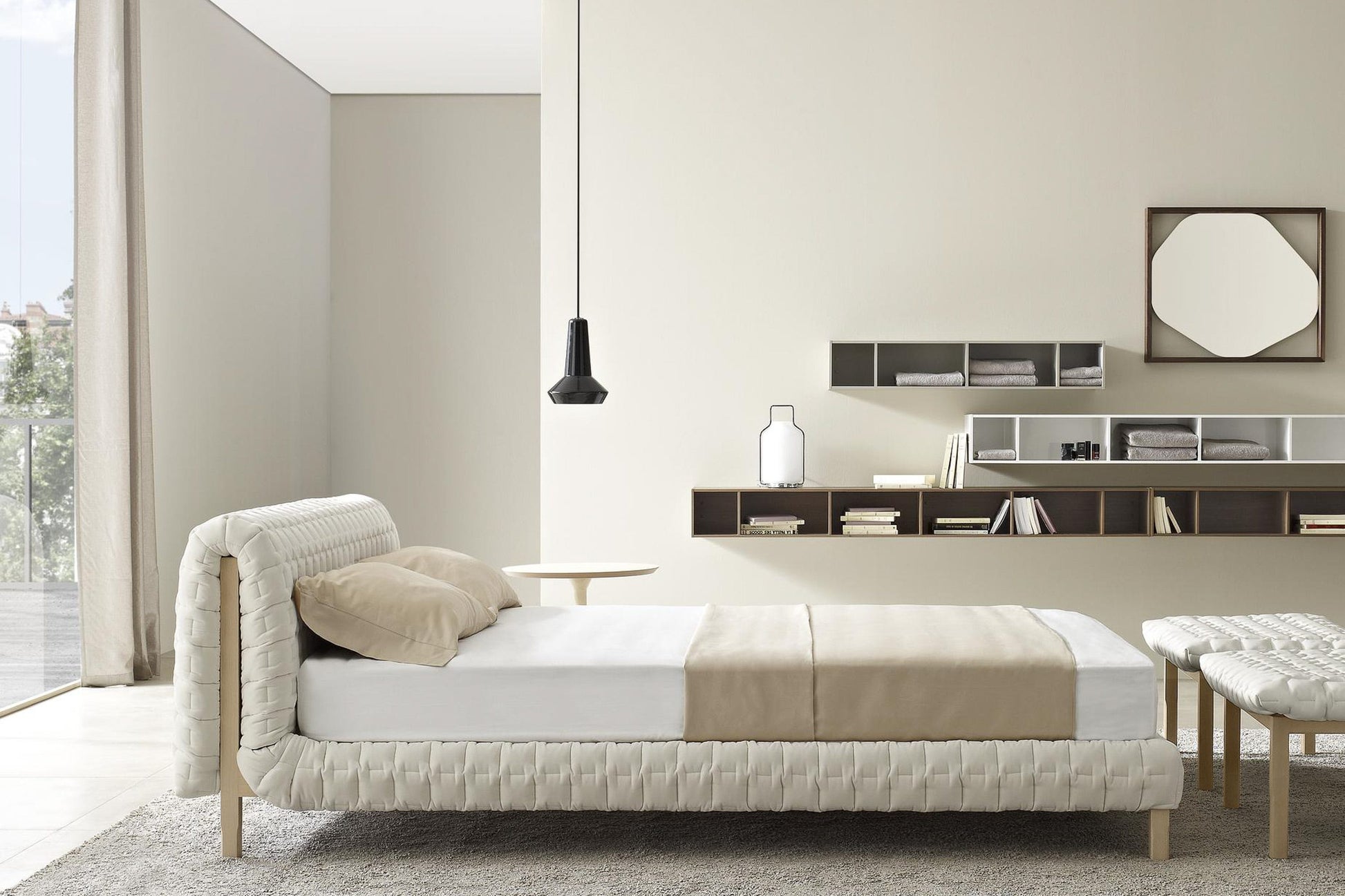 Pour le lit Ruché, Ligne Roset associe l’inhabituel : une structure en hêtre massif à la tradition avec un matelassage audacieux, signature de son expertise. Les ondulations de sa couette, attachée à son armature en bois créent un magnifique contraste entre des lignes franches et des courbes invitantes.