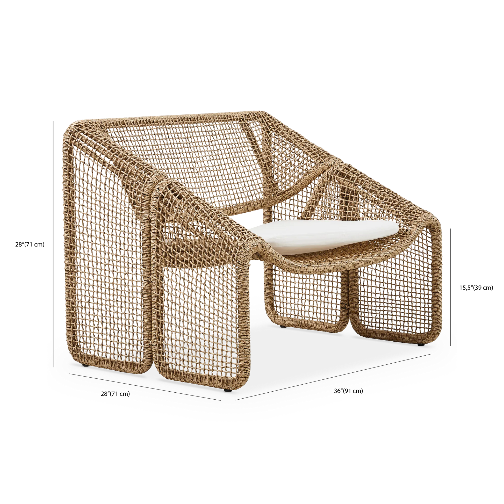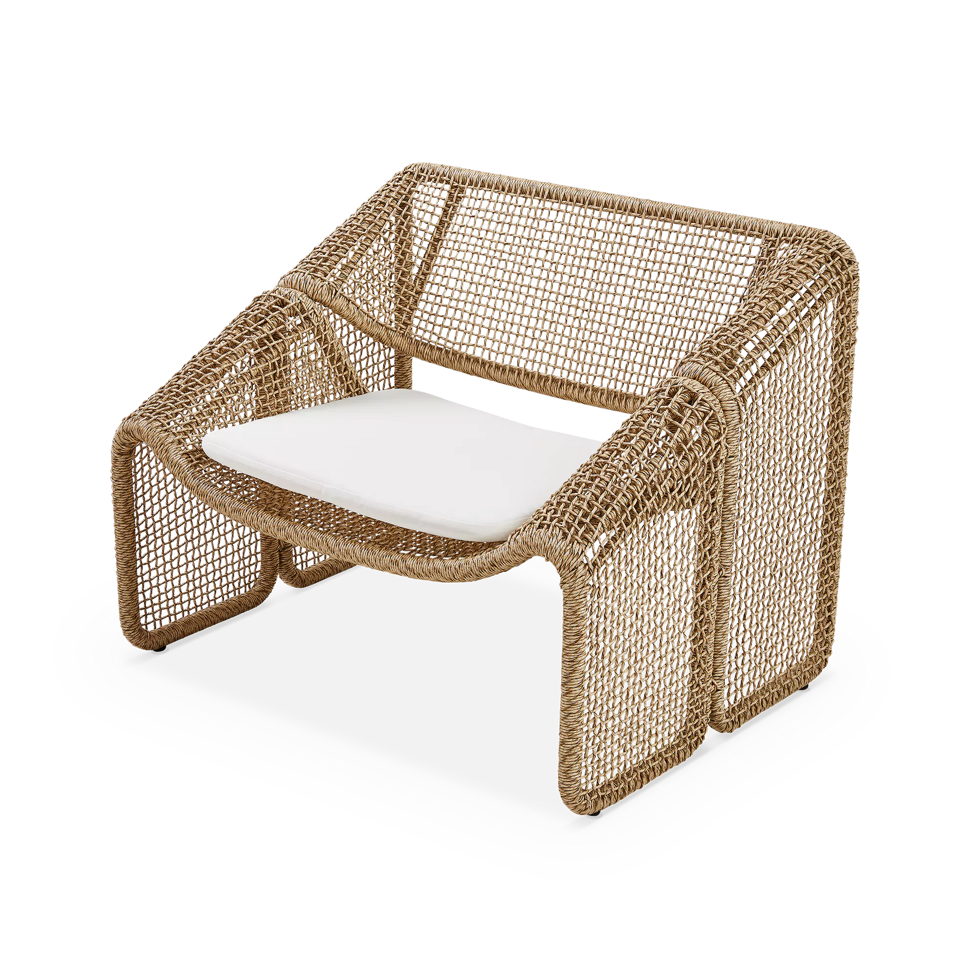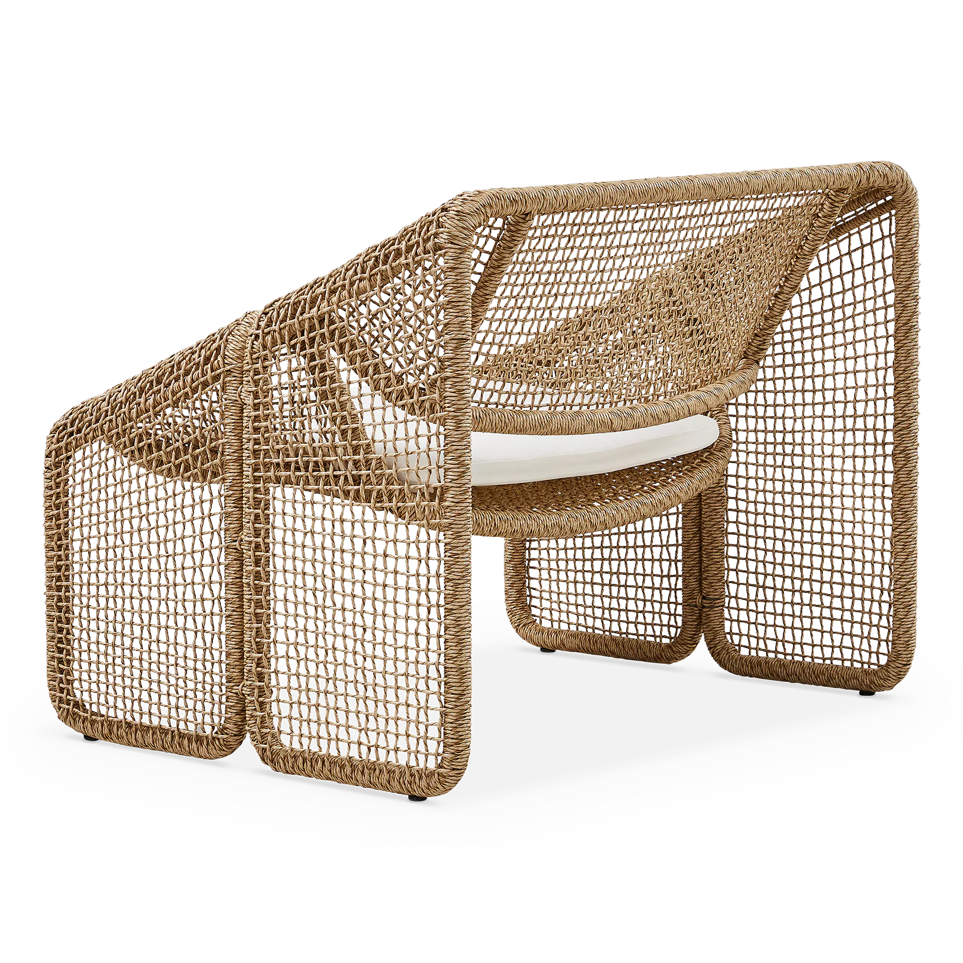 Le fauteuil Selma souffle un air artisanal au salon. Sa structure en fibre tressée, s’apparentant à l'osier, résiste à la fois au soleil et aux intempéries.