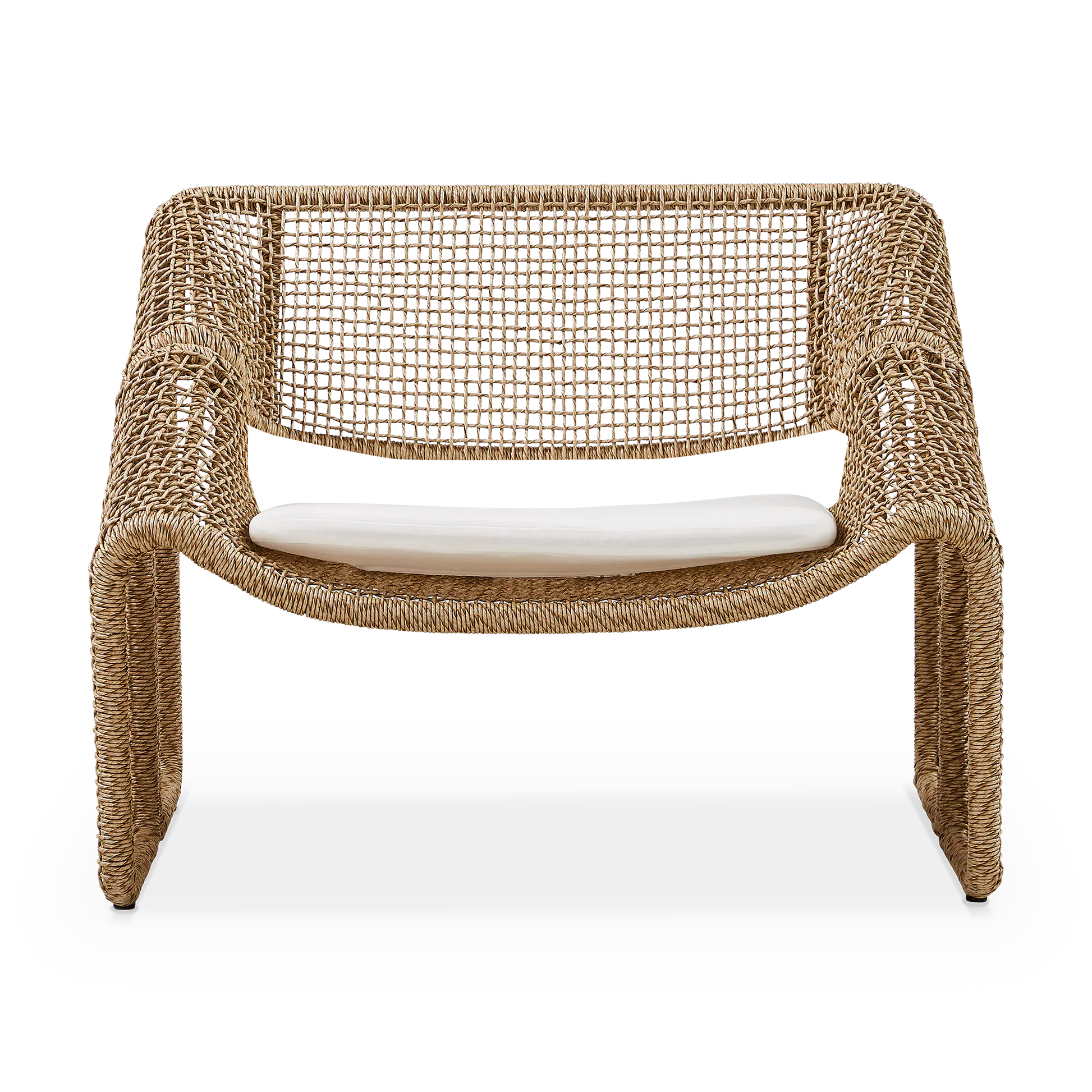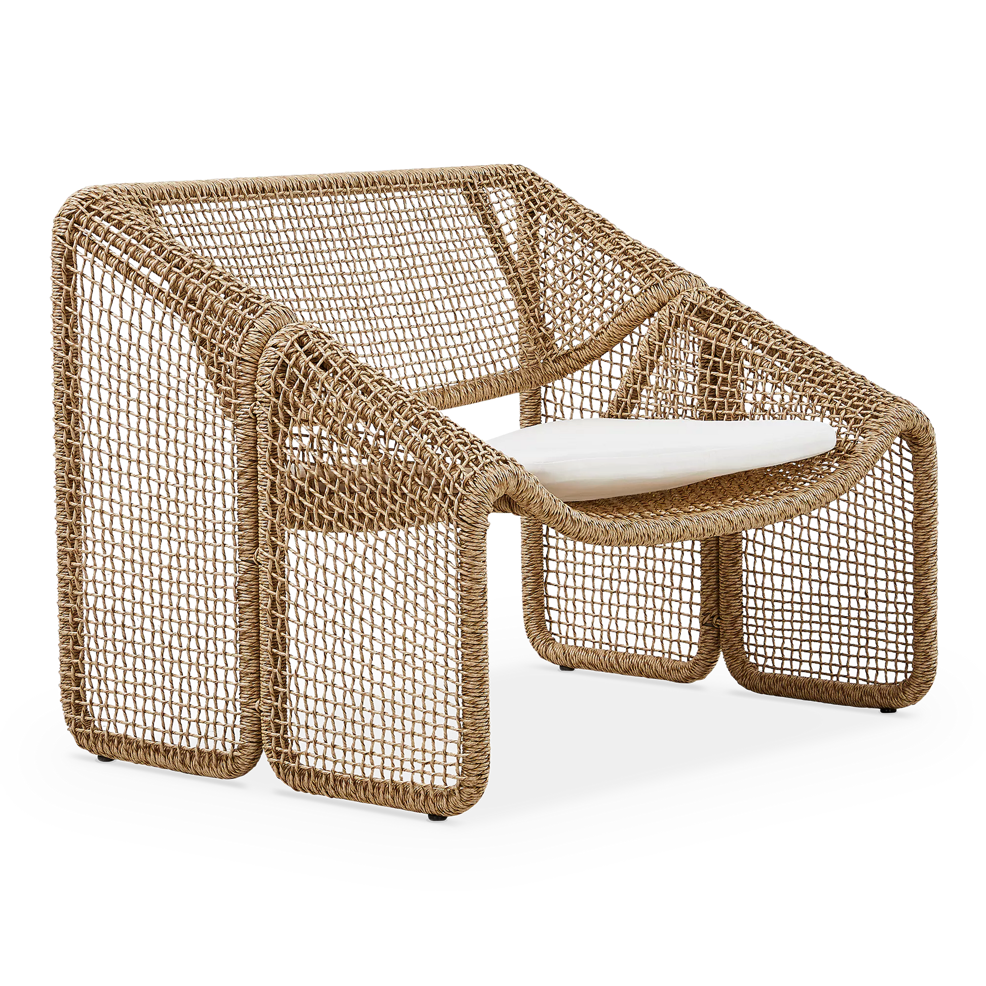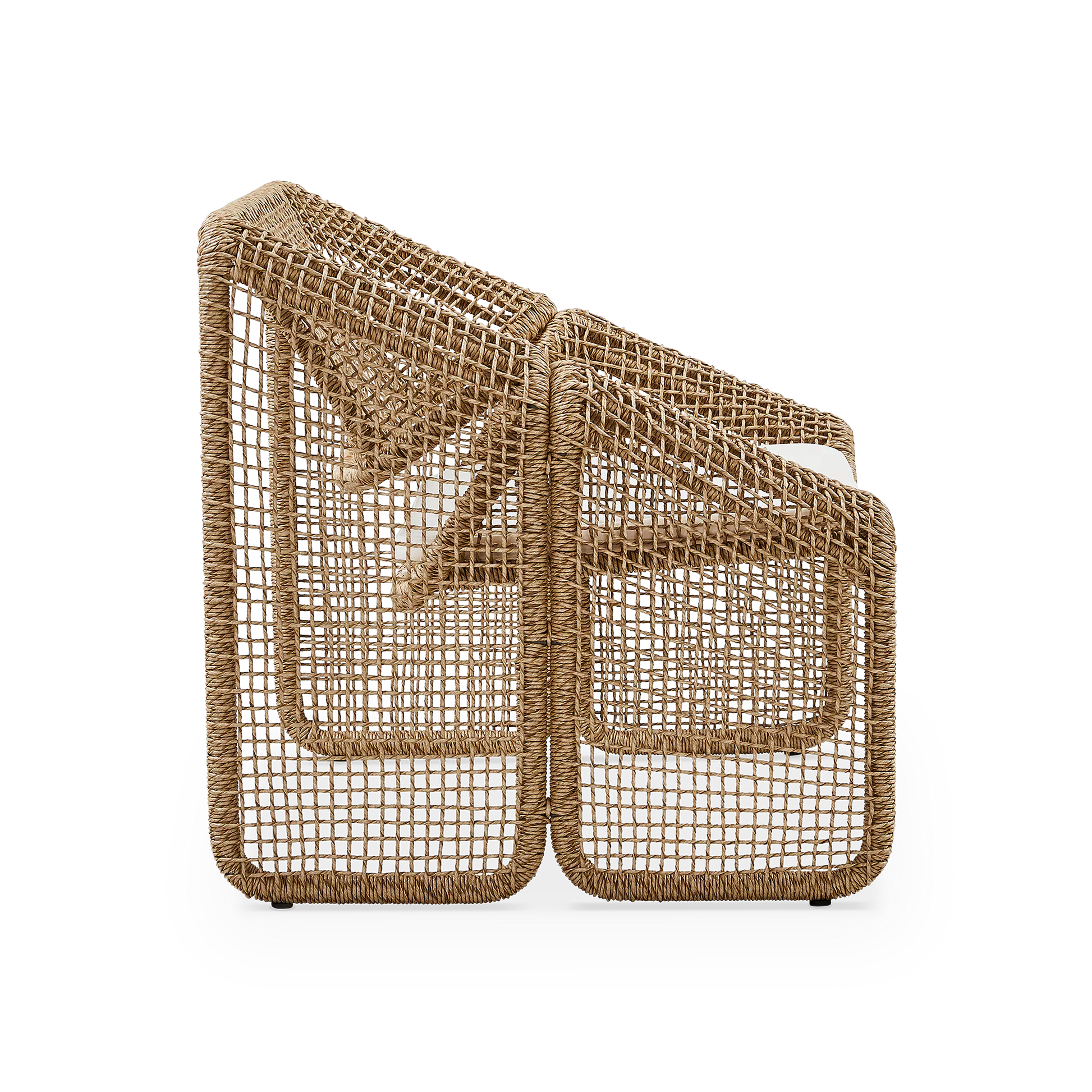 Le fauteuil Selma souffle un air artisanal au salon. Sa structure en fibre tressée, s’apparentant à l'osier, résiste à la fois au soleil et aux intempéries.