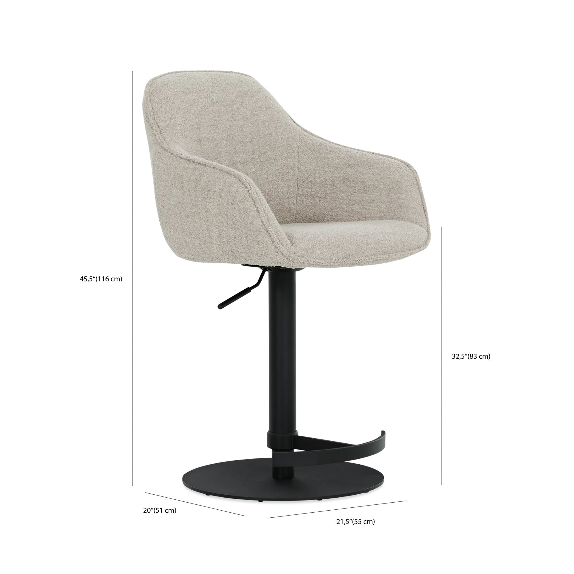 Hauteur de l’assise : 32,5'' (47 cm)