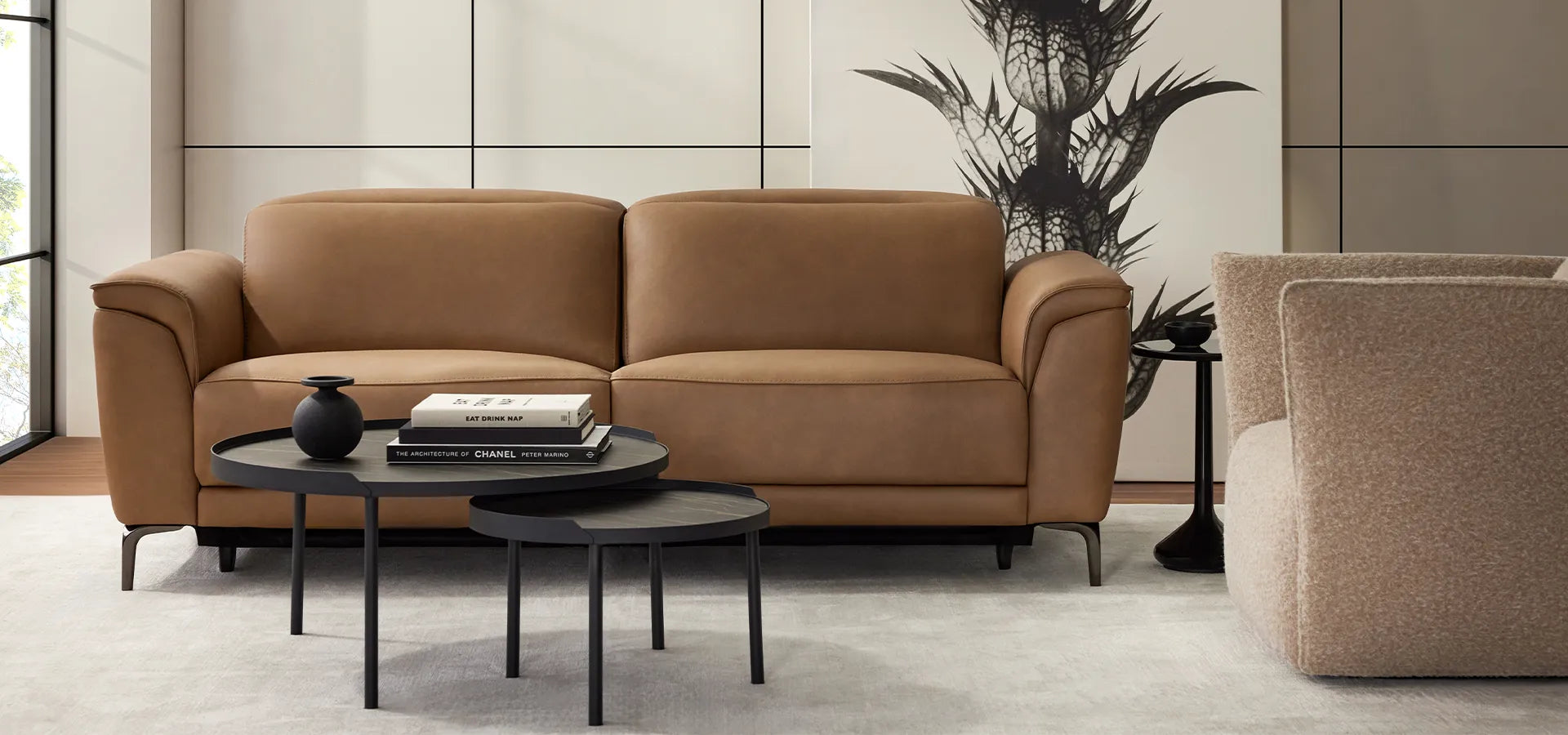 Qu’il soit en tissu texturé ou en cuir lisse, Smith se distingue par son équilibre parfait entre style contemporain et confort absolu. Une pièce signature conçue pour transformer le salon en véritable espace de bien-être.