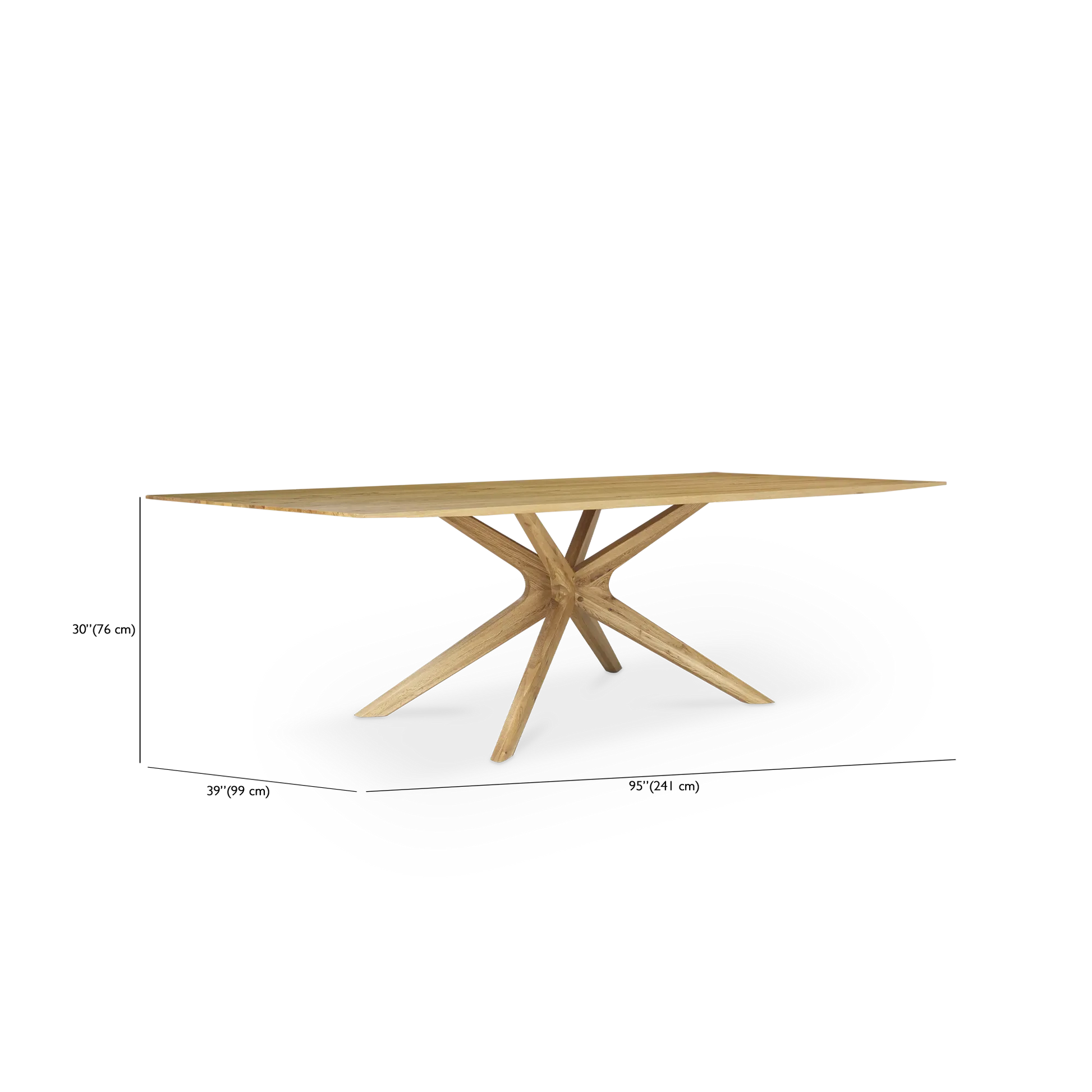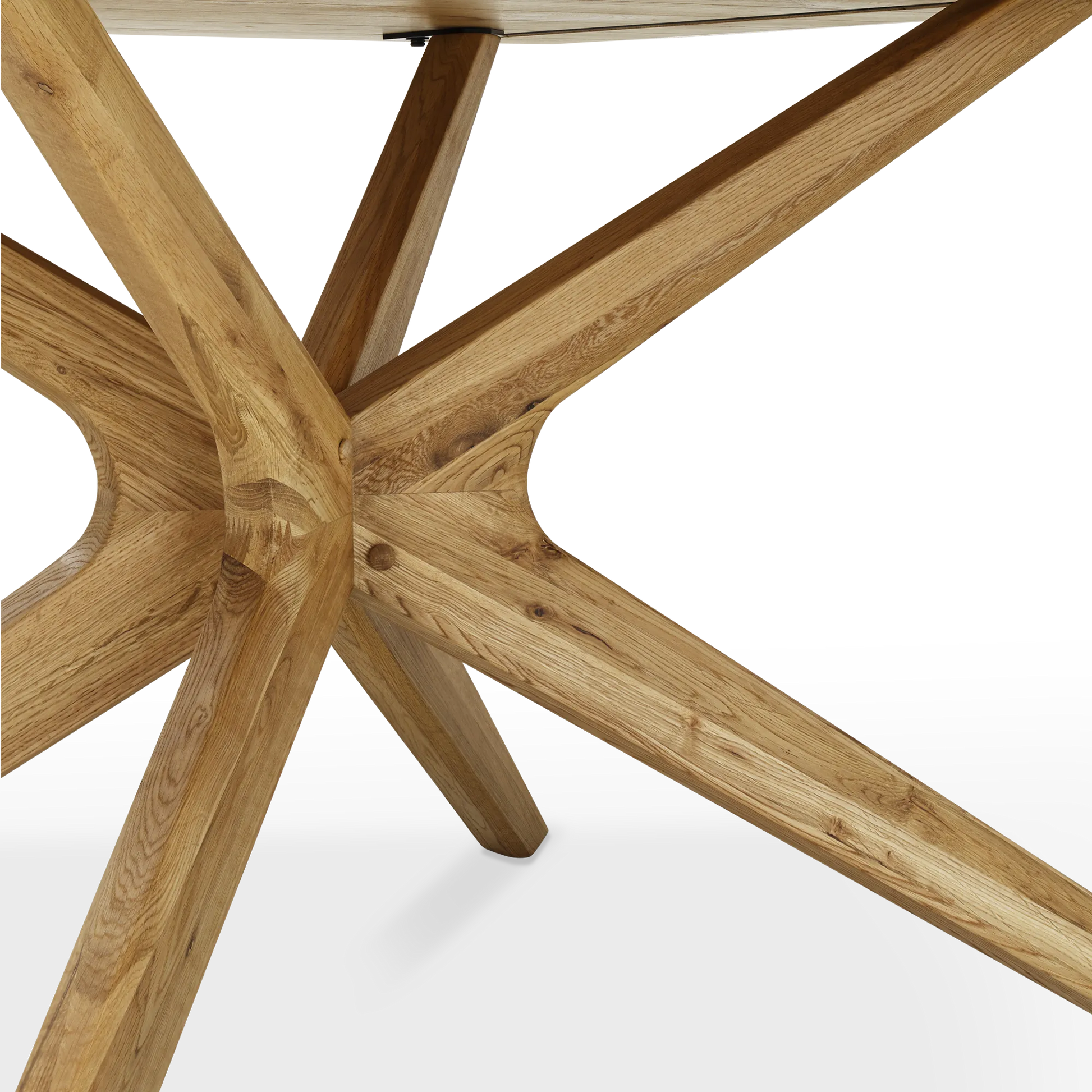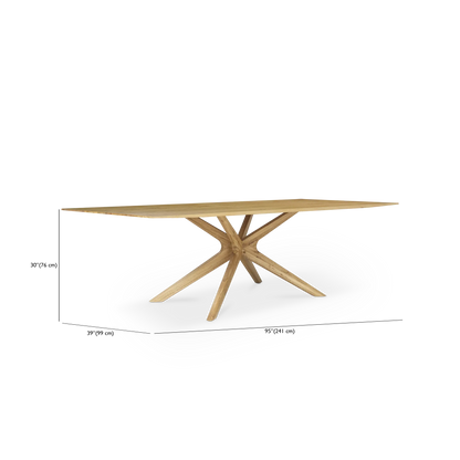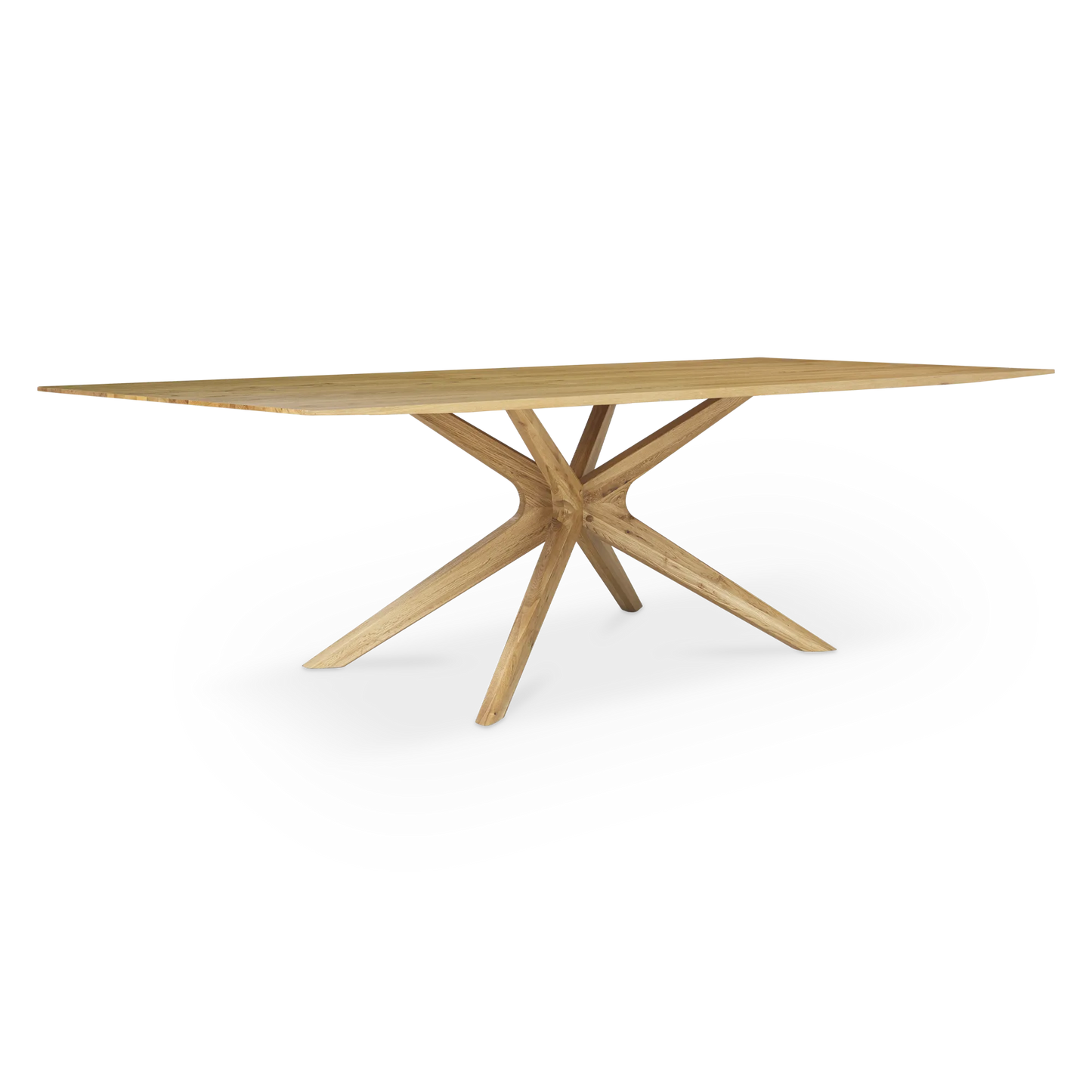 Pied étoilé. Un brin scandinave, Spider crée un effet architectural grâce à sa base en X, qui sera bien mise en valeur par une chaise au piètement épuré. En bois de chêne de haut en bas, elle illumine la salle à manger tout en sobriété.