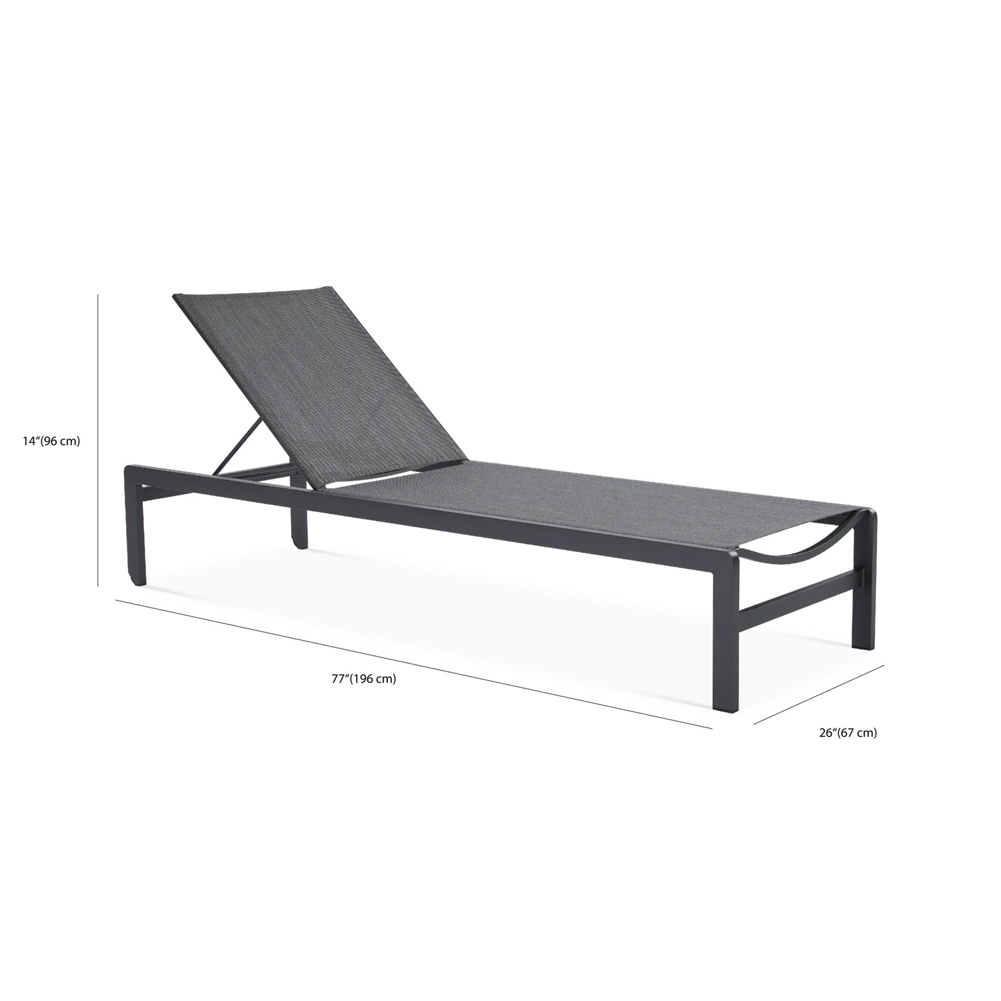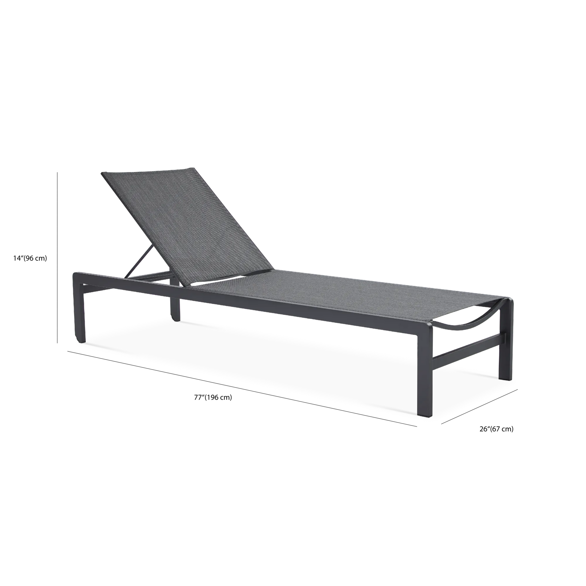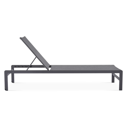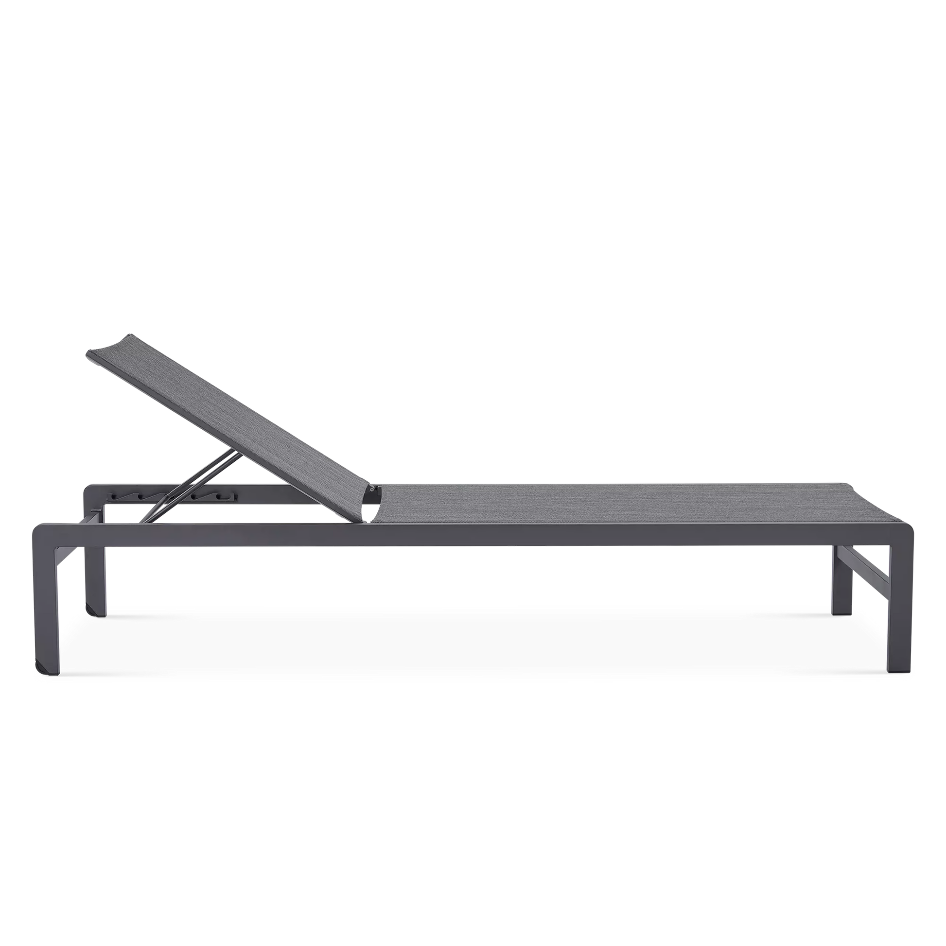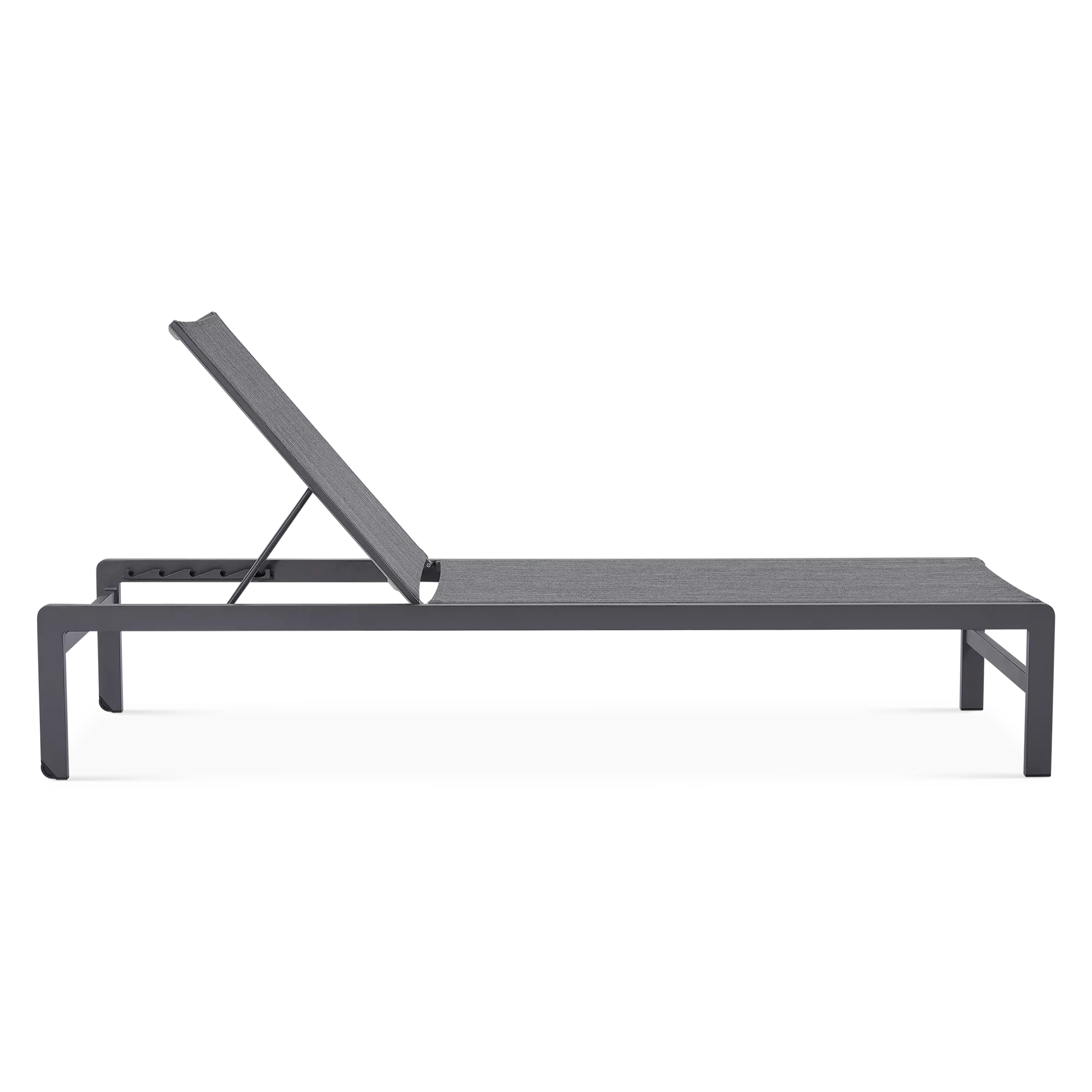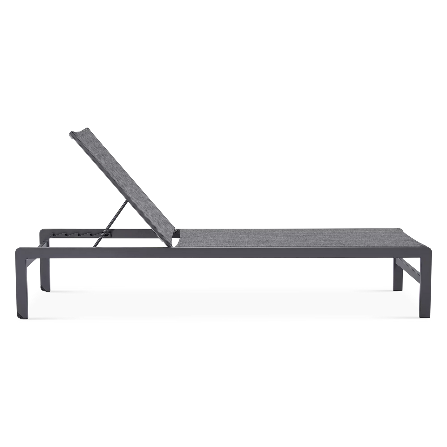 Ses plus? Le textilène, un tissu souple et sèche-vite. Un dossier à cinq positions, dont l’horizontale, pour un confort maximal. Une structure légère en aluminium et deux roulettes, qui se font discrètes à l’arrière, pour faciliter les déplacements. Et un look, minimaliste et élégant.