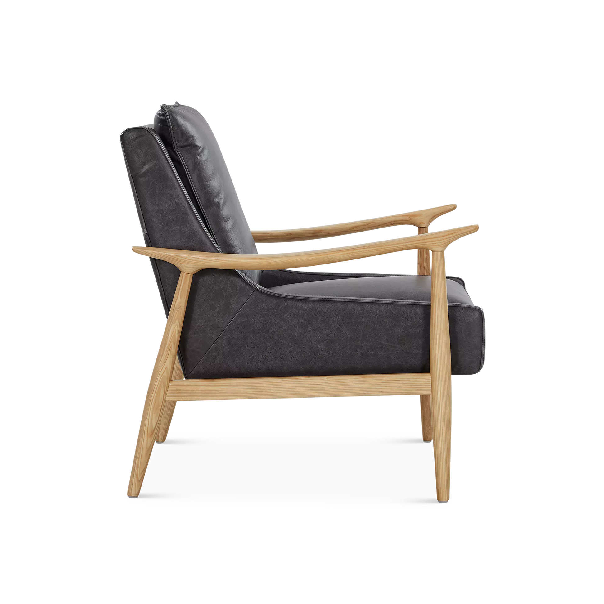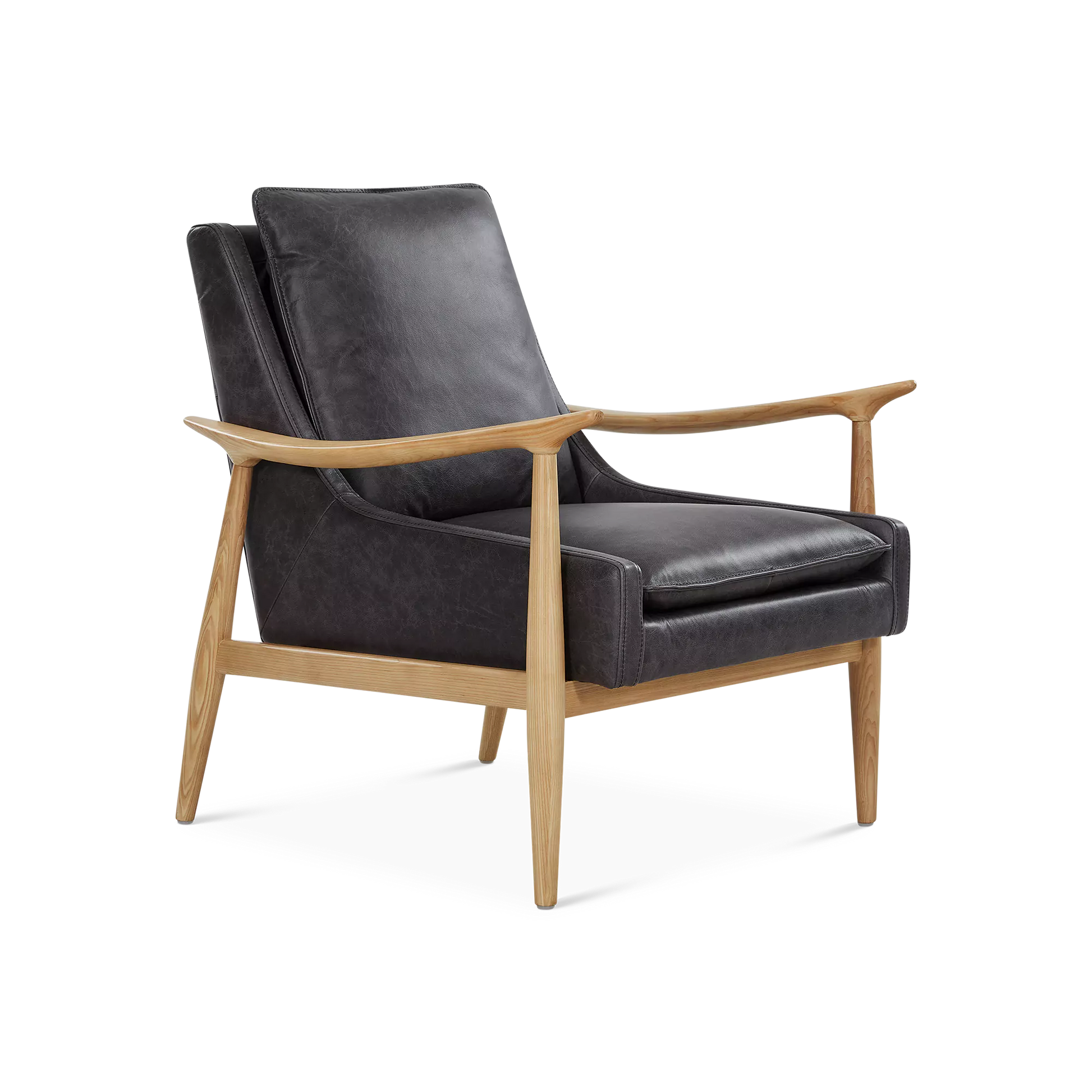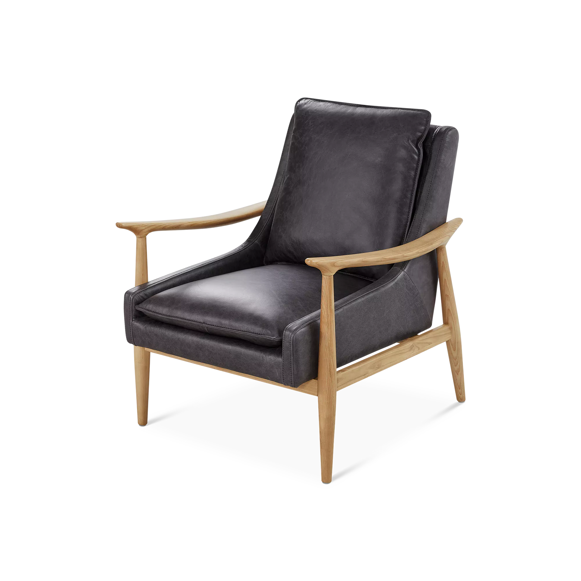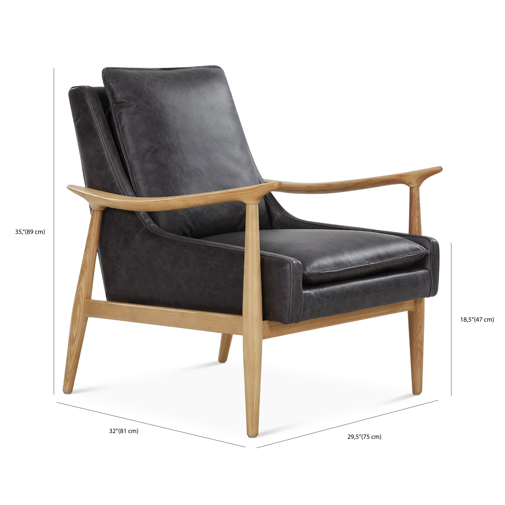 Le fauteuil Svan allie un siège en cuir doublé de coussins rembourrés à une structure en bois finement travaillée. Gracile, texturé et lumineux, il mélange les matériaux avec brio afin de créer une allure moderne et scandinave.