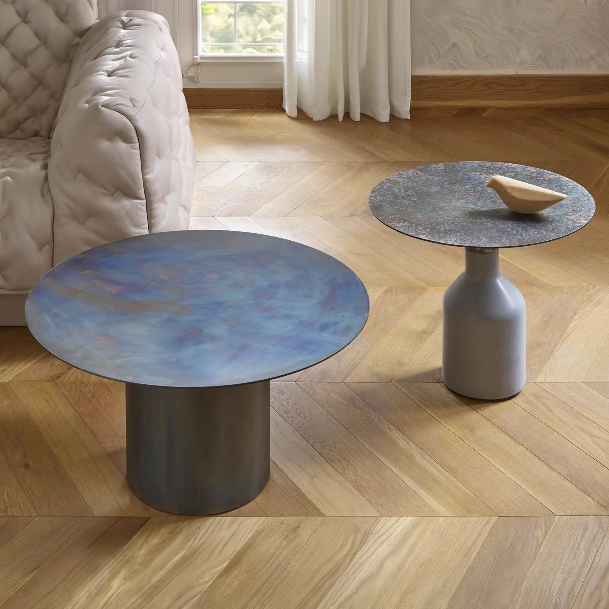 La table basse Oxydation se distingue par son plateau rond en métal oxydé. Résolument brute, son procédé de fabrication artisanal rend chaque pièce unique. Cette conception signée Ligne Roset est un chef d’œuvre contemporain.