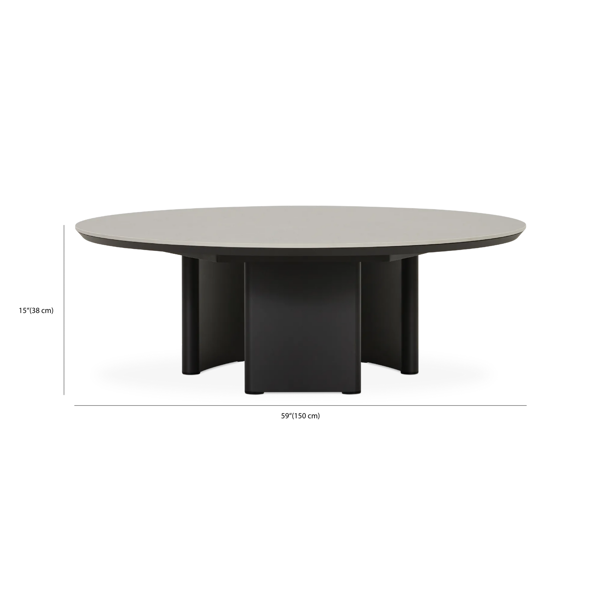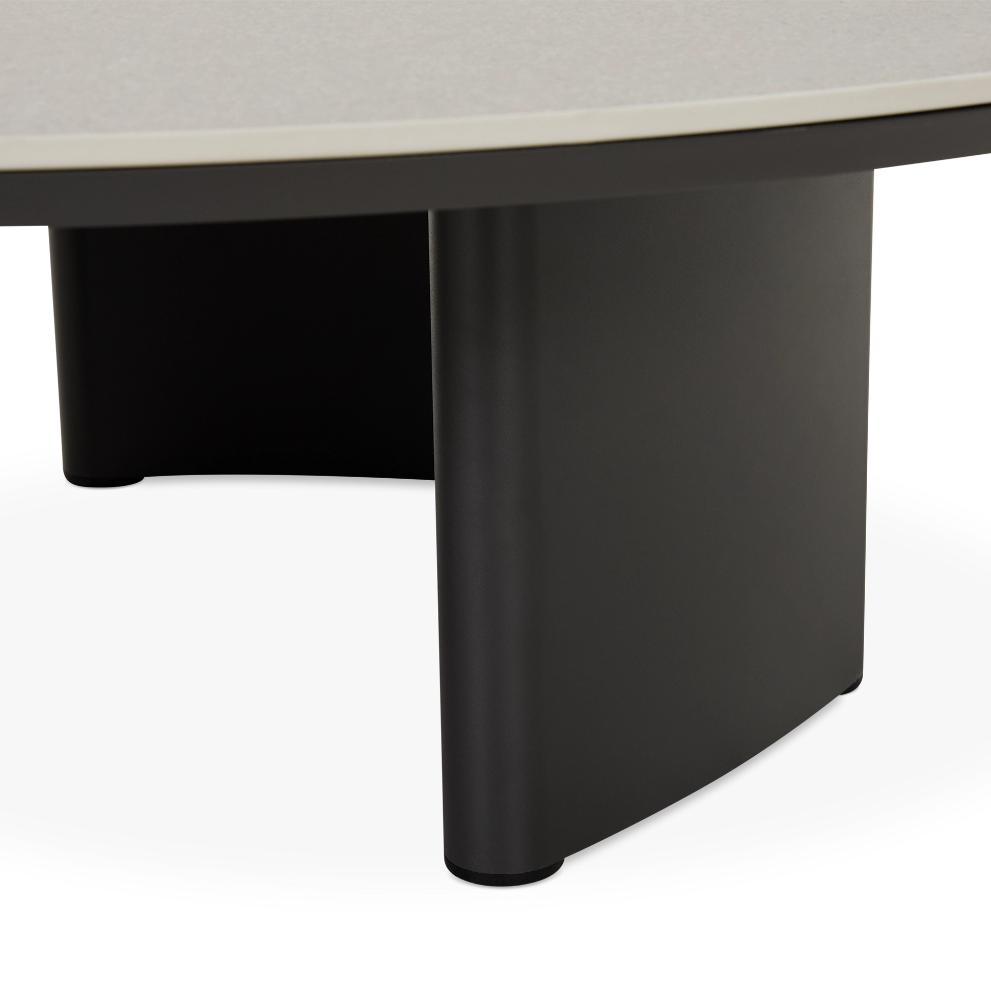 L’équilibre entre légèreté visuelle et force du design. Avec sa base architecturale en aluminium et son plateau rond en céramique, la table basse Nirvana apporte une signature graphique à l’espace. Idéale pour structurer un salon extérieur contemporain, tout en subtilité et sophistication.