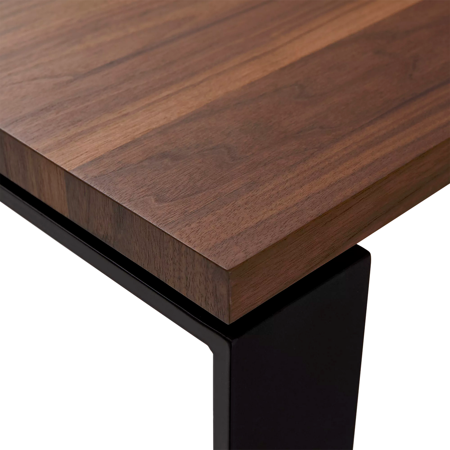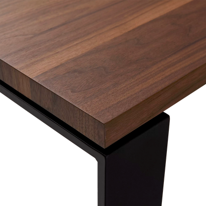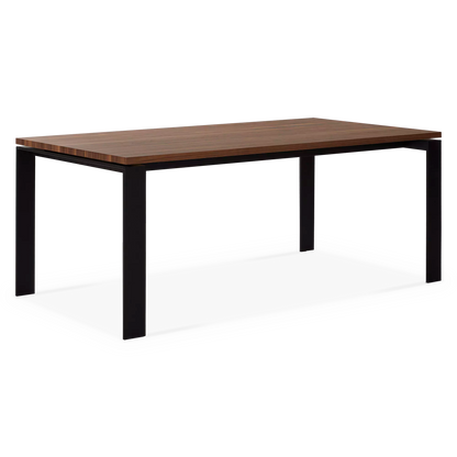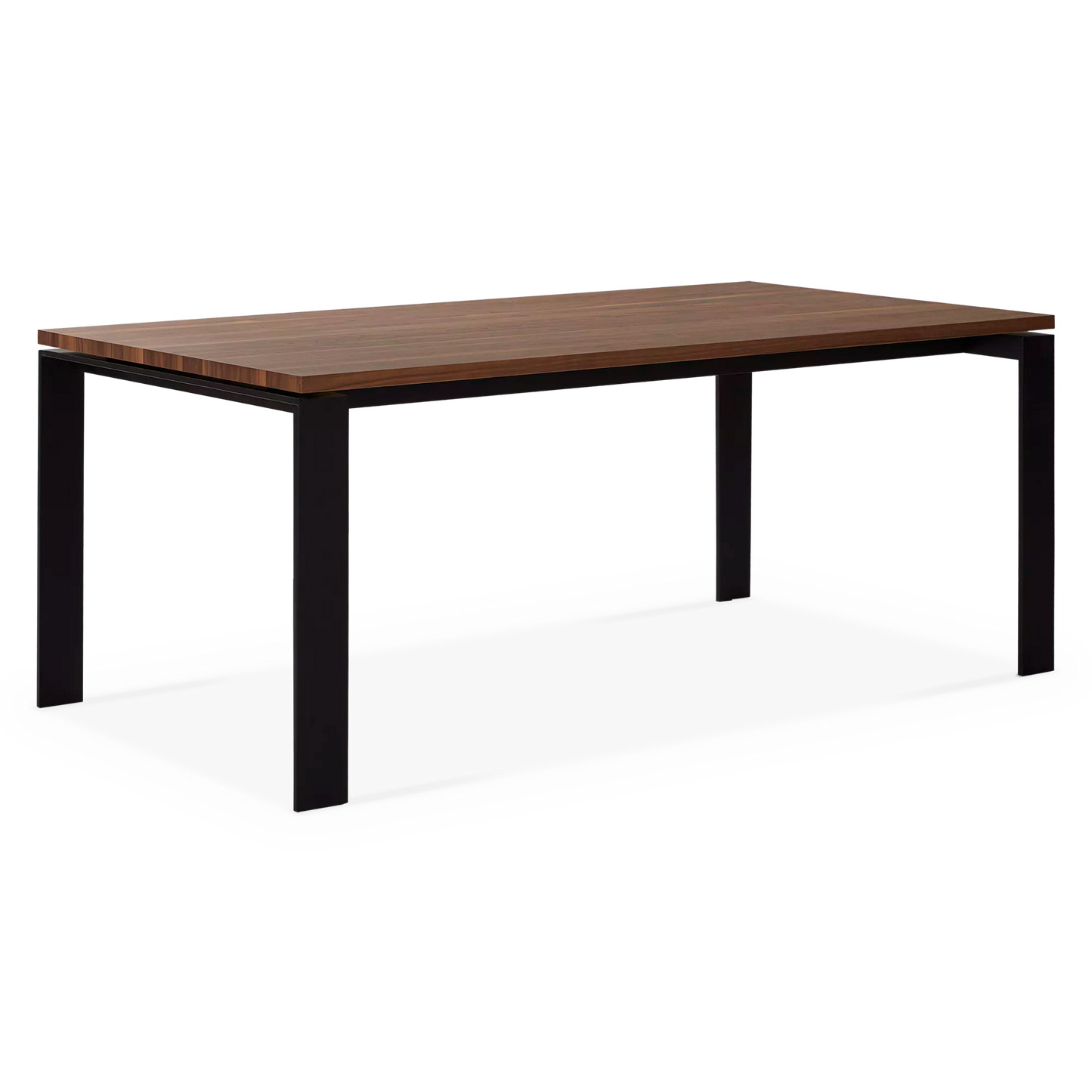 De conception canadienne, la table Dhabi se caractérise par son plateau en noyer ou chêne assis sur un imposant piètement en métal noir. Versatile, elle peut aussi bien intégrer un décor industriel que contemporain.