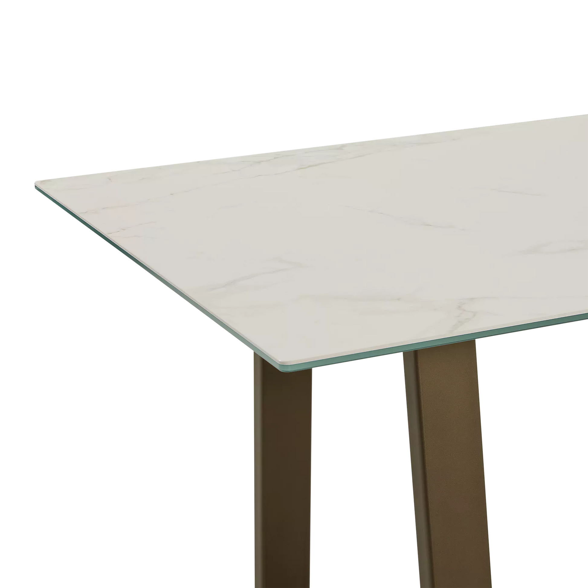 La table de salle à manger Spinoza est pourvue d’un plateau à effet métal brut, dont les lignes modernes ne passent pas inaperçues.