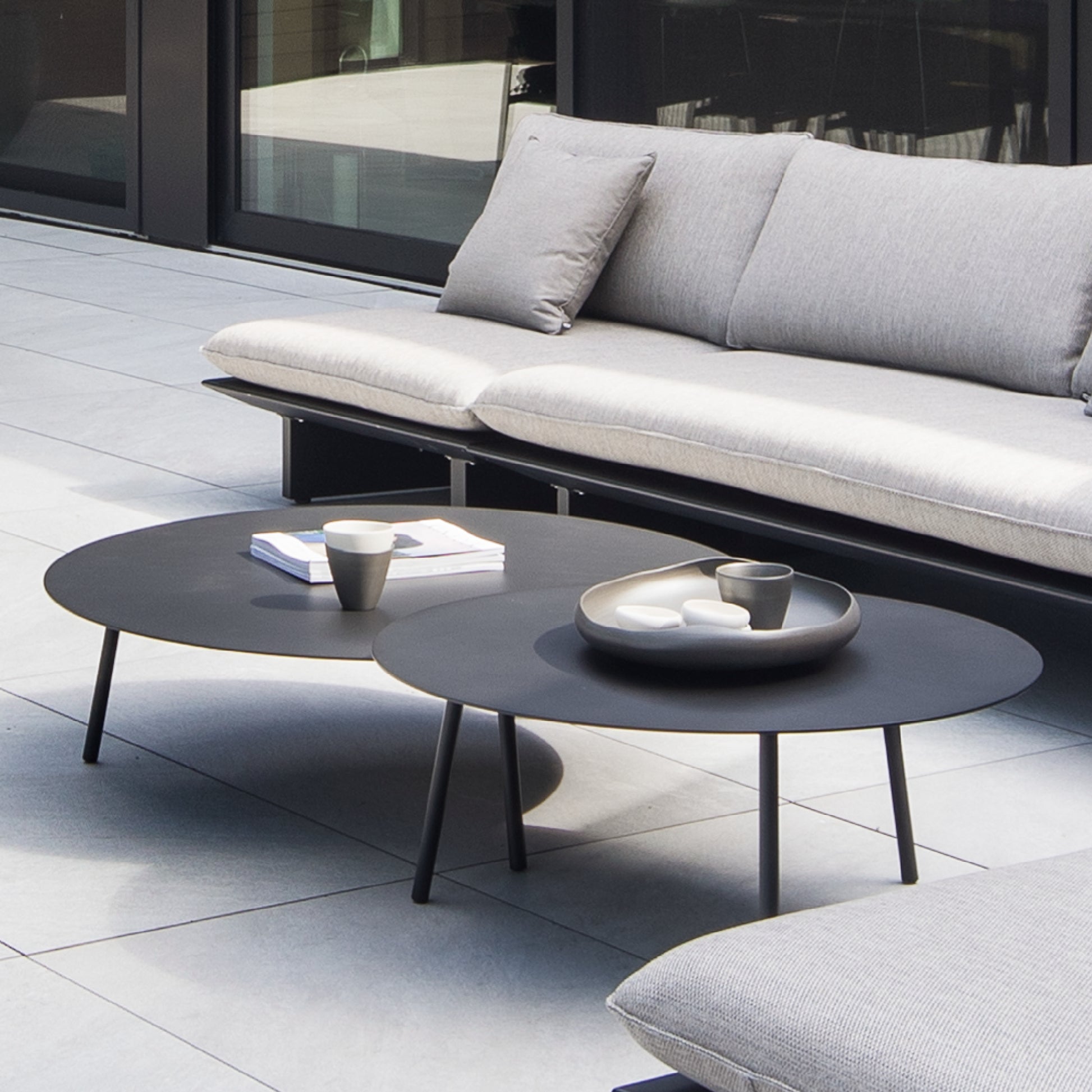 Entièrement composées d’aluminium léger et très stables grâce à leurs trois pieds, ces tables mi-gigognes se déclinent en deux diamètres et deux hauteurs. Superposez-les pour créer un effet graphique tout en gagnant de l’espace et déplacez-les au gré de vos besoins. Table basse ou table d’appoint, en solo ou en duo, c’est vous qui choisissez.