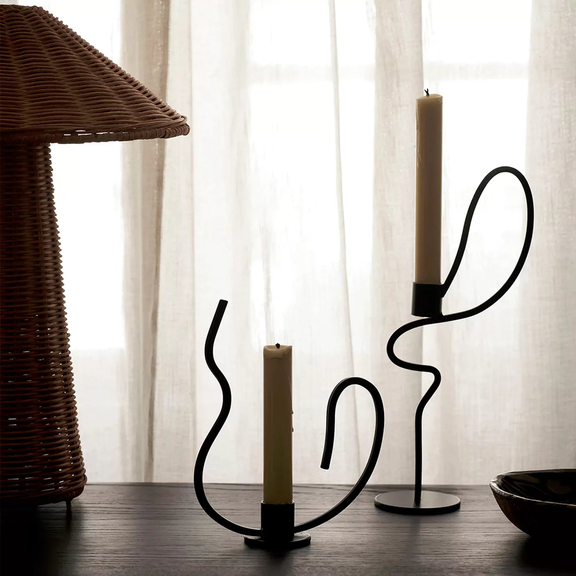 Le chandelier Valse en fer thermolaqué séduit par sa silhouette fluide et ondulée, comme figée dans un mouvement de danse. Inspiré de la valse, il allie grâce et élégance dans une forme sculpturale raffinée. Sa tige incurvée attire le regard et en fait un objet aussi décoratif que fonctionnel.