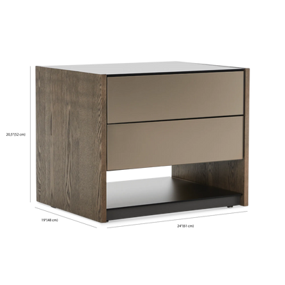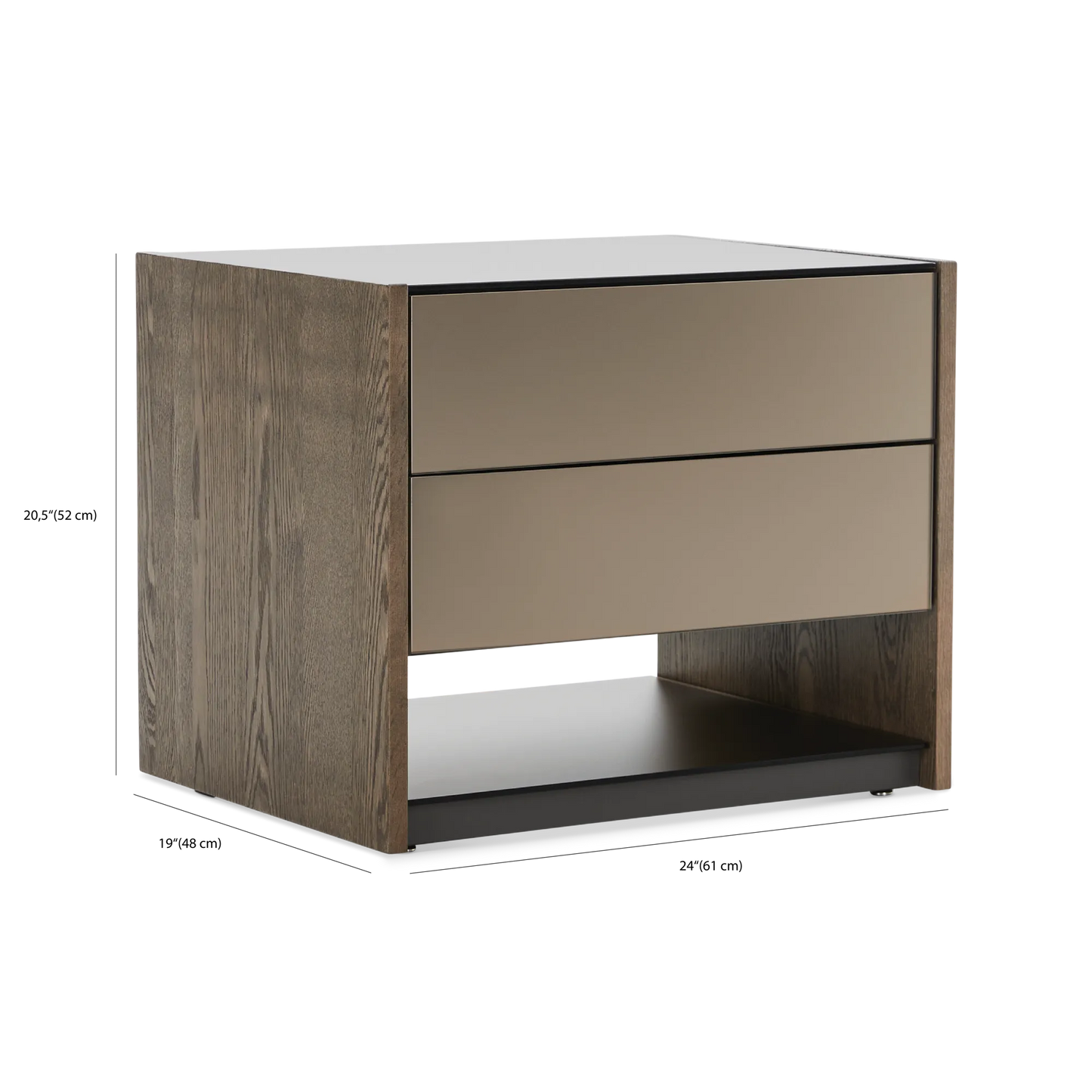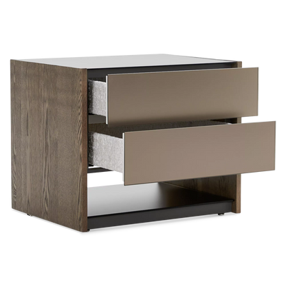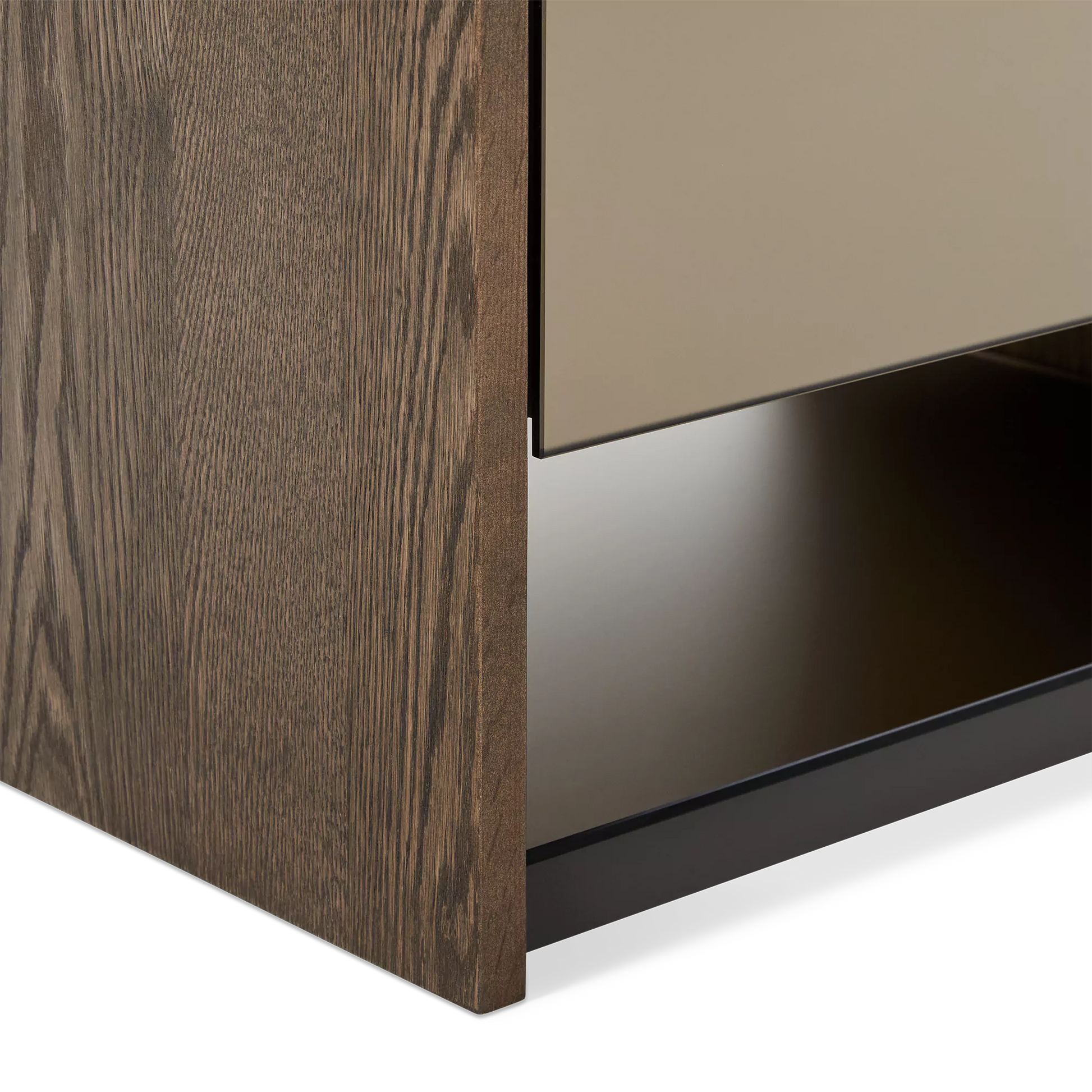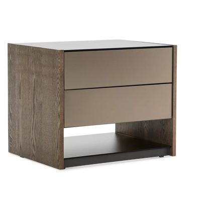 De conception canadienne, la table de chevet Vision allie un contour rustique en chêne brossé à des tiroirs dont les façades sont en verre trempé pour créer un mélange des matières à l’effet purement contemporain.