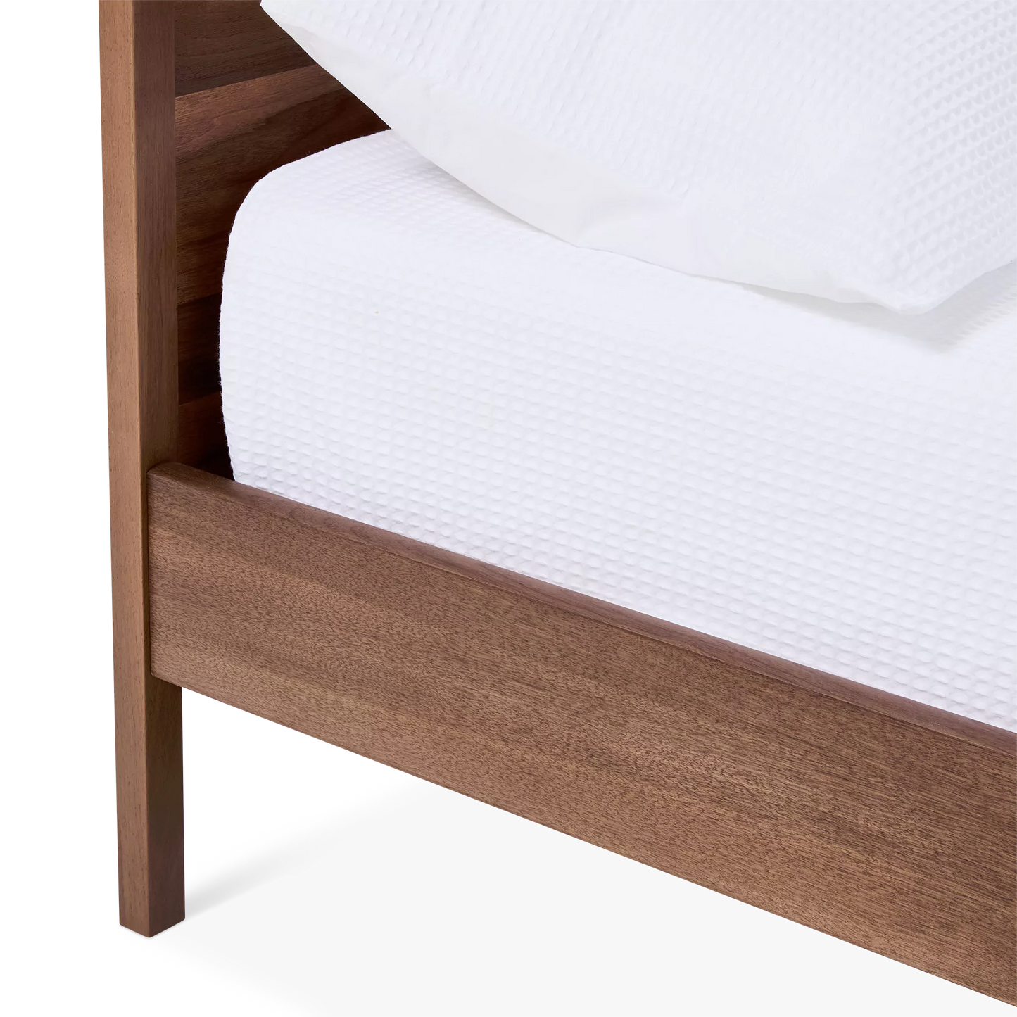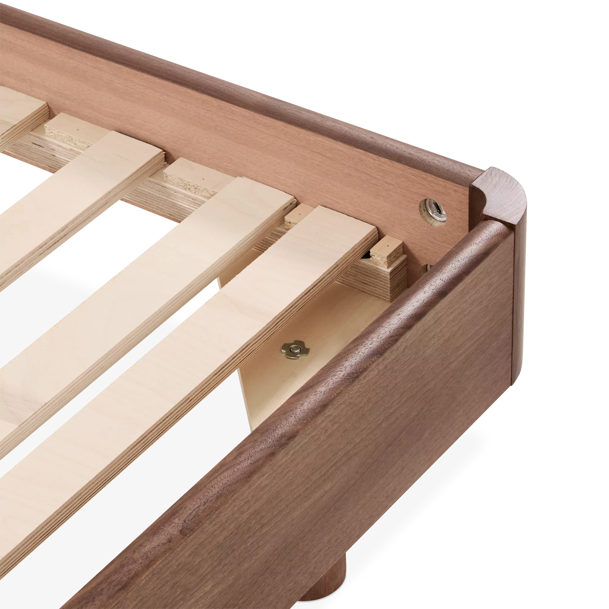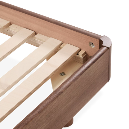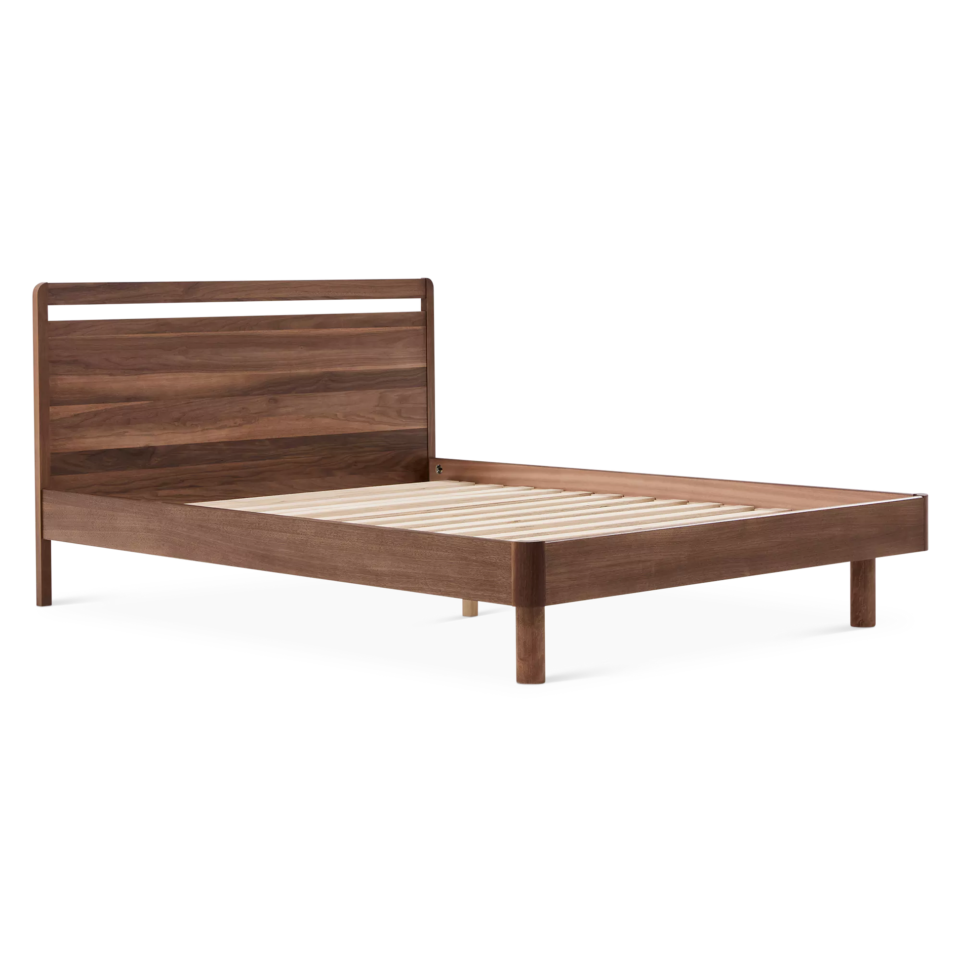 Fabriqué en noyer fumé, le lit Vista met en valeur un équilibre entre simplicité et design raffiné, caractéristique de Mobican. Son cadre aux lignes épurées et sa tête de lit aux angles subtilement arrondis soulignent la beauté naturelle du bois, dont les riches variations de tons réchauffent la pièce. De discrètes courbes adoucissent la silhouette, conférant à ce meuble une élégance moderne qui s'harmonise aussi bien avec les espaces minimalistes que contemporains.