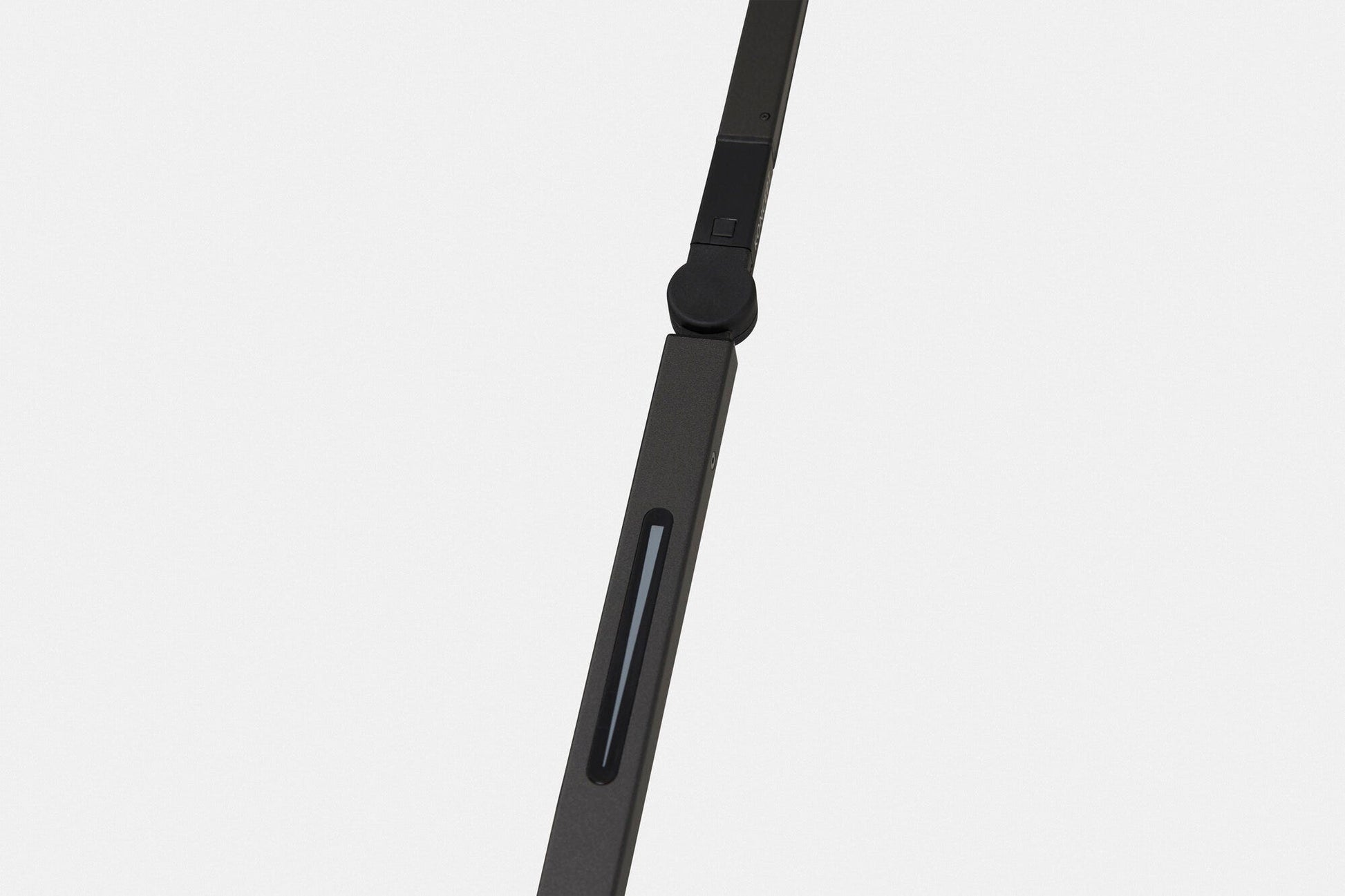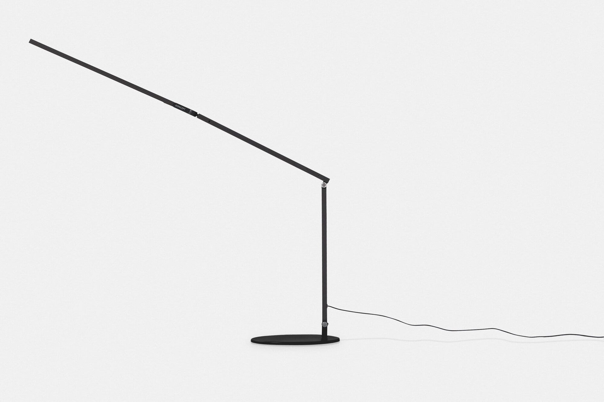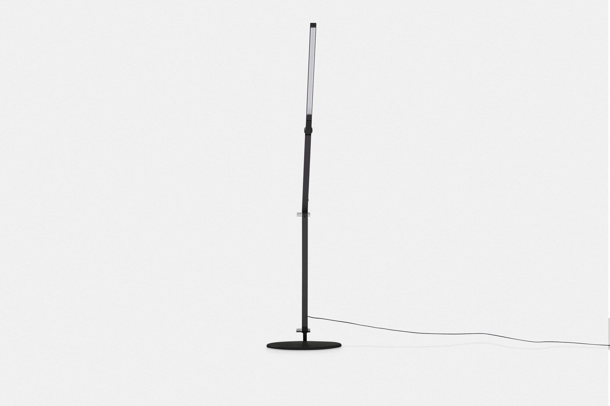 Z-Bar est à la fois sculpture et lampe. Allumée, sa structure ajustable à deux pivots dirige ses faisceaux dans la position désirée. Son intensité s’ajuste à l’aide d’une bande tactile.
