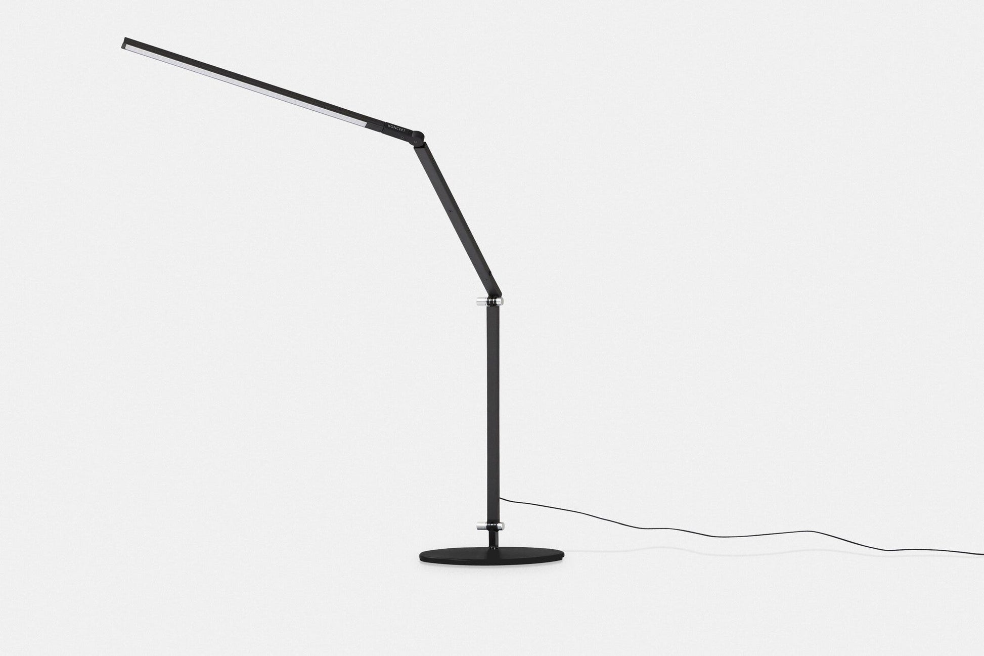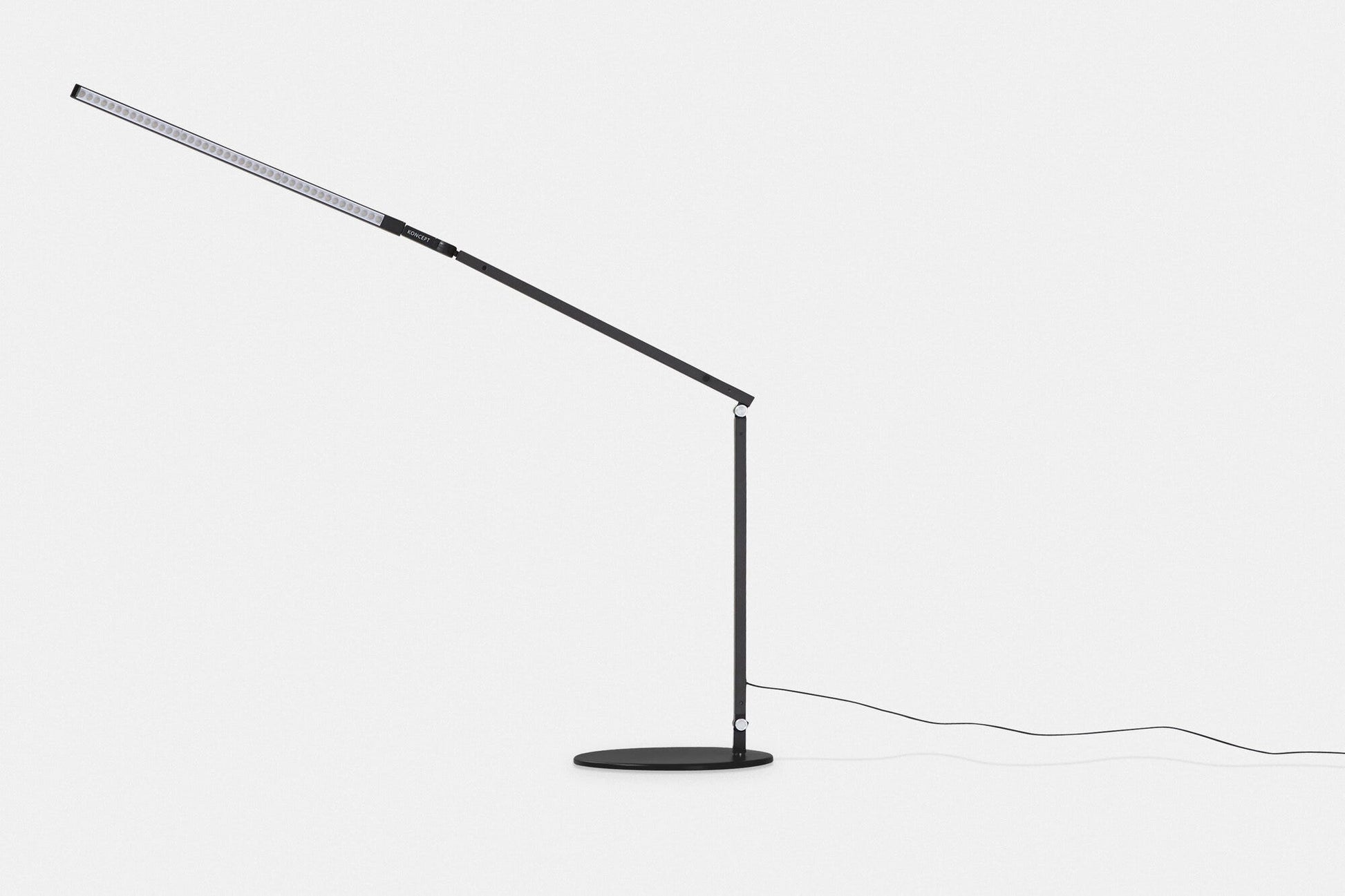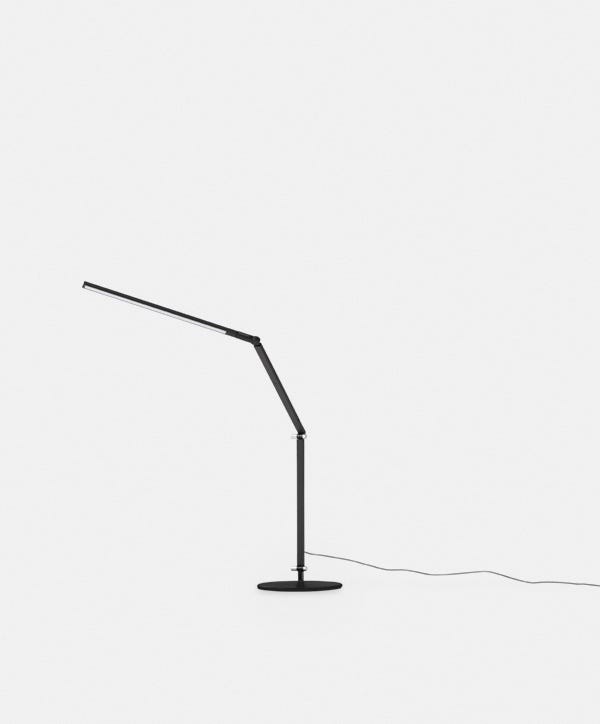 Z-Bar est à la fois sculpture et lampe. Allumée, sa structure ajustable à deux pivots dirige ses faisceaux dans la position désirée. Son intensité s’ajuste à l’aide d’une bande tactile.