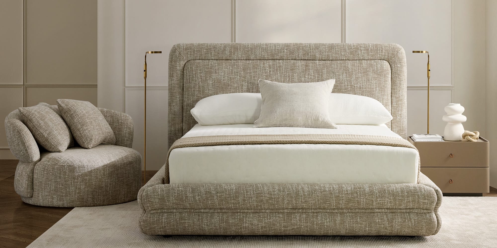 Save up to 25% on bedroom pieces defined by comfort and quiet elegance.