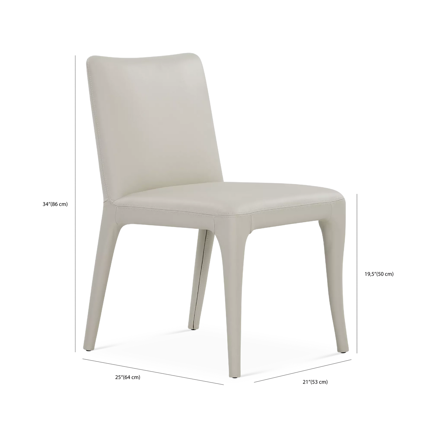 The Acari dining chair is distinguished by its understated elegance and supple comfort. Featuring clean lines and a tapered silhouette, it’s upholstered entirely covered in leather and embellished with meticulous stitching, a symbol of artisanal savoir faire. Its subtly angled legs and slightly curved backrest provide optimal support, making this chair a smart and tasteful addition to any dining space.