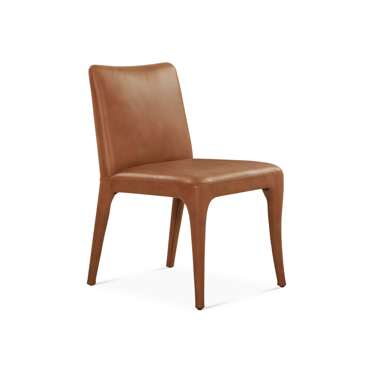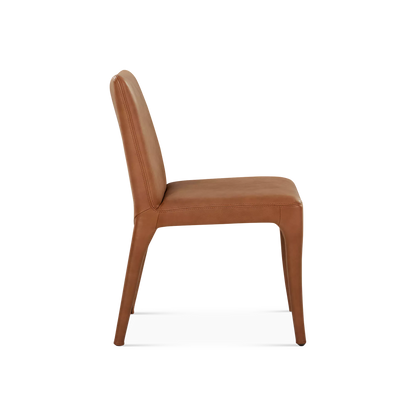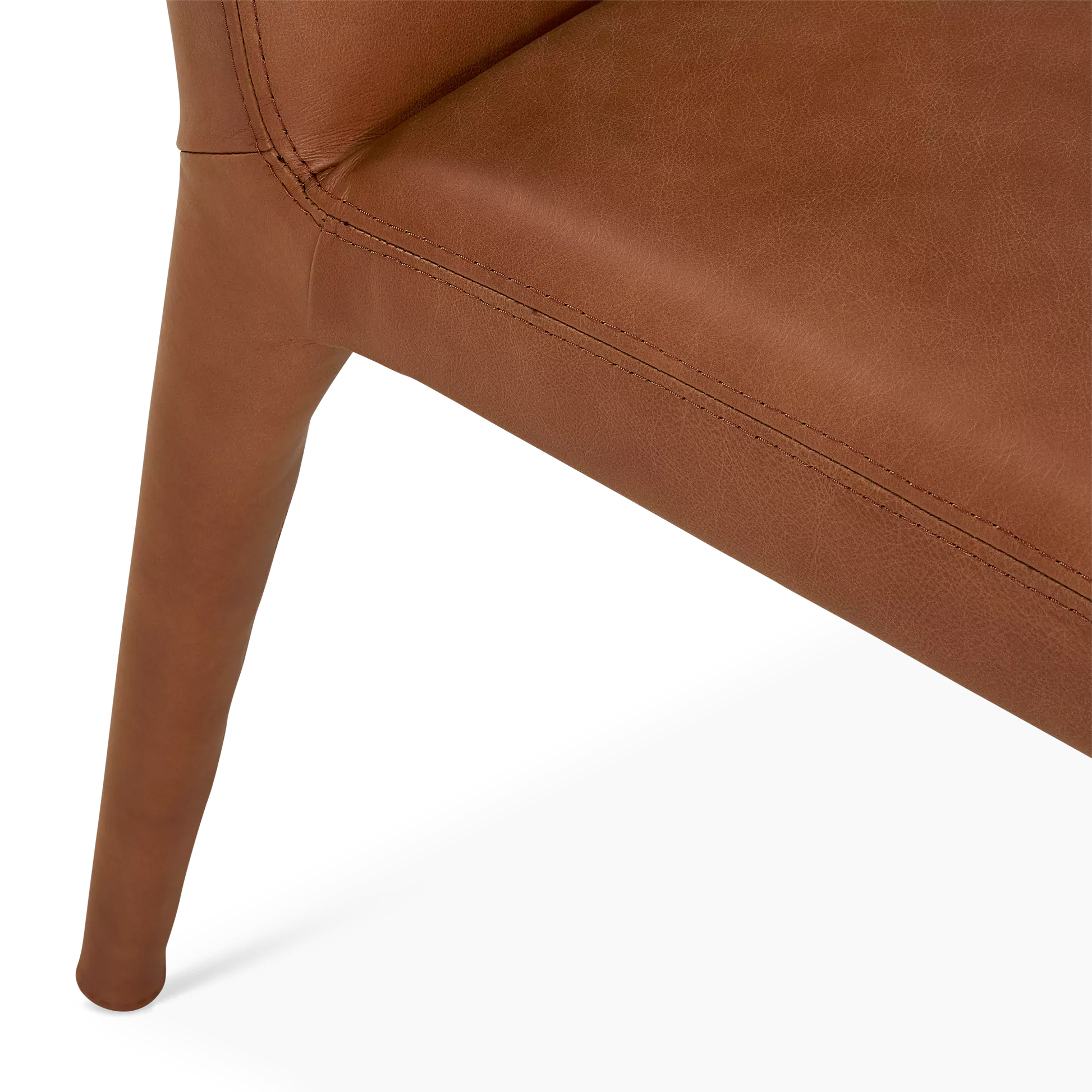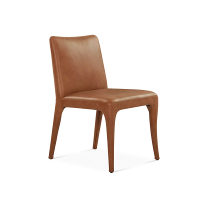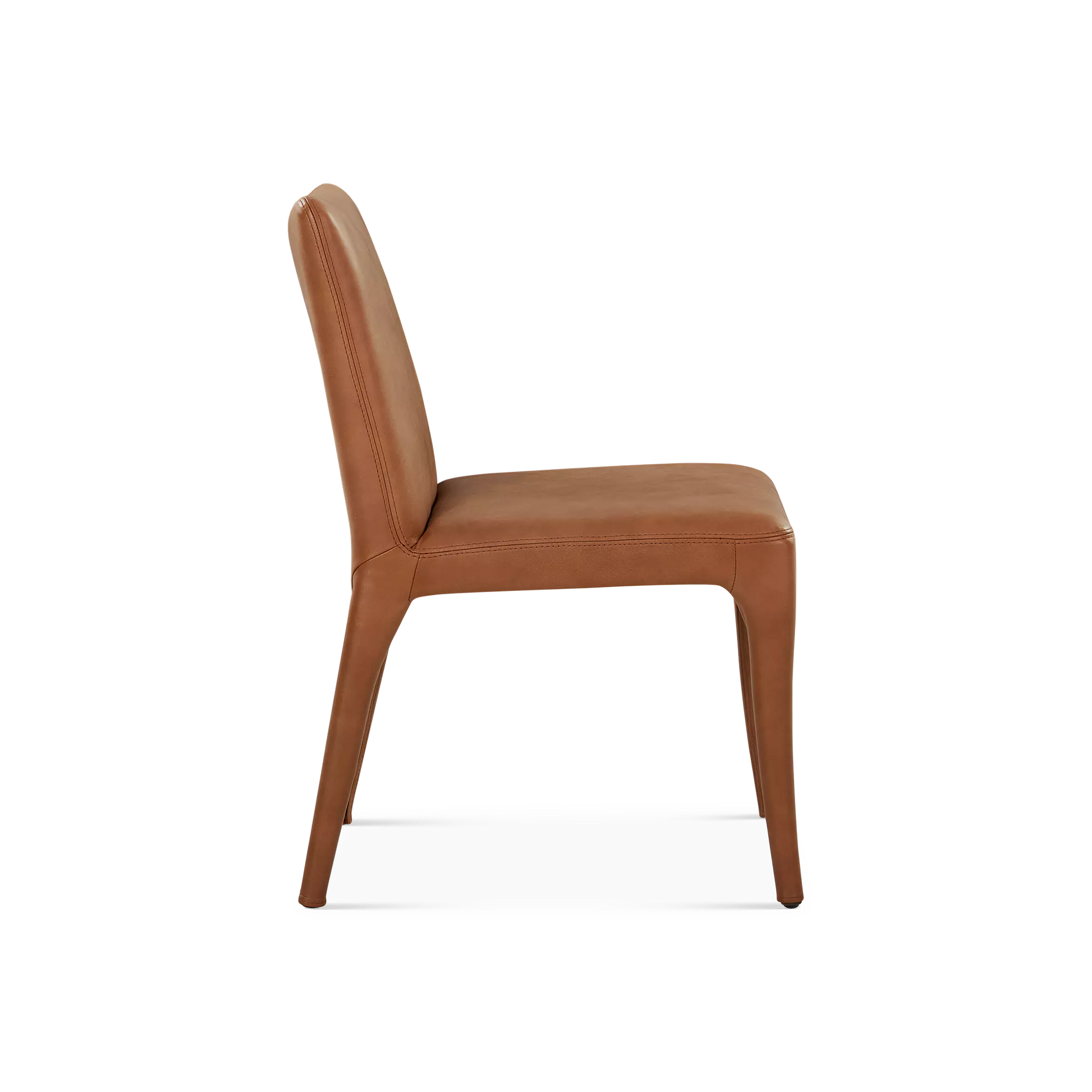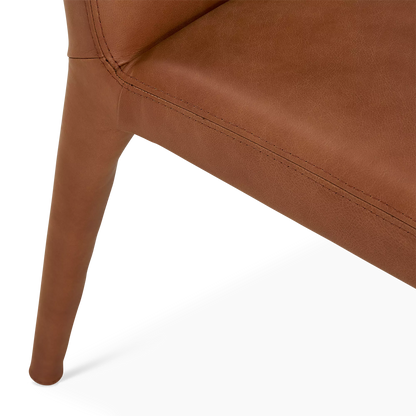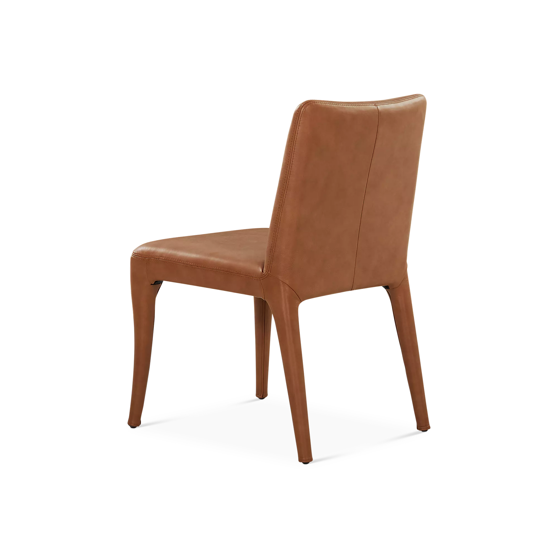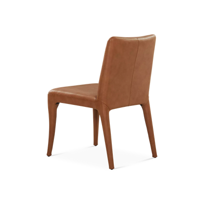 The Acari dining chair is distinguished by its understated elegance and supple comfort. Featuring clean lines and a tapered silhouette, it’s upholstered entirely covered in leather and embellished with meticulous stitching, a symbol of artisanal savoir faire. Its subtly angled legs and slightly curved backrest provide optimal support, making this chair a smart and tasteful addition to any dining space.