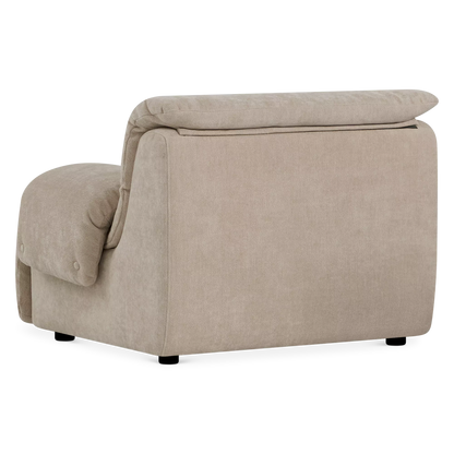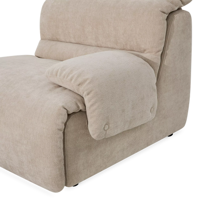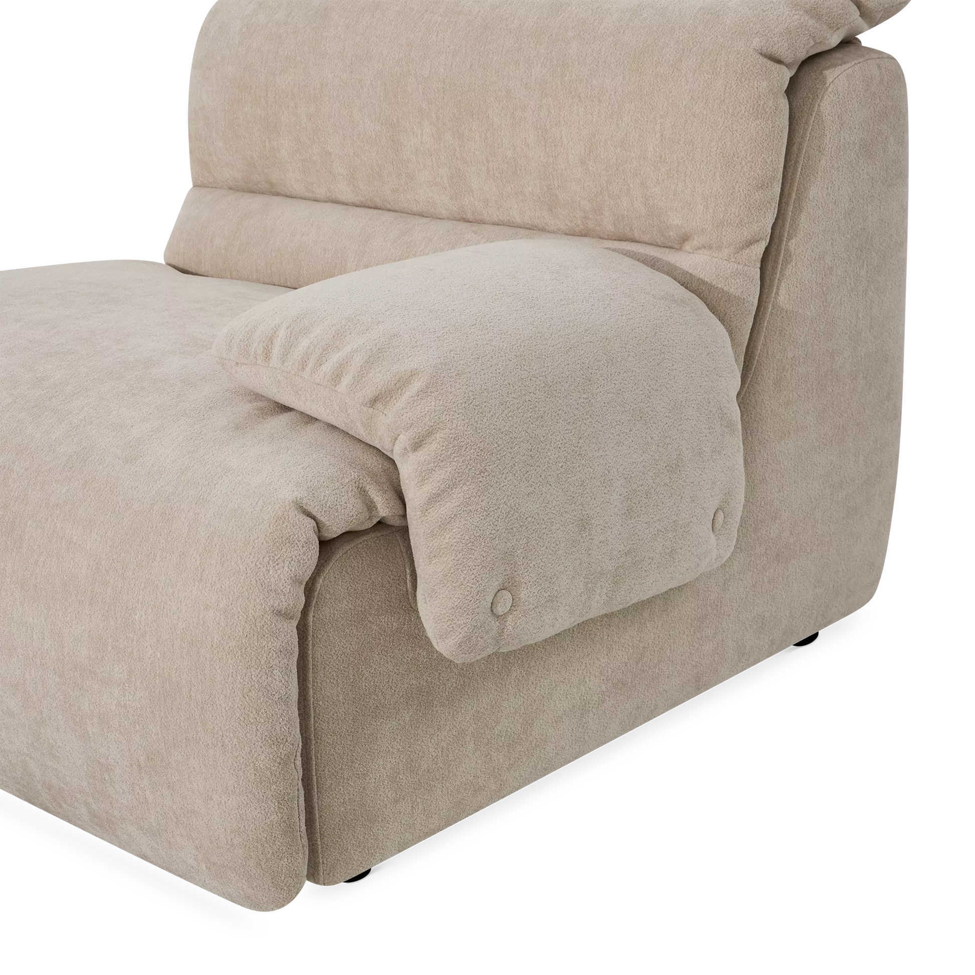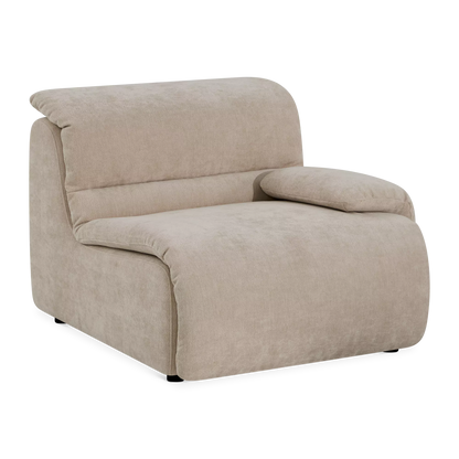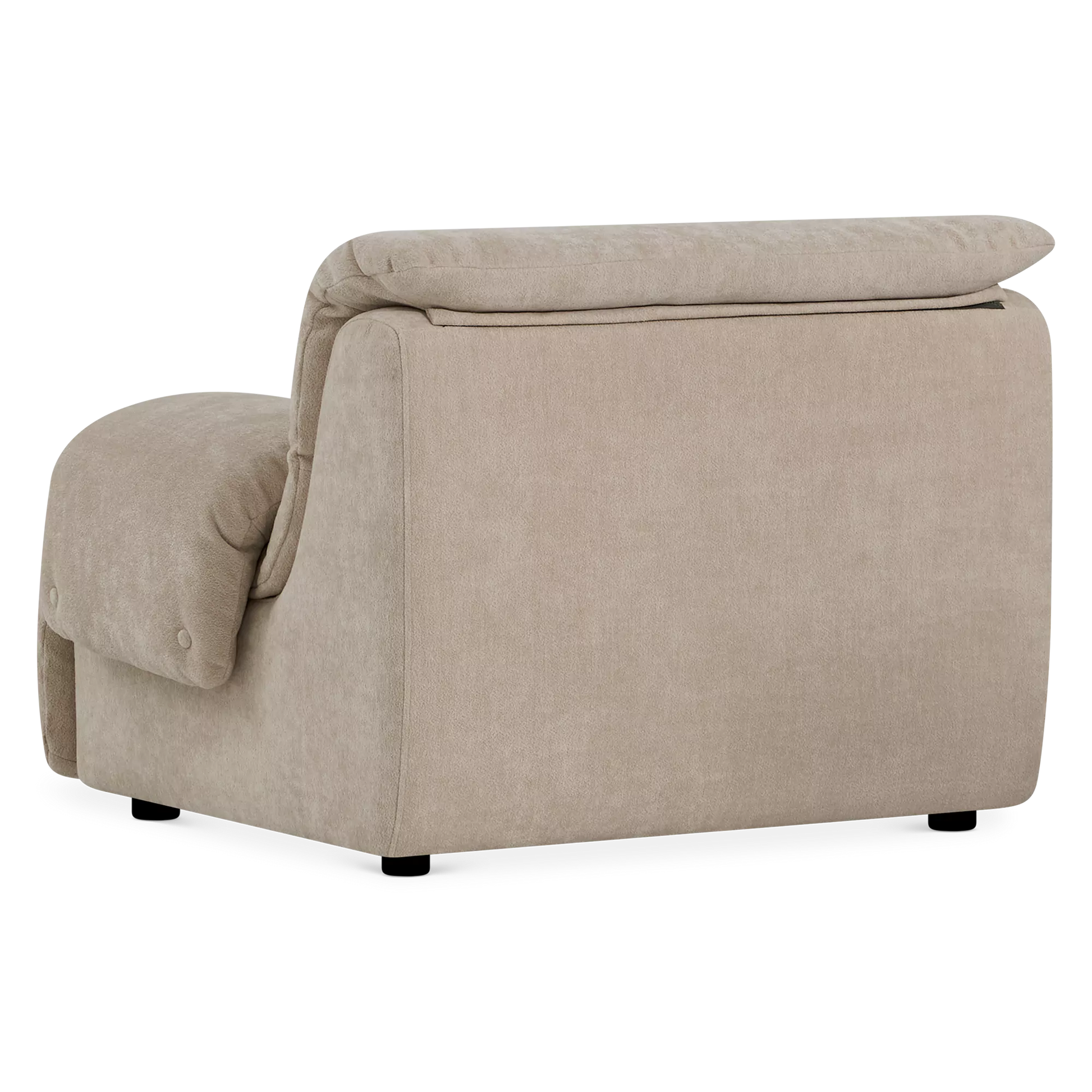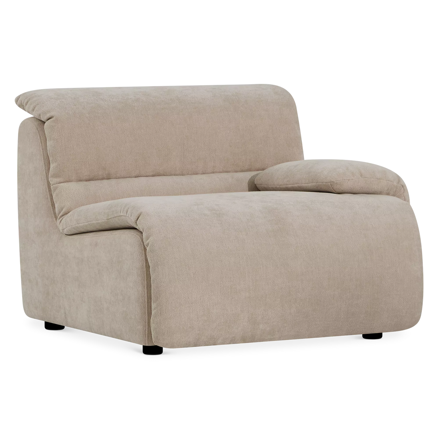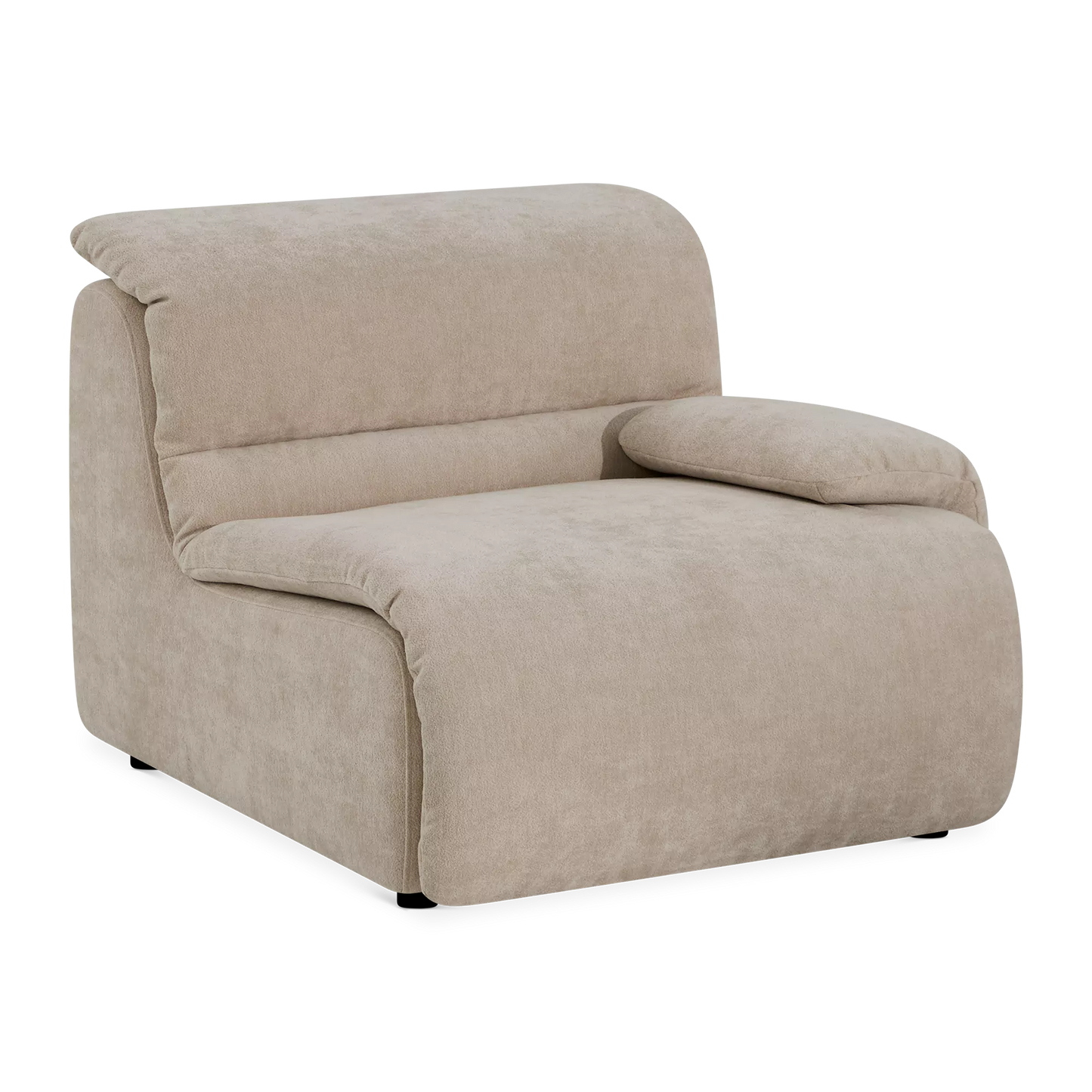 The Agadir modular armchair charms with its curved silhouette and folded armrest. Fully upholstered and finished with discreet legs, it offers both comfort and style. Combine multiple modules to create a personalized sofa arrangement with a neutral-toned fabric and modern design that will bring a warm and original touch to any space.