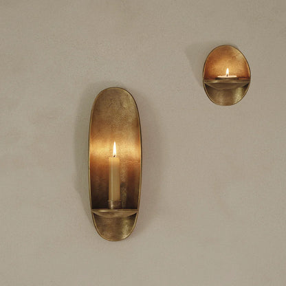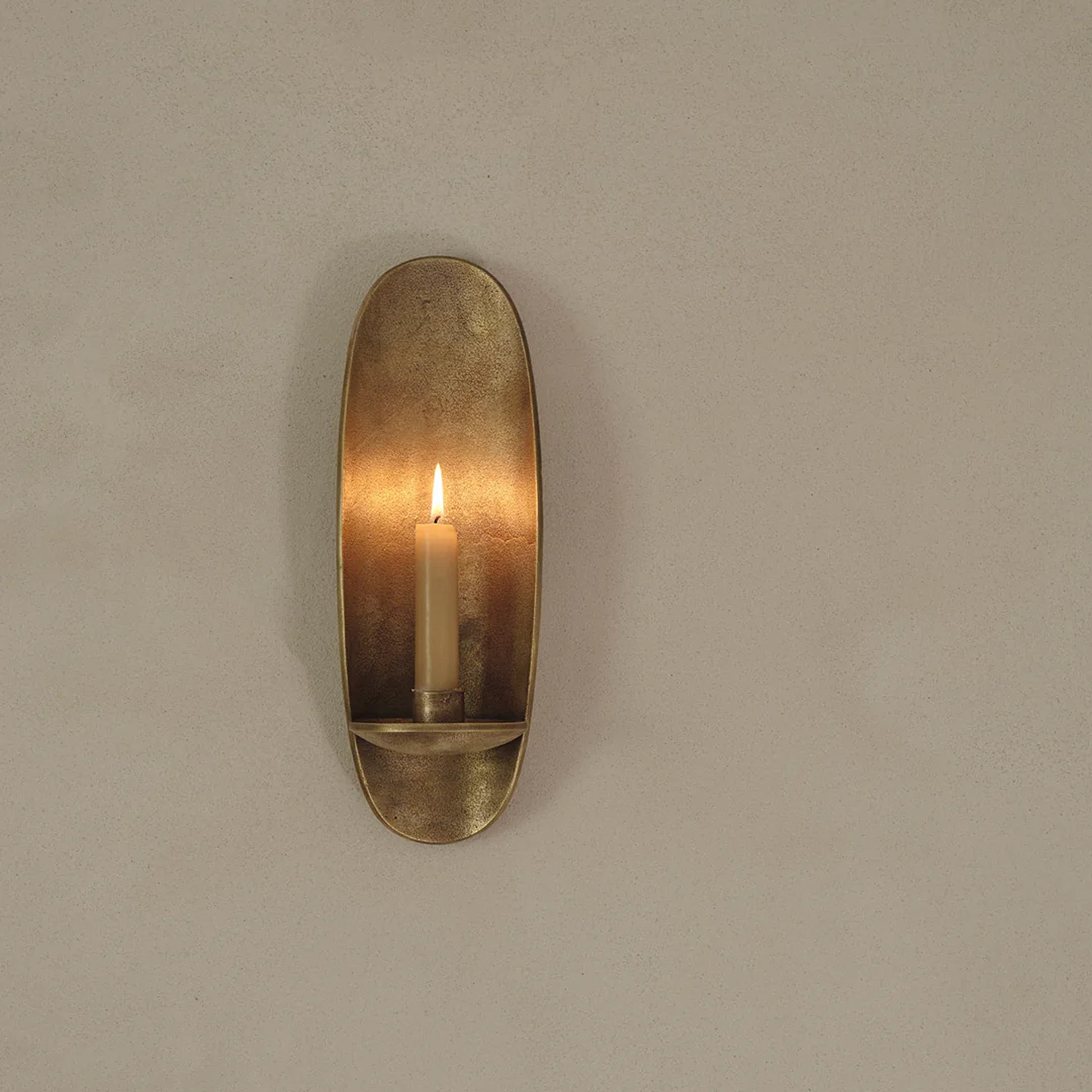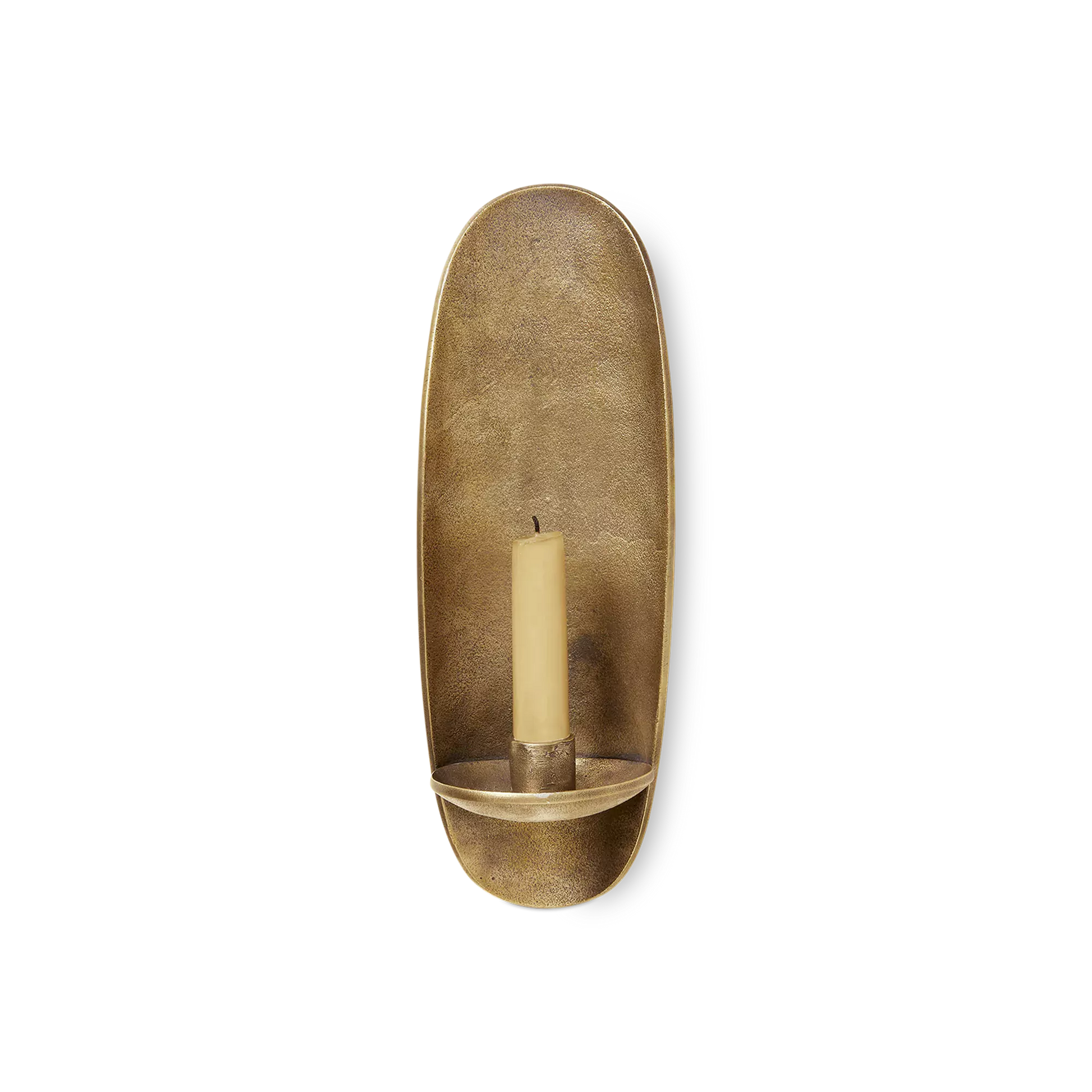 Derived from the Greek word meaning spiritual love and charity, the Agapé wall candleholder mounts on the wall to create a mysterious and captivating ambiance. Made entirely of brass, it features a rustic finish perfect for adding warmth and elegance to your interior.