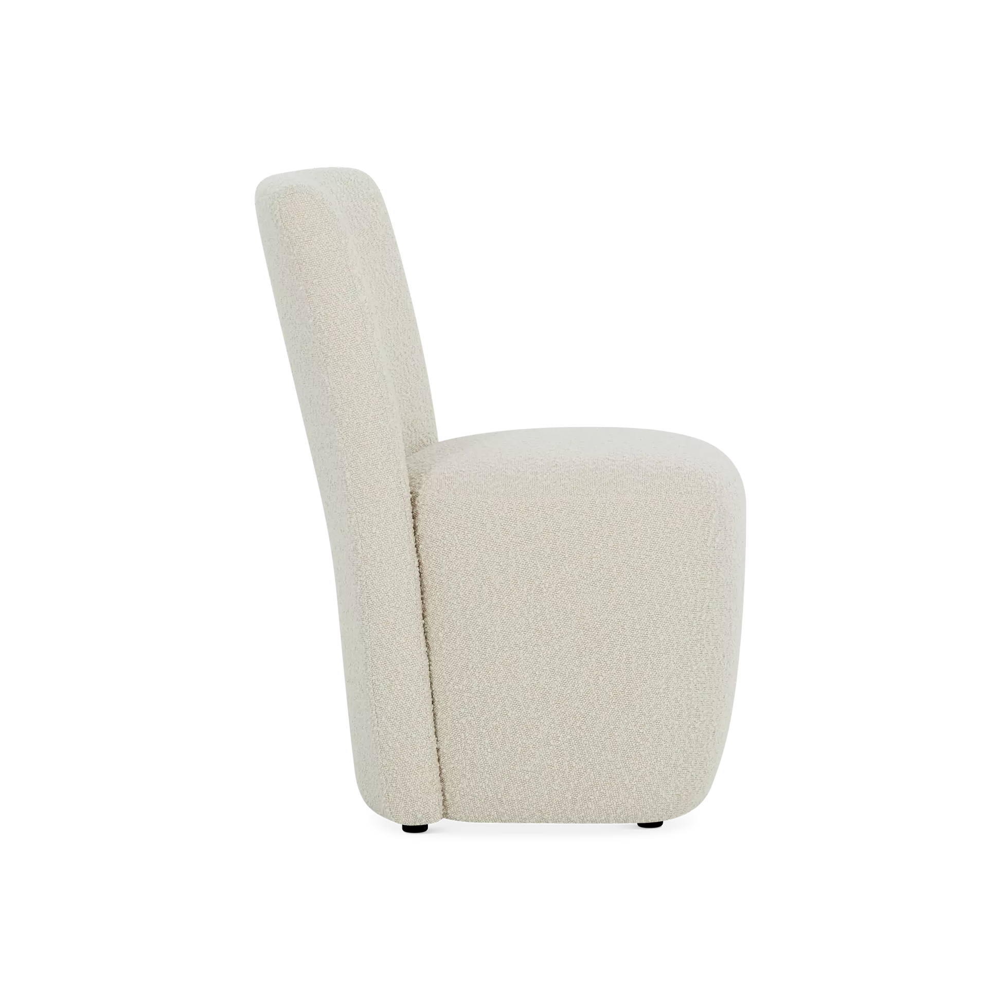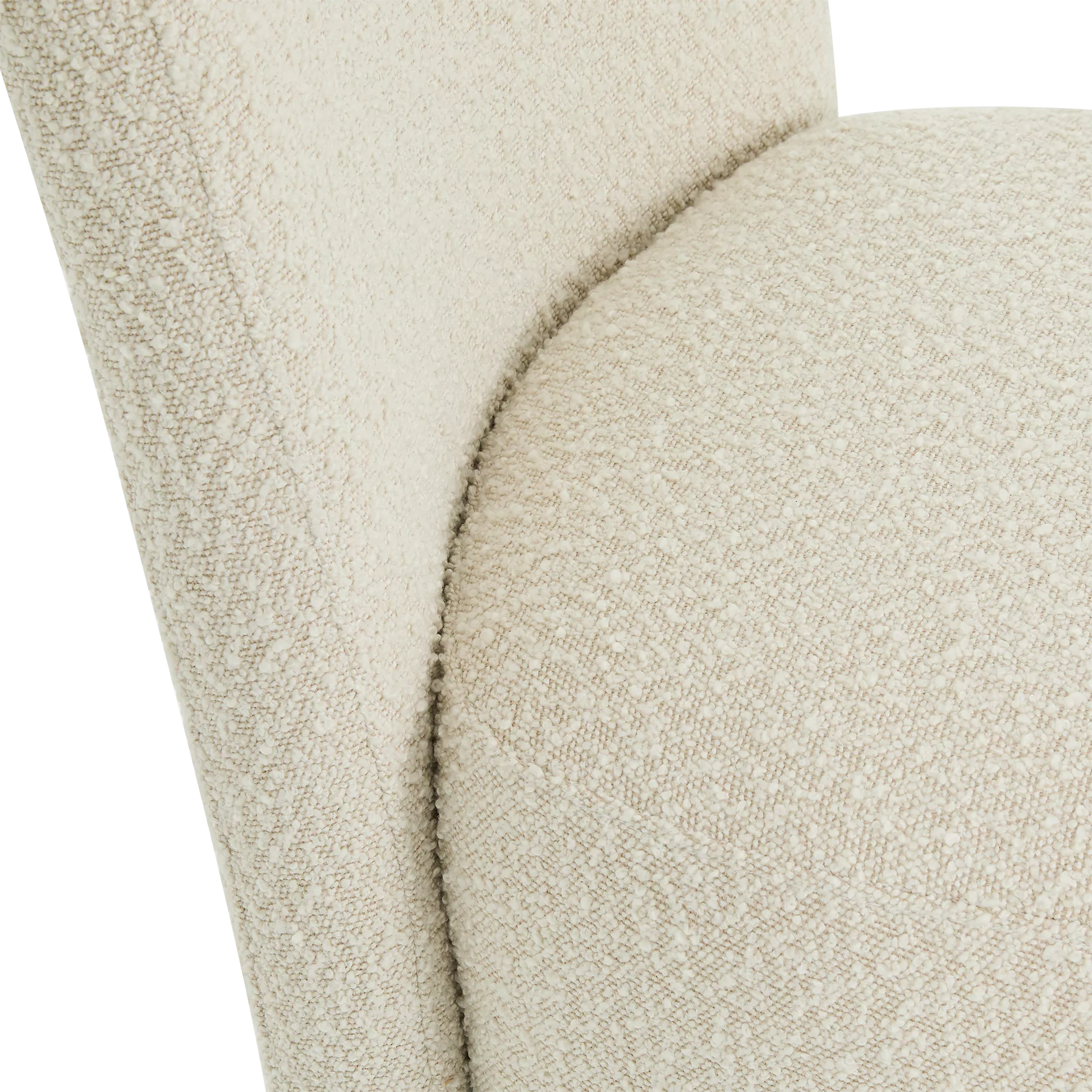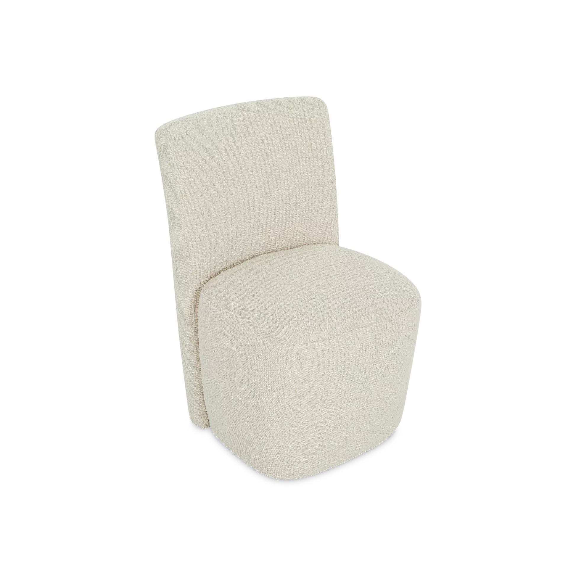 Add a soft touch to your table with the bouclé-fabric-upholstered Alba chair. Its sleek design seems to stretch in height, giving it an airy look, despite its plump seat that extends all the way to the ground. Its soft texture enhances its cozy look for a seat that’s as comfortable as it is stylish. Perfect for giving your dining room an original effect, it suits both modern and classic decors with its neutral tones and fluid silhouette.