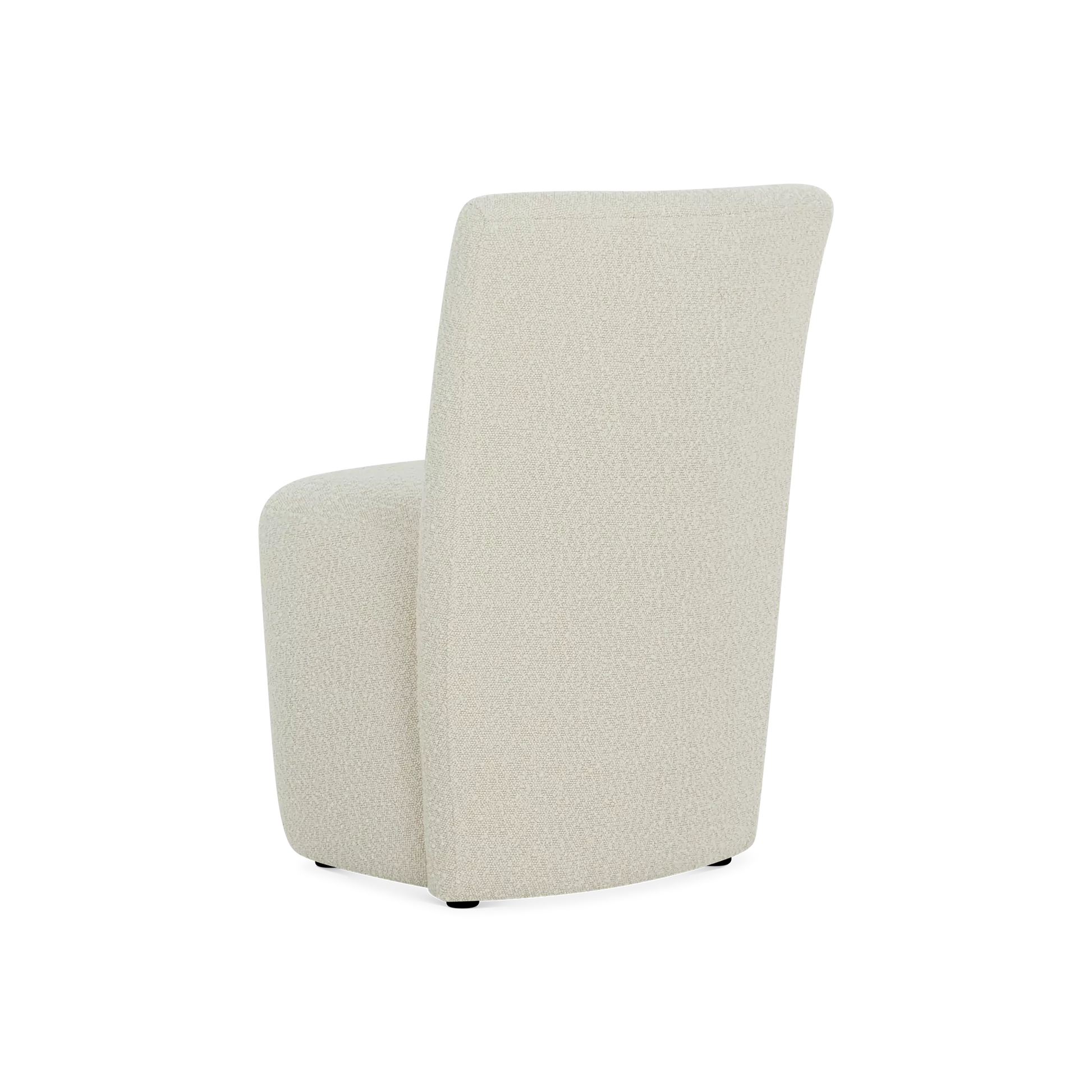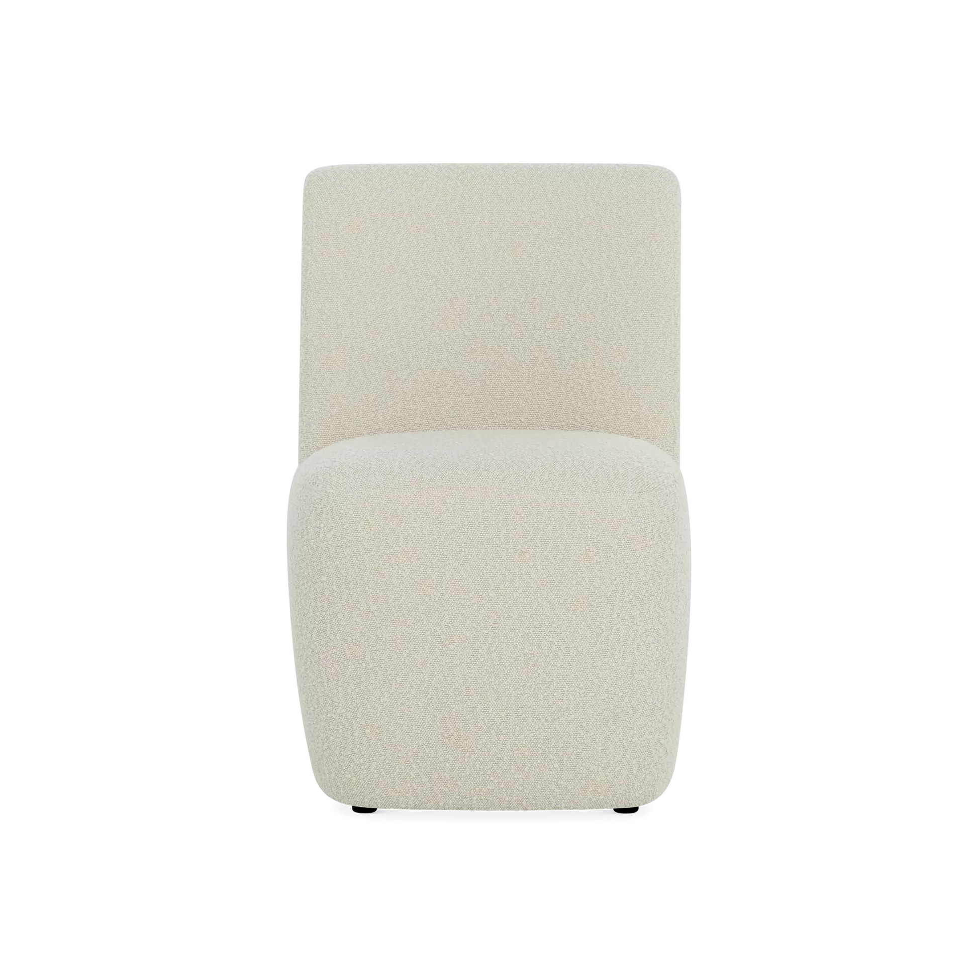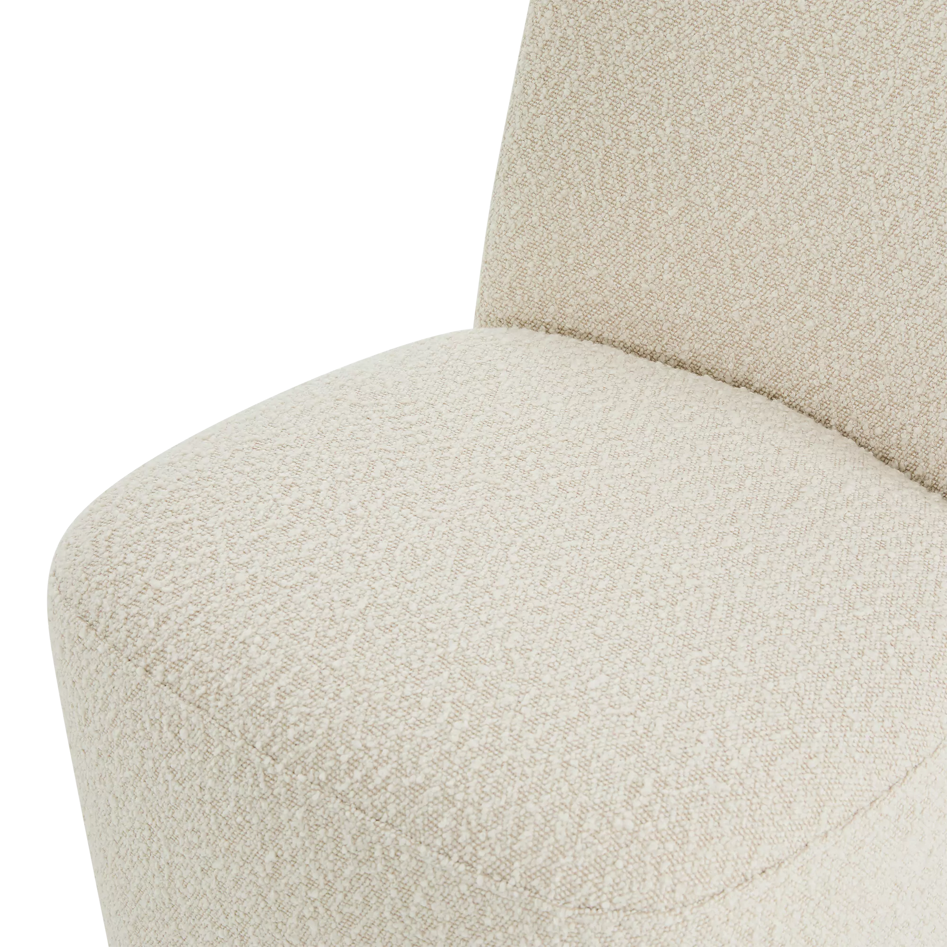 Add a soft touch to your table with the bouclé-fabric-upholstered Alba chair. Its sleek design seems to stretch in height, giving it an airy look, despite its plump seat that extends all the way to the ground. Its soft texture enhances its cozy look for a seat that’s as comfortable as it is stylish. Perfect for giving your dining room an original effect, it suits both modern and classic decors with its neutral tones and fluid silhouette.