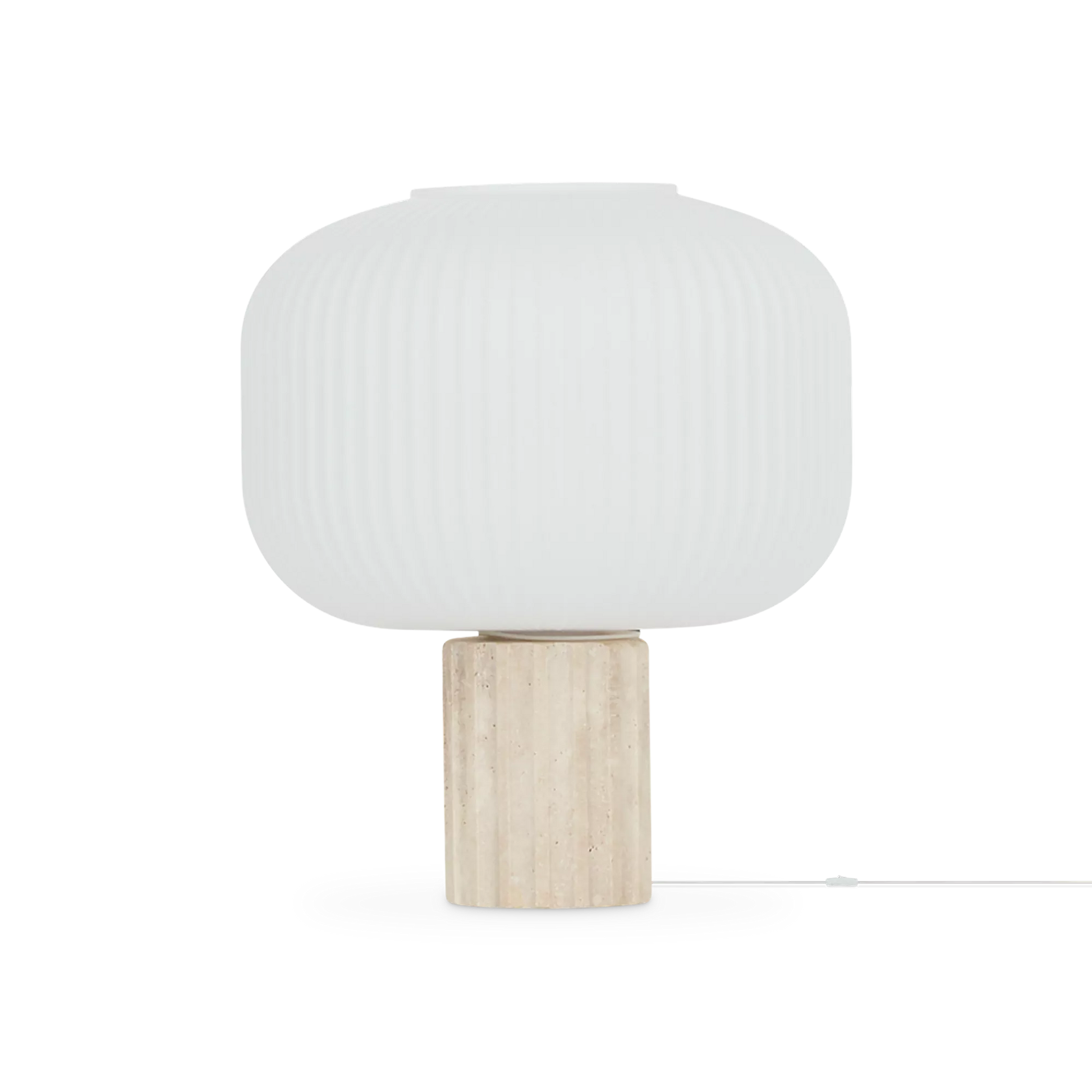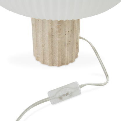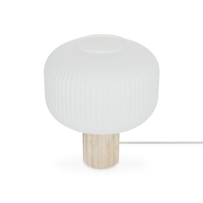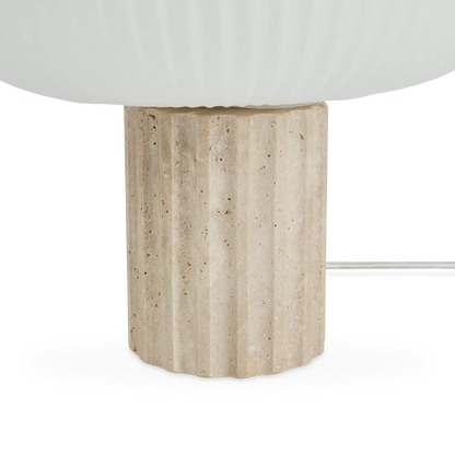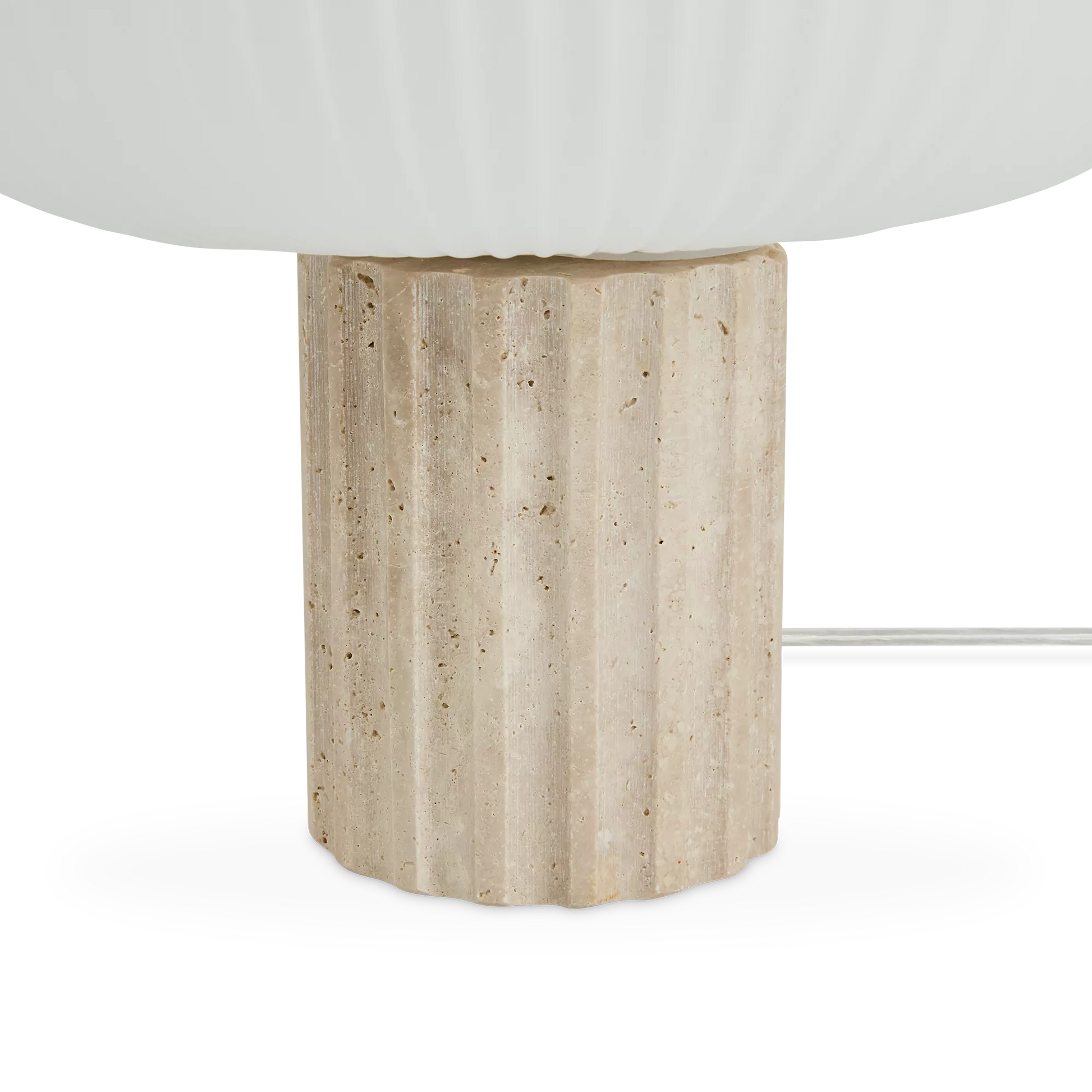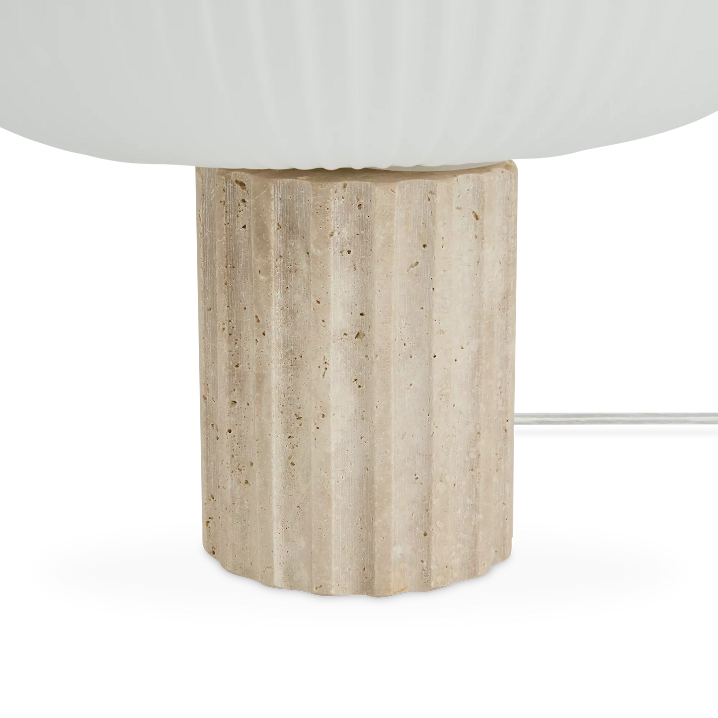 The Allegra table lamp combines a fluted natural stone base with a ribbed glass shade. Its gentle, architectural silhouette diffuses a soft, calming glow, perfect for serene, contemporary spaces. A luminous statement, in every sense of the word.