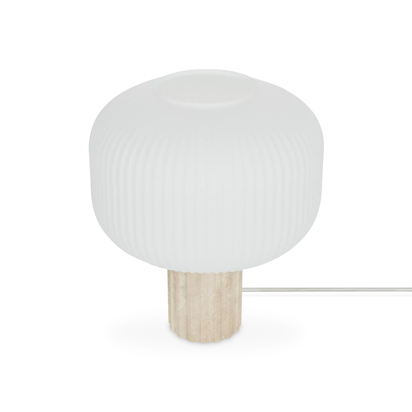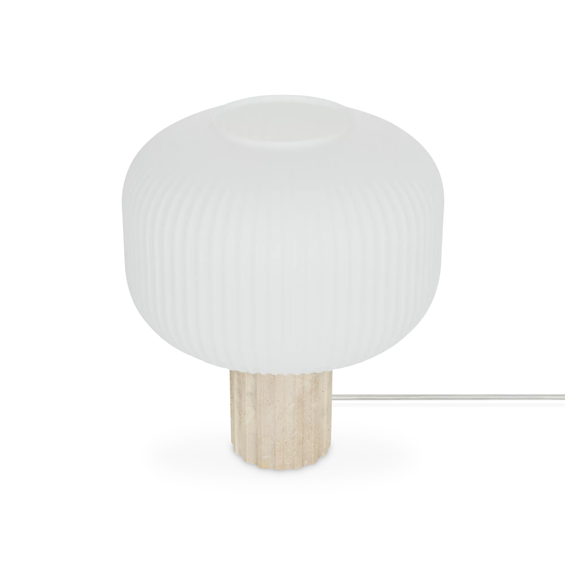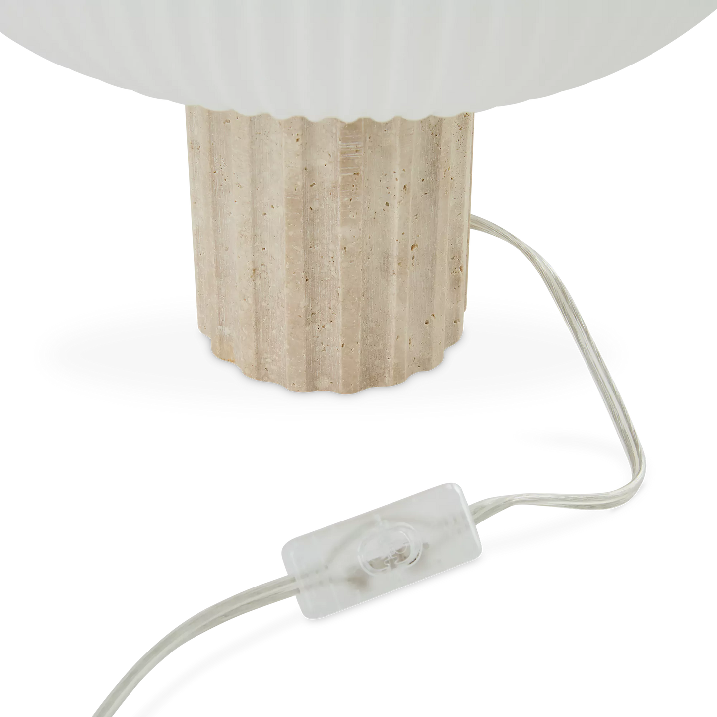 The Allegra table lamp combines a fluted natural stone base with a ribbed glass shade. Its gentle, architectural silhouette diffuses a soft, calming glow, perfect for serene, contemporary spaces. A luminous statement, in every sense of the word.