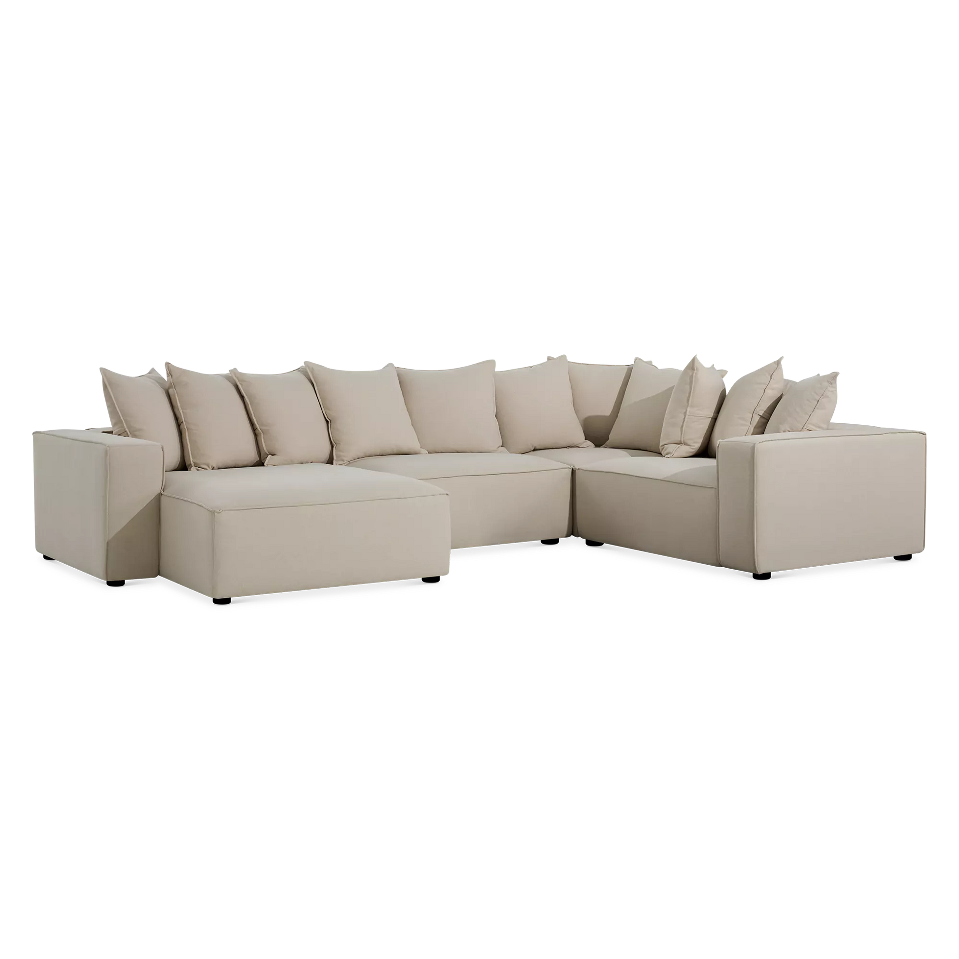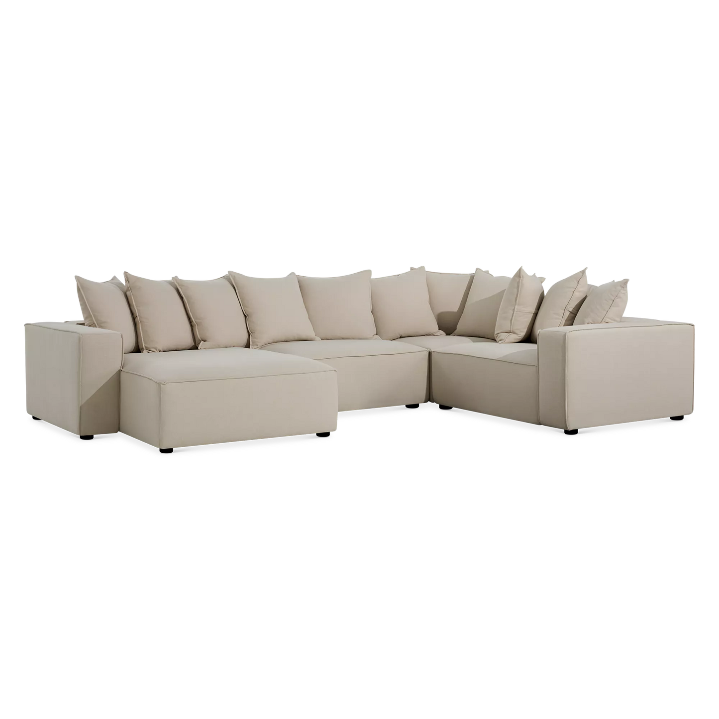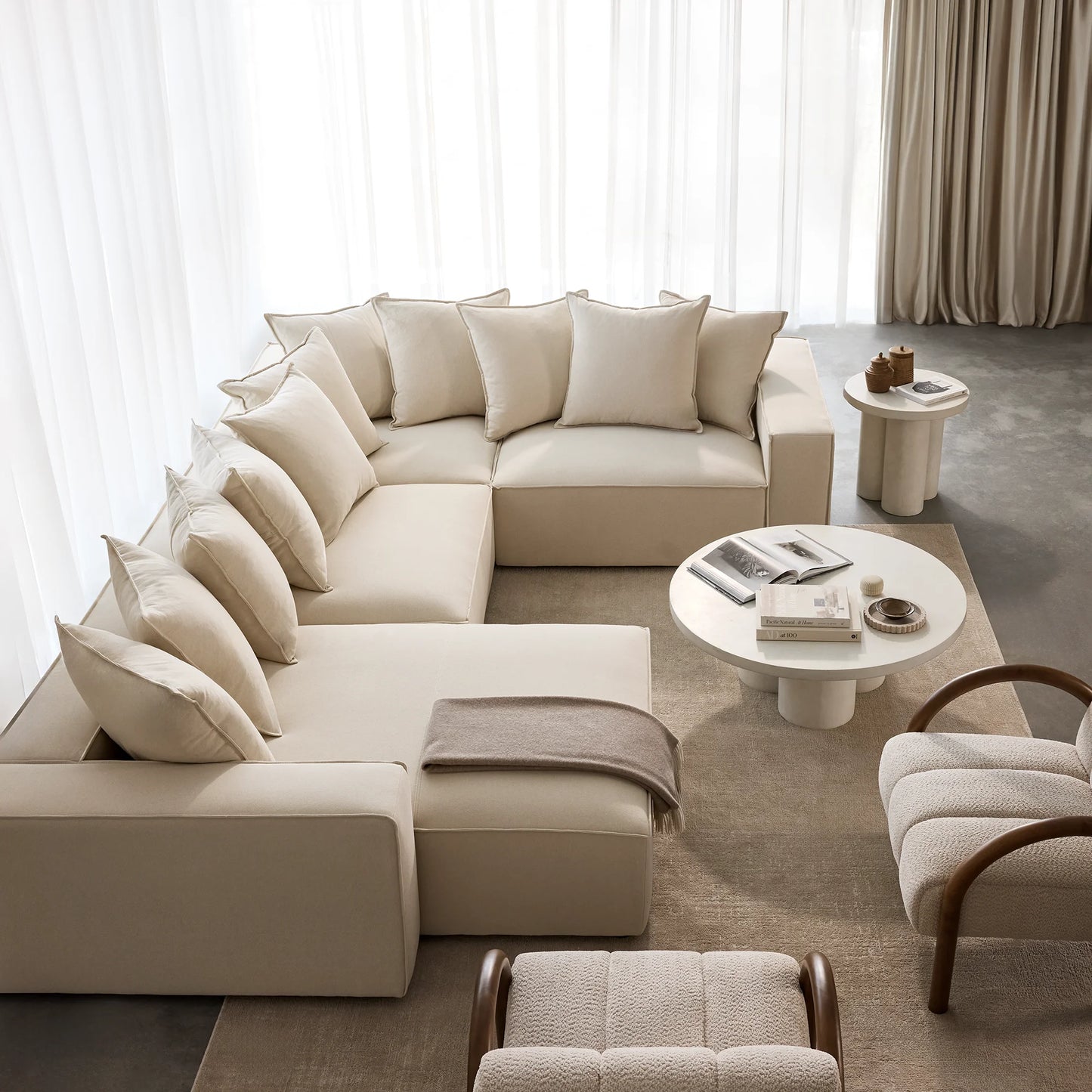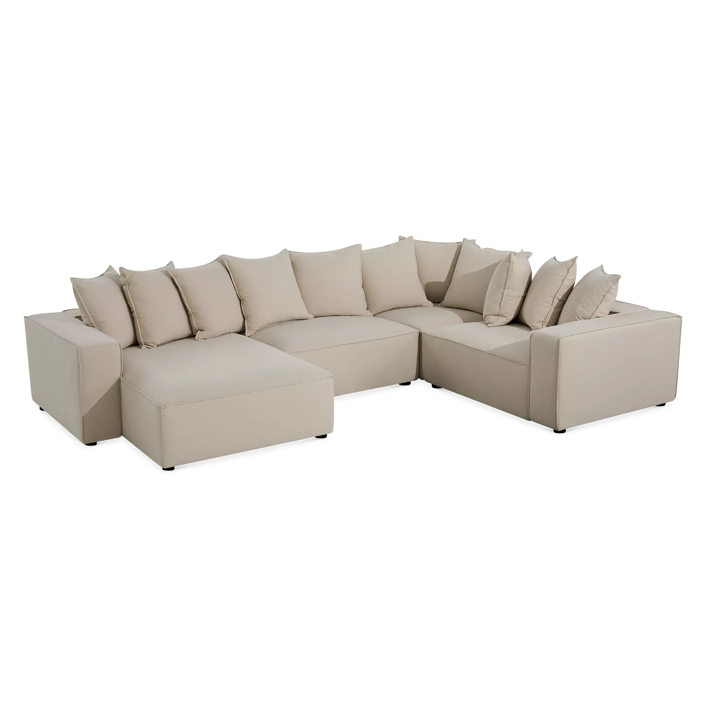 The Amanda modular sofa combines clean lines with laid-back comfort. Its deep seat and piped seams add a modern and refined touch, while an abundance of cushions invites relaxation and allows you adjust the comfort to your liking, all in warm and welcoming style.