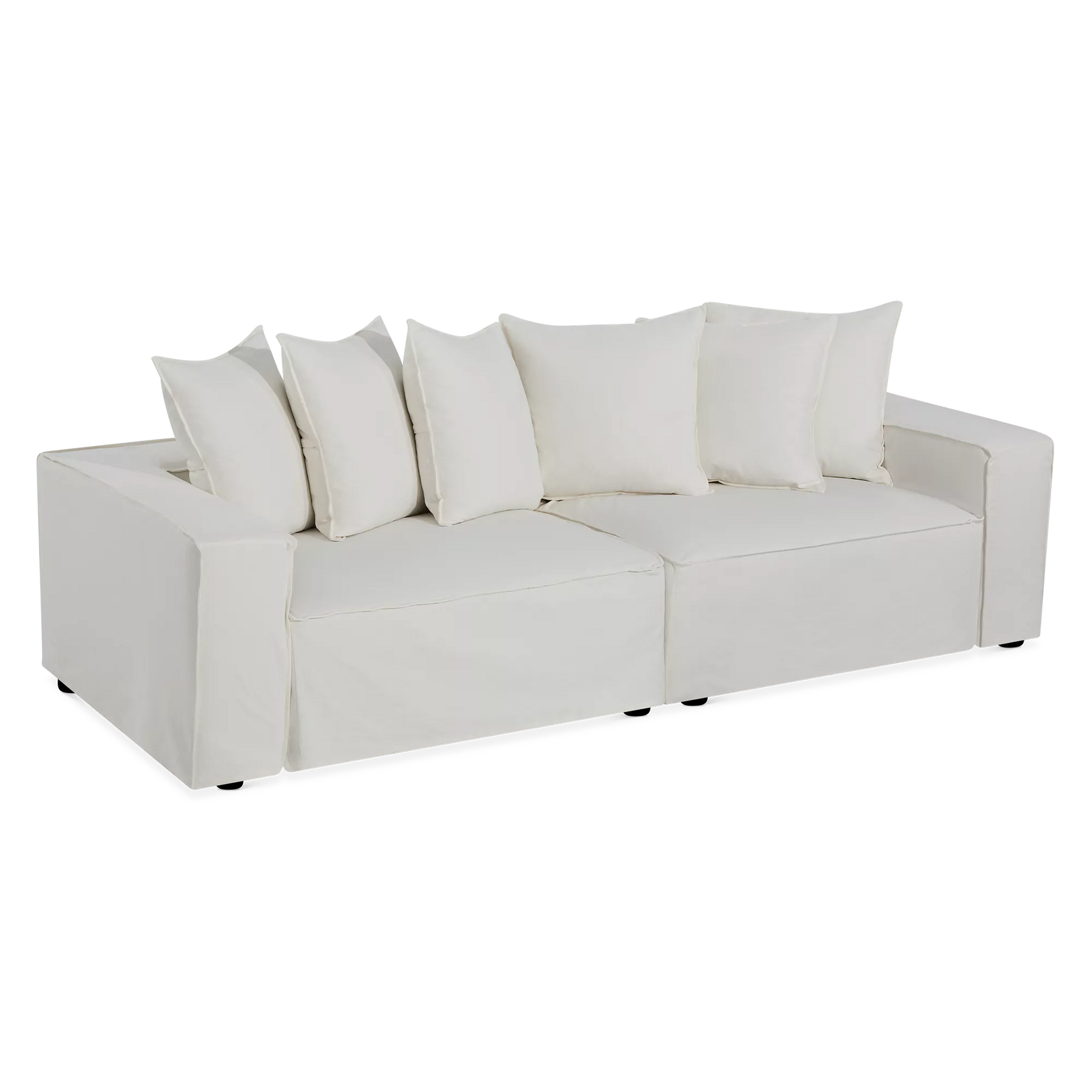 The Amanda modular sofa combines clean lines with laid-back comfort. Its deep seat and piped seams add a modern and refined touch, while an abundance of cushions invites relaxation and allows you adjust the comfort to your liking, all in warm and welcoming style.