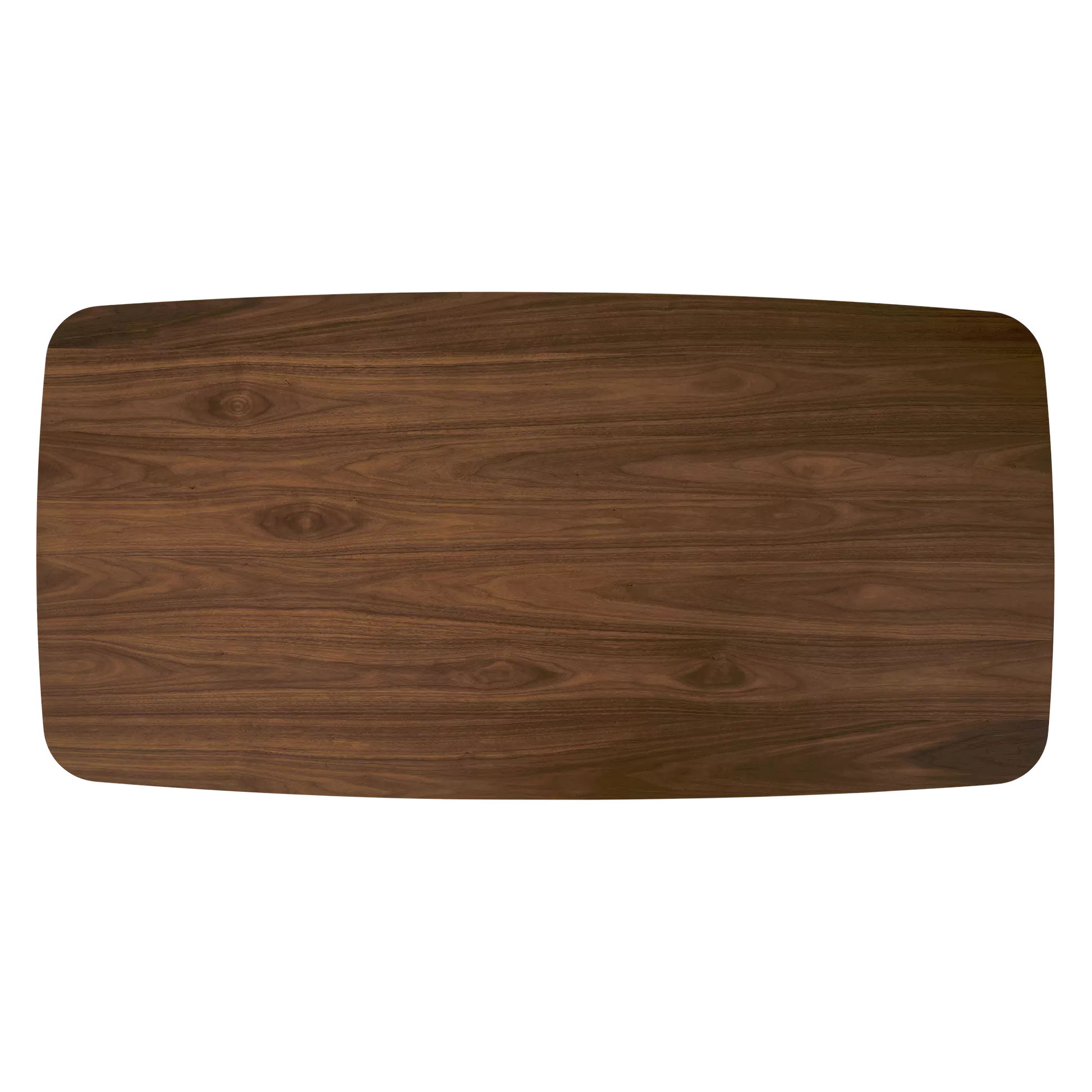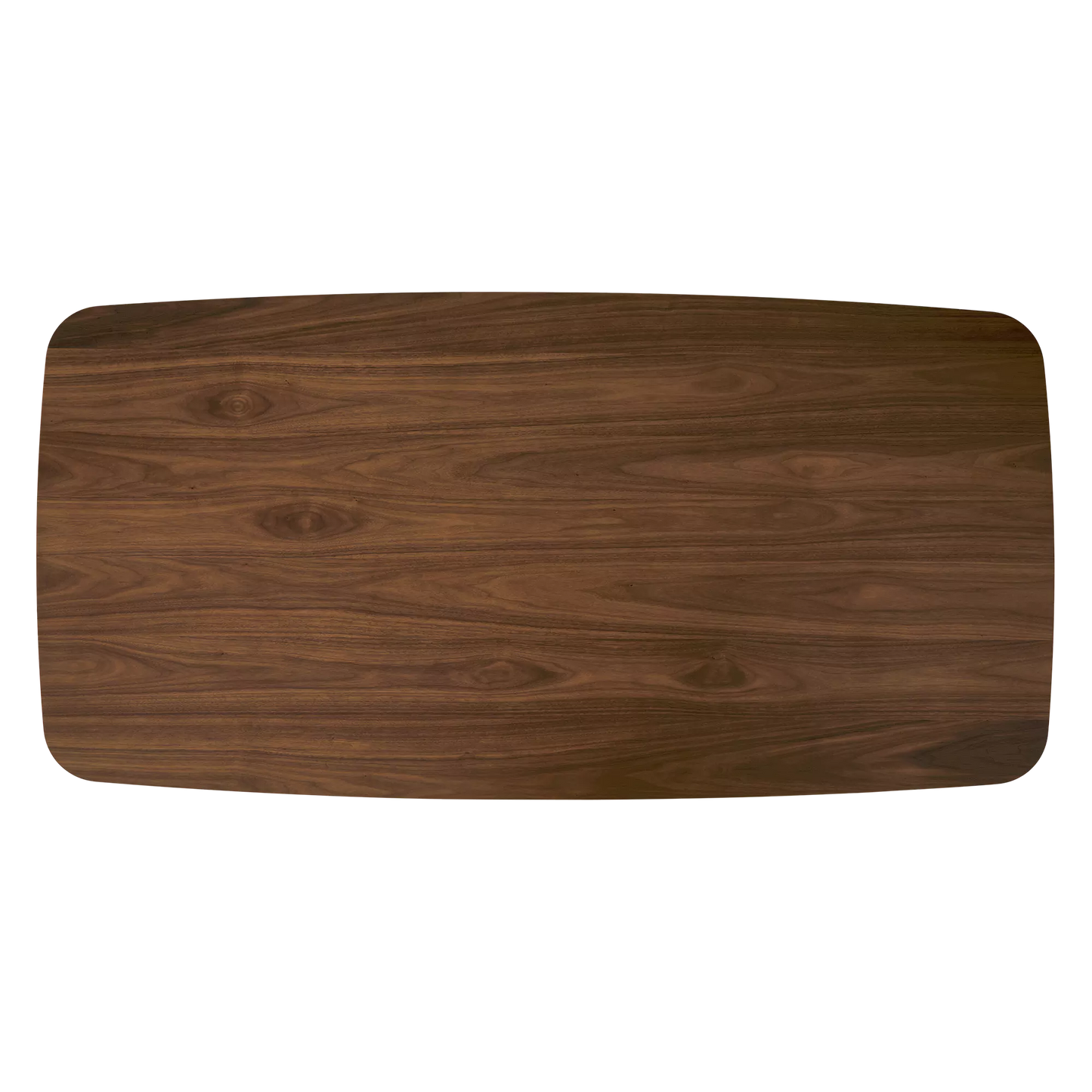 The Anastasia table wows with its spectacular modern design. Crafted entirely from wood veneer for a warm and elegant look, it features a sleek, spacious top with rounded corners and two slender, curved legs. Perfect for any contemporary chic dining room.