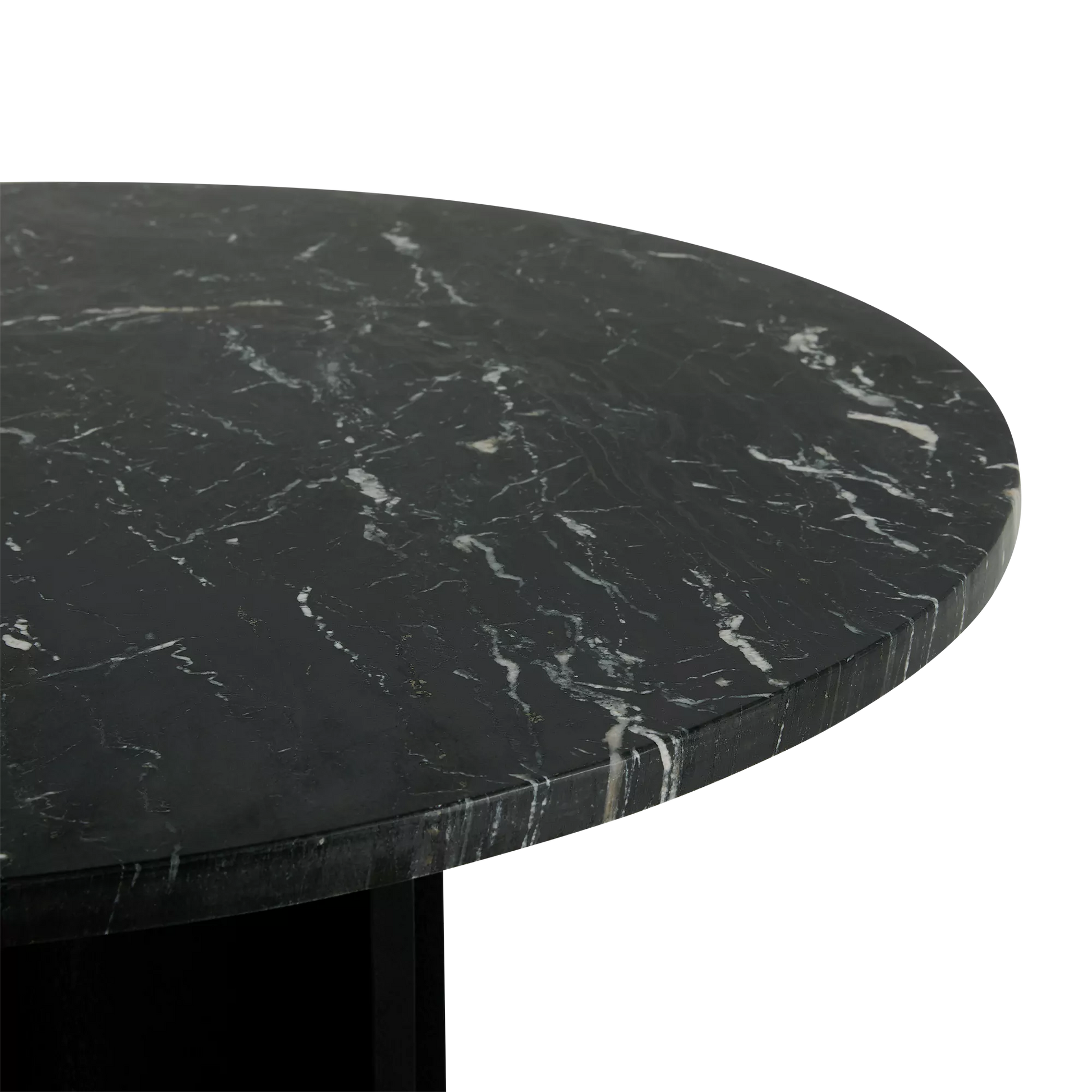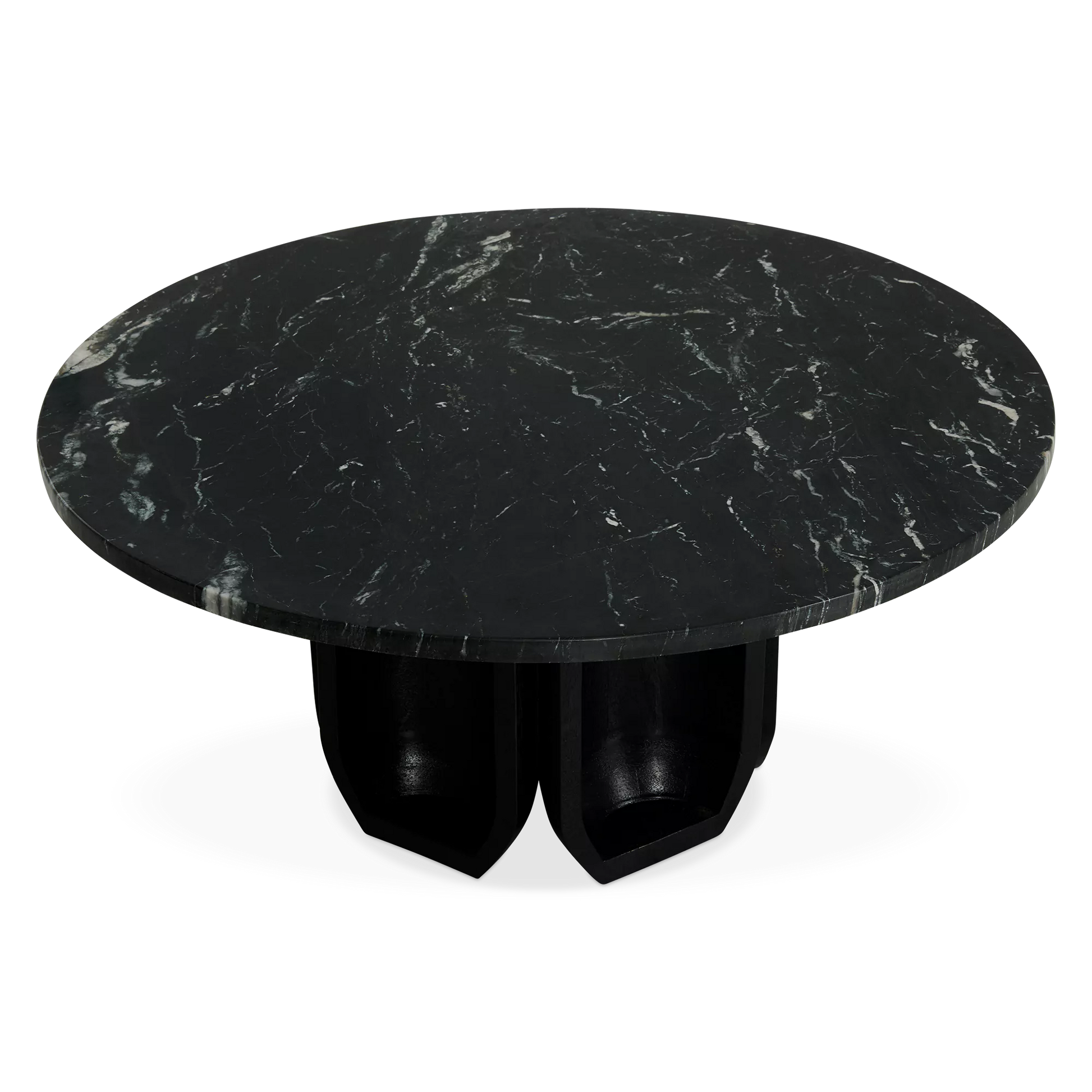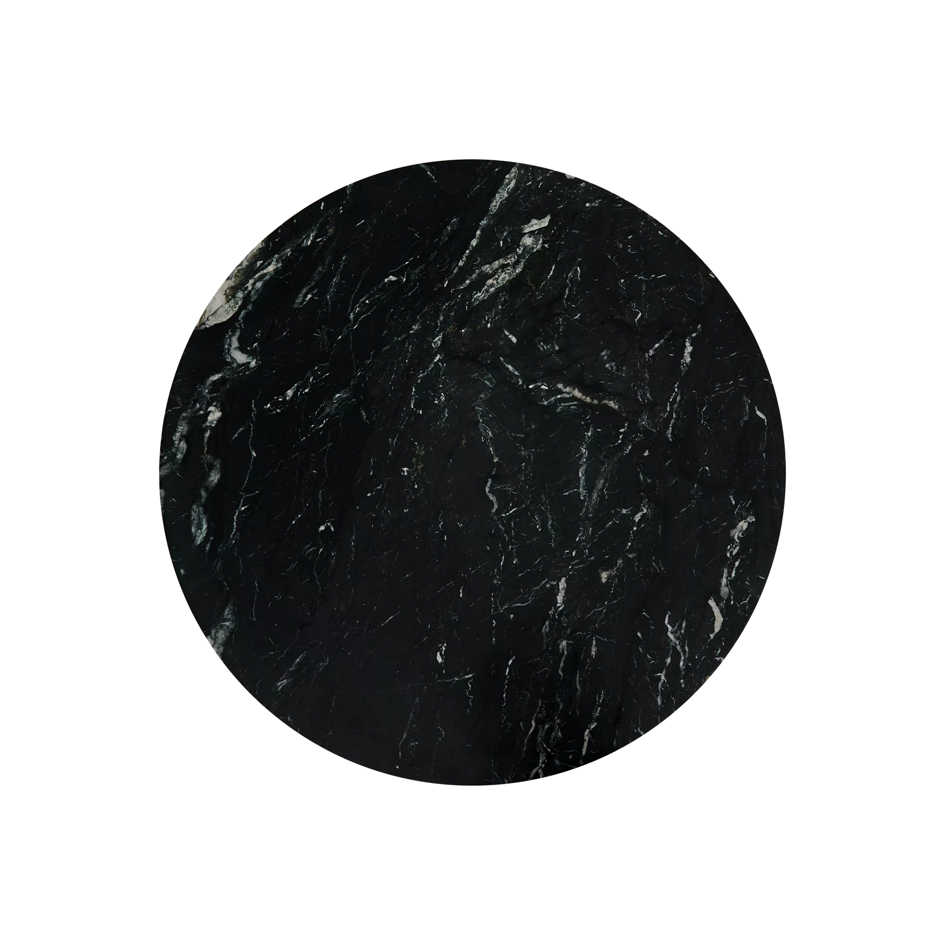 The Angel coffee table draws inspiration from 1970s design with its sculptural, metal pedestal base and curved lines. Its round, black marble top, with its unique variations in tone, celebrates the natural beauty of each stone used. An elegant and distinctive piece for a completely chic living room.