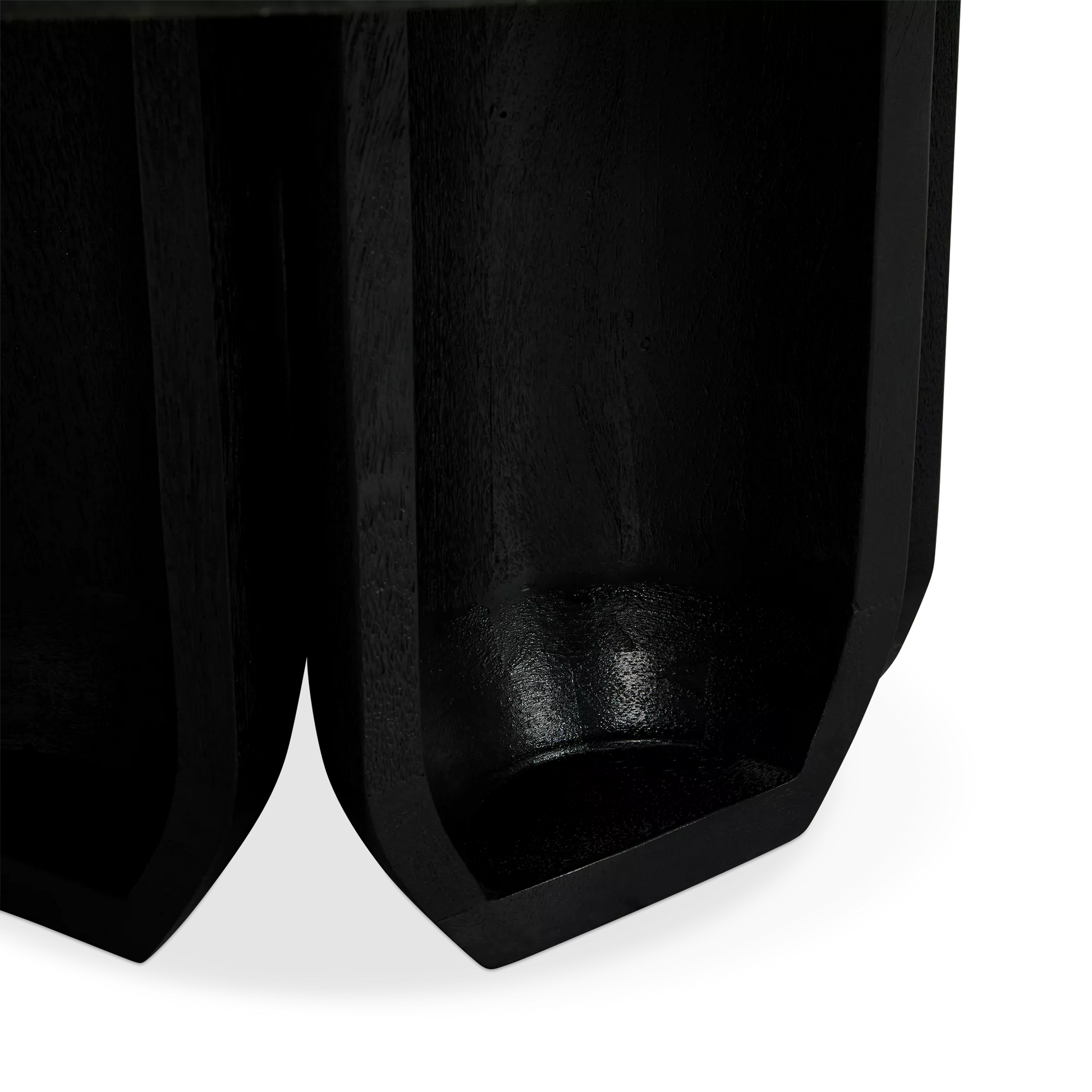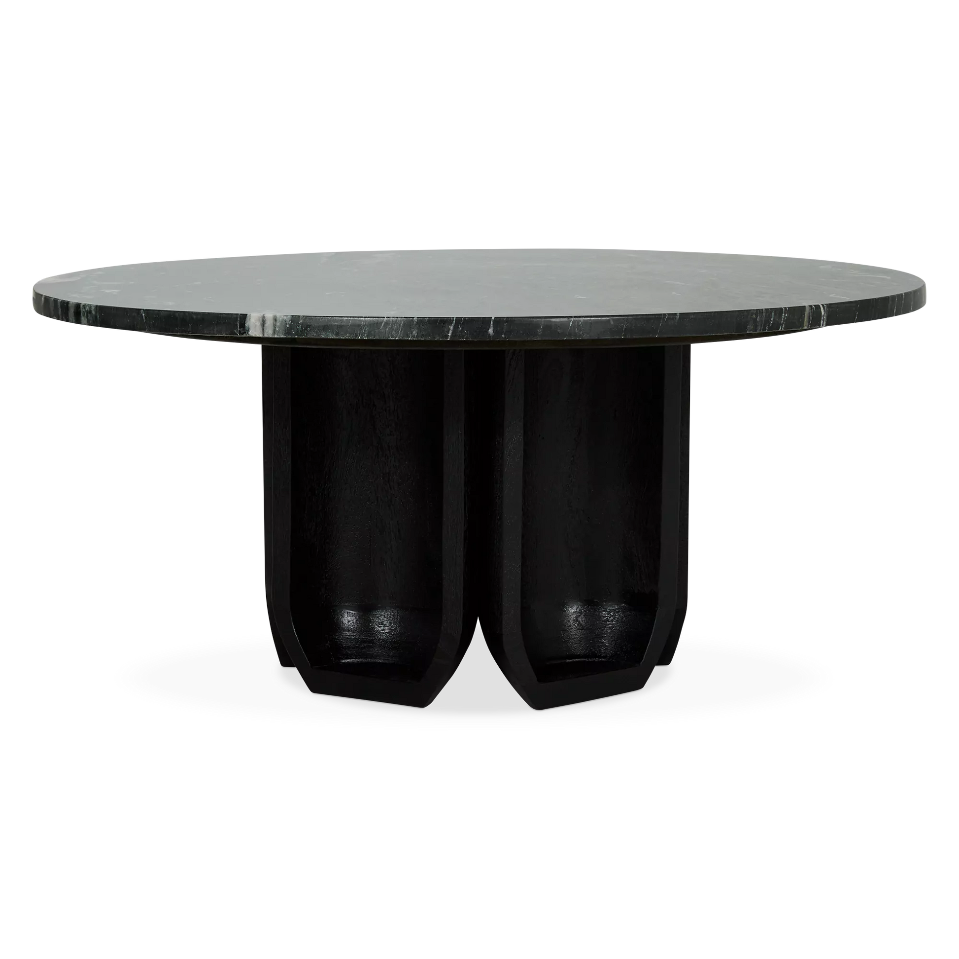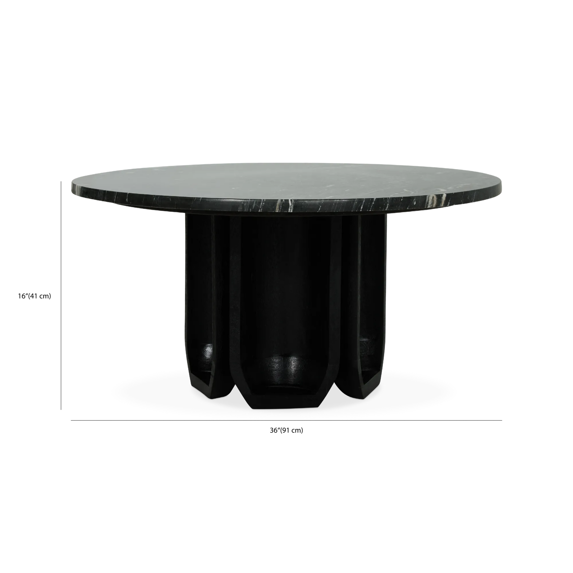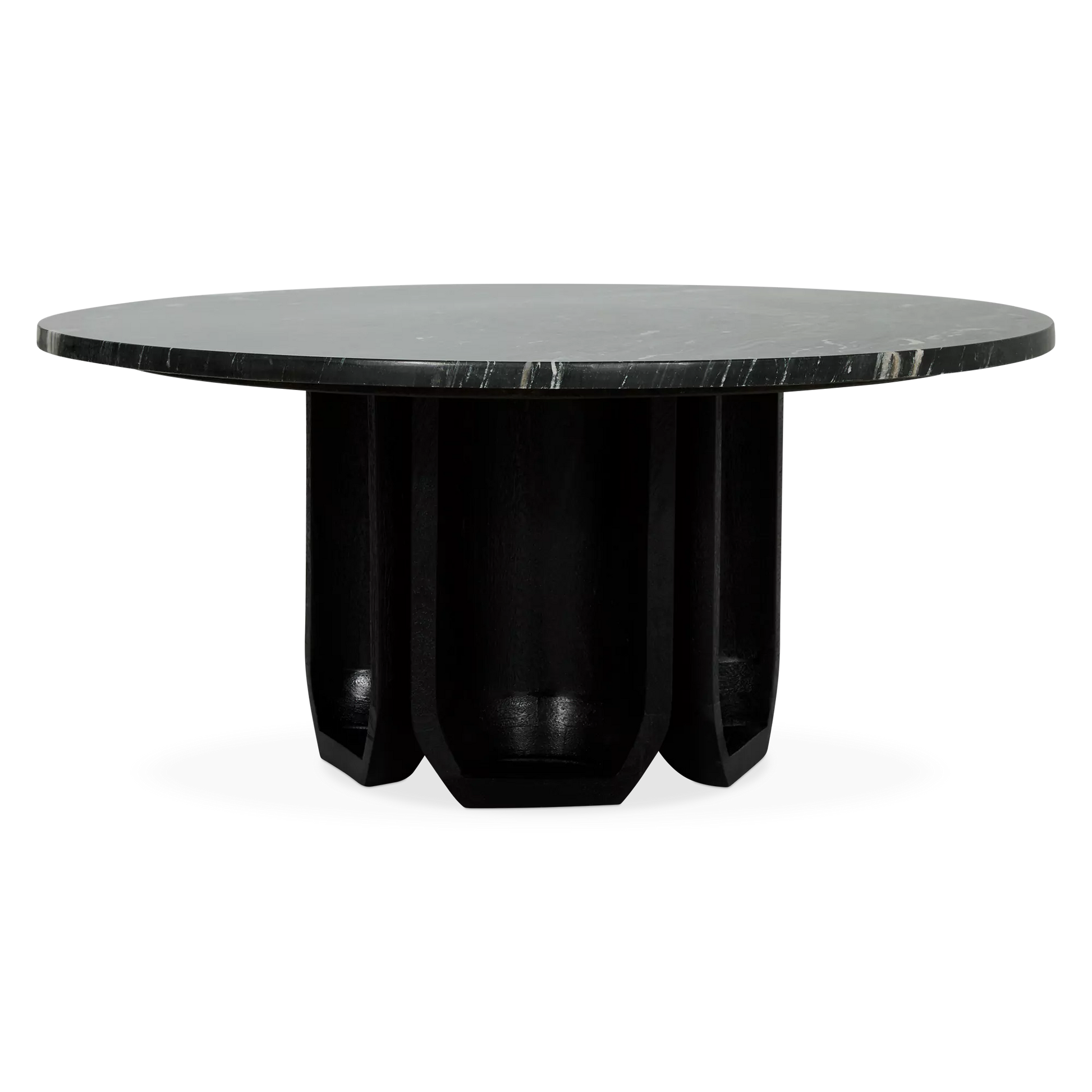 The Angel coffee table draws inspiration from 1970s design with its sculptural, metal pedestal base and curved lines. Its round, black marble top, with its unique variations in tone, celebrates the natural beauty of each stone used. An elegant and distinctive piece for a completely chic living room.