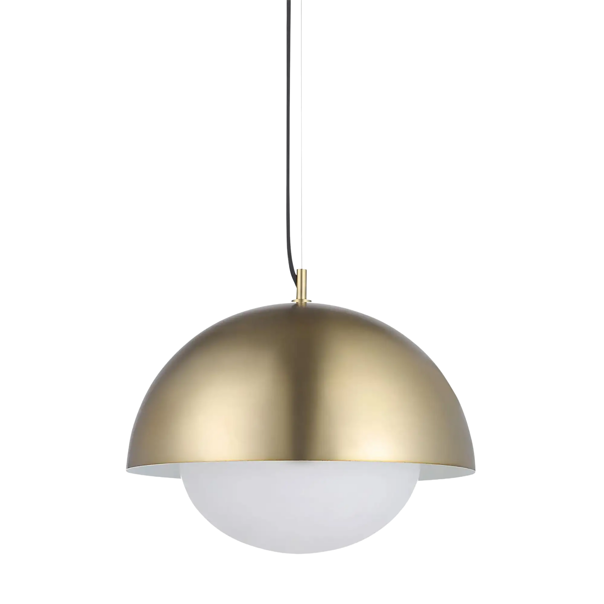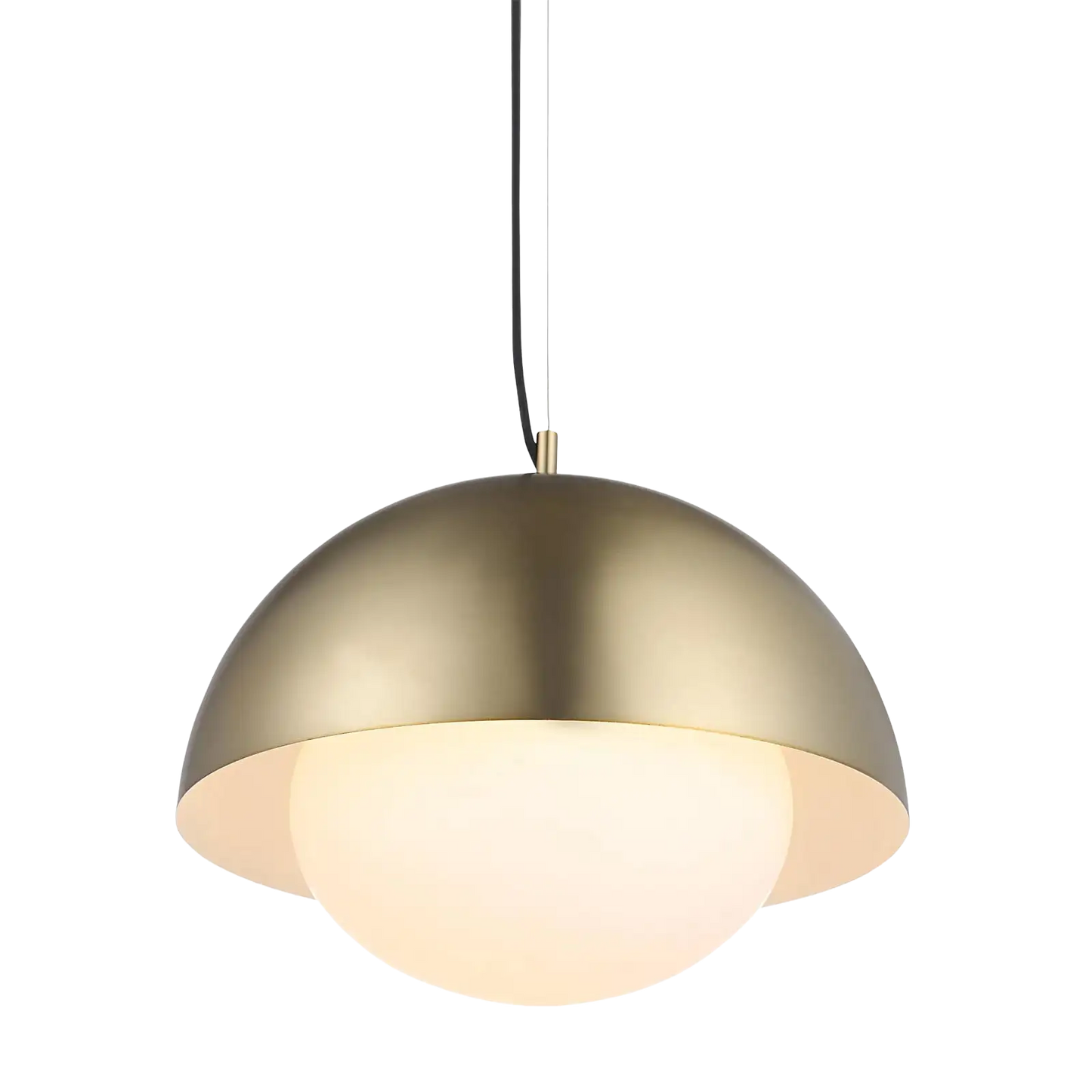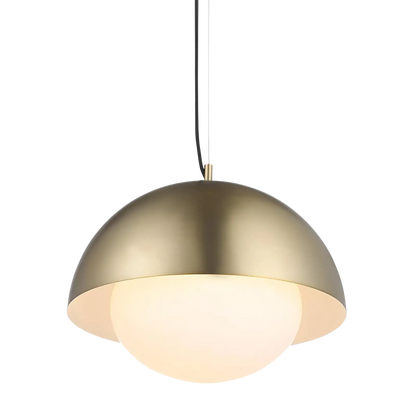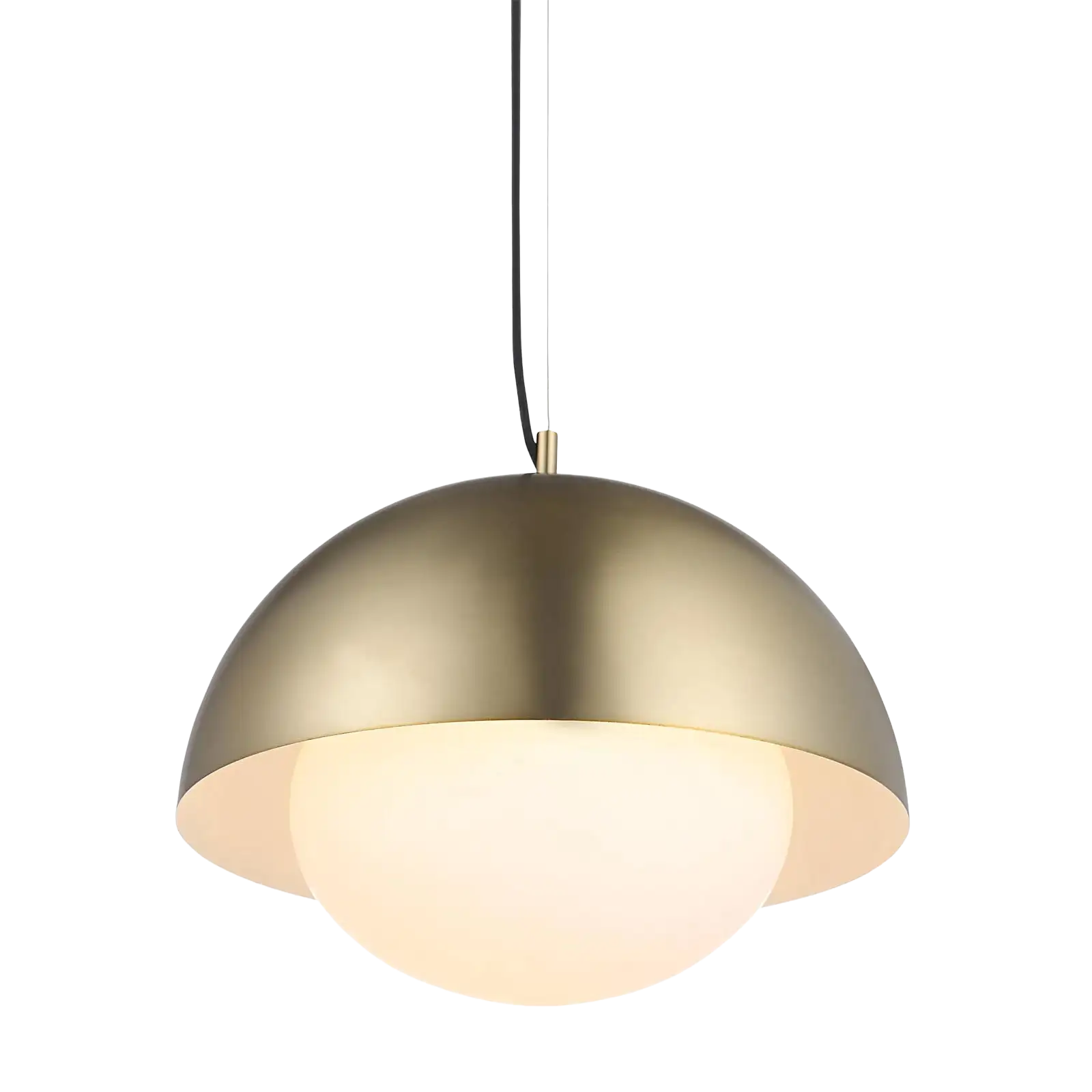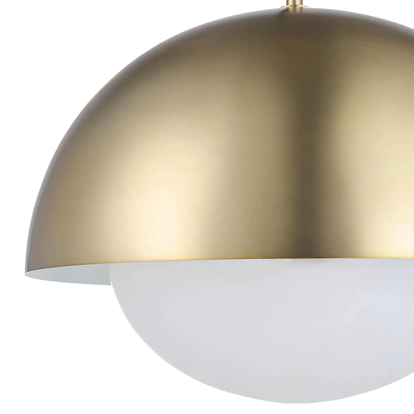 More details: Dia-15.75" x 12.75"H / Maximum cord length of 108" Iron ceiling light Champagne-plated finish Etched white glass Hardwired Max. 40W E26 socket Dimmable LED bulb included UL certified