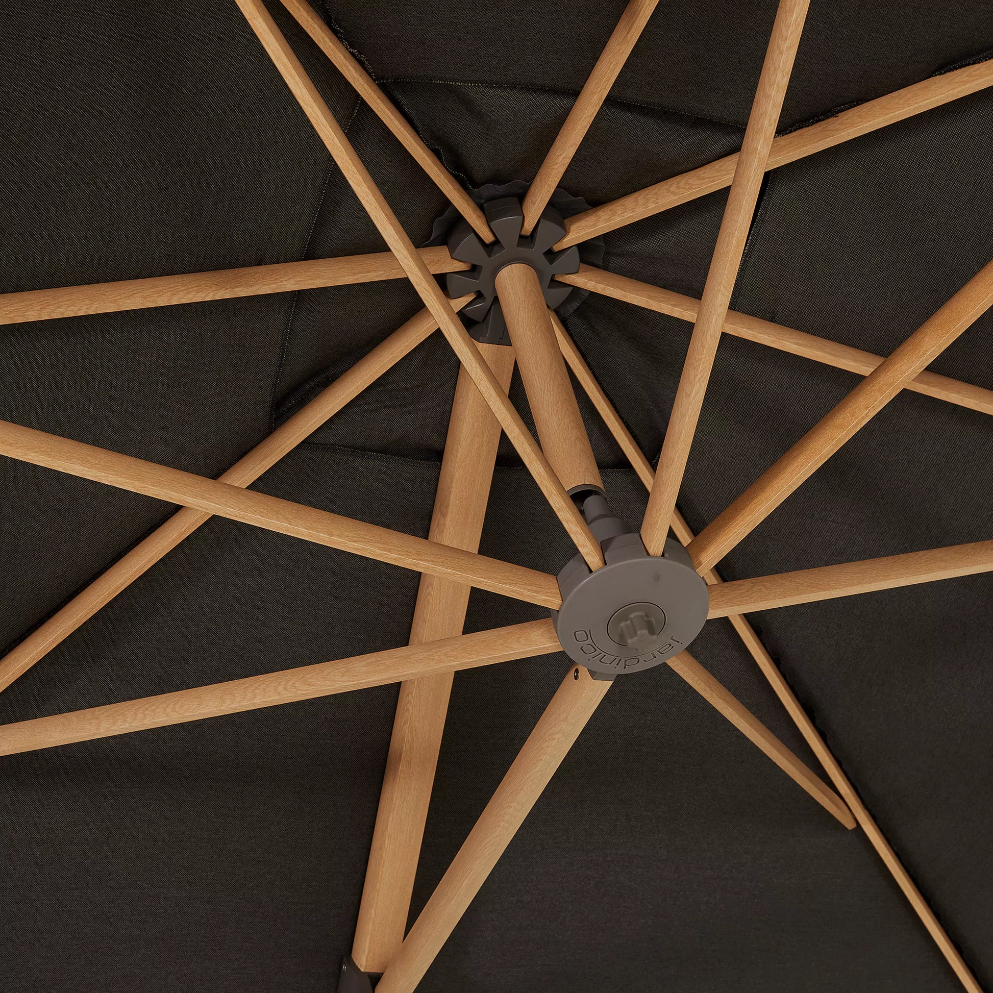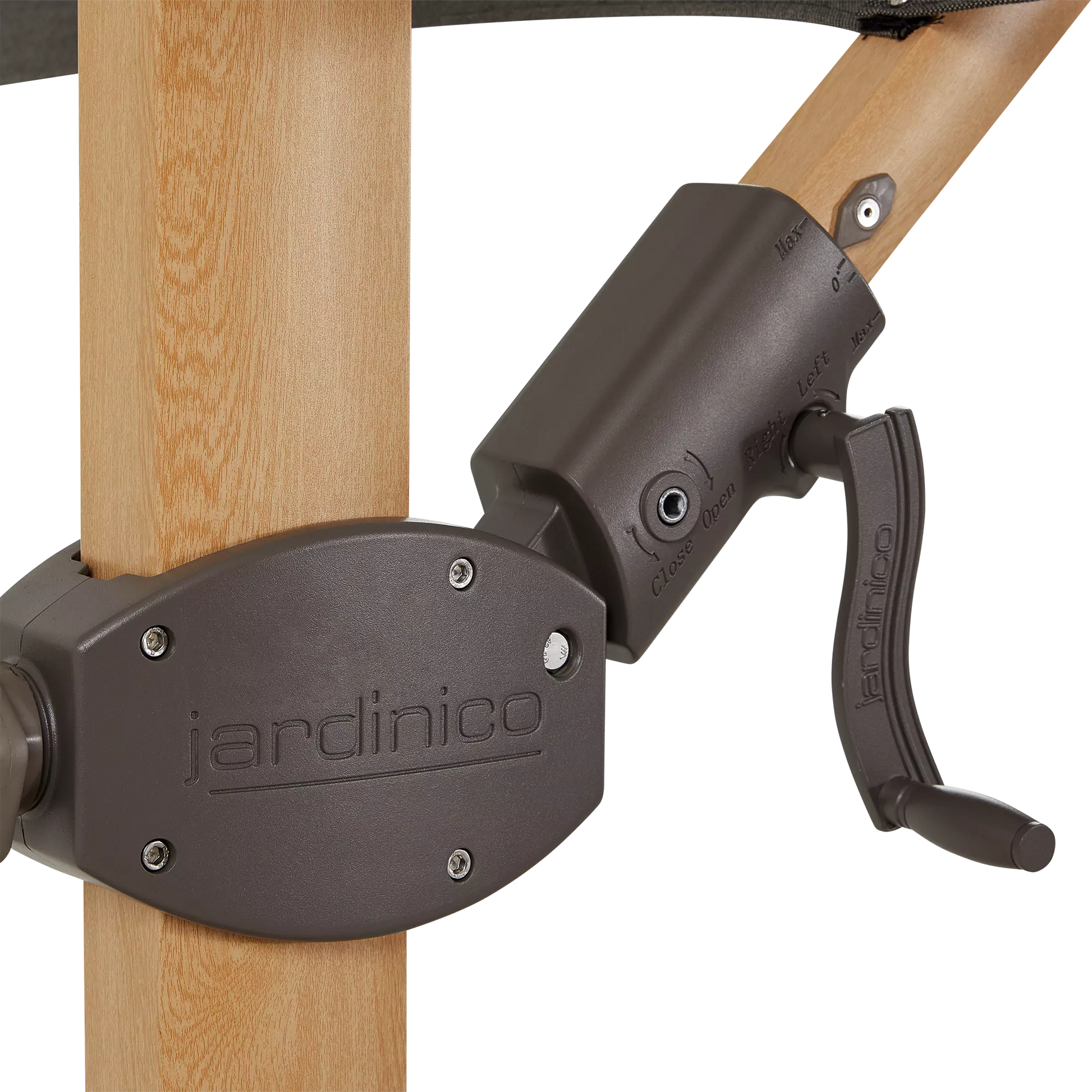 Antego is surprisingly easy to manoeuvre! Adjust the height using its handle, choose the desired tilt position using its crank, and turn the umbrella a full 360 degrees by pressing on its pedal. For added privacy, you can even create a perpendicular wall by lowering the umbrella and tilting it to the left or right.