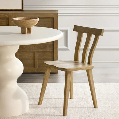 Crafted from oak wood with a smoky grey finish, the Ardea chair embodies rustic charm and timeless simplicity. Its sculpted seat and gently flared backrest provide comfort, while tapered legs give its sturdy silhouette an airy touch. The perfect addition to a minimalist or modern organic table, Ardea will bring warmth and authenticity to any dining space.