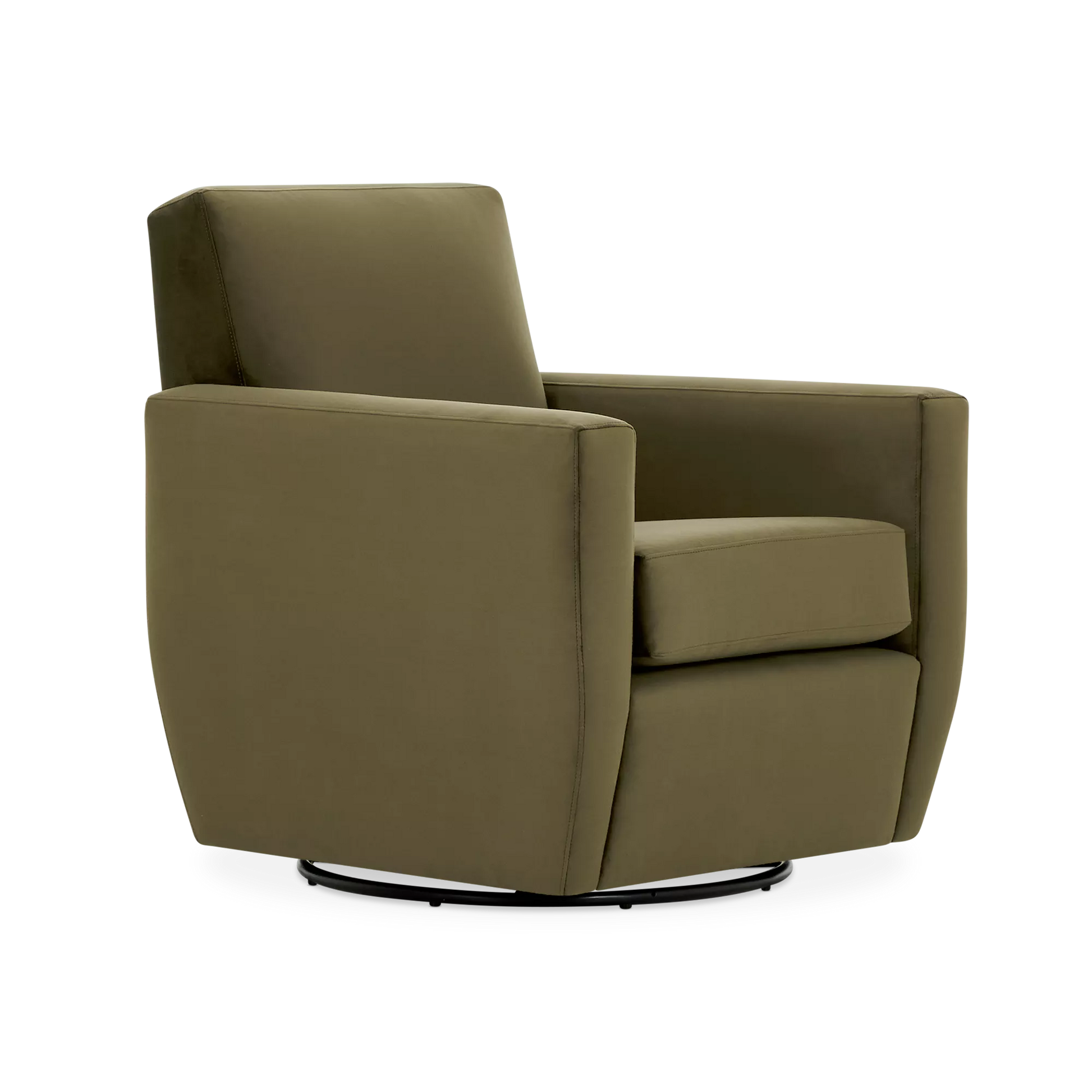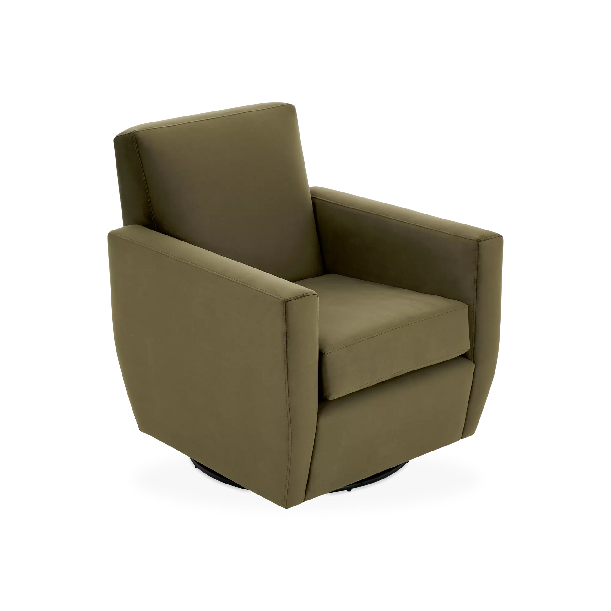 With its clean lines and compact scale, the Avalon swivel chair is especially suited to contemporary living. Its deep, cushioned seat offers lasting comfort, while its smooth swivel base allows for effortless movement. For easy conversation or quiet retreat, this streamlined chair fits seamlessly into any space. An exclusive Canadian-made design.