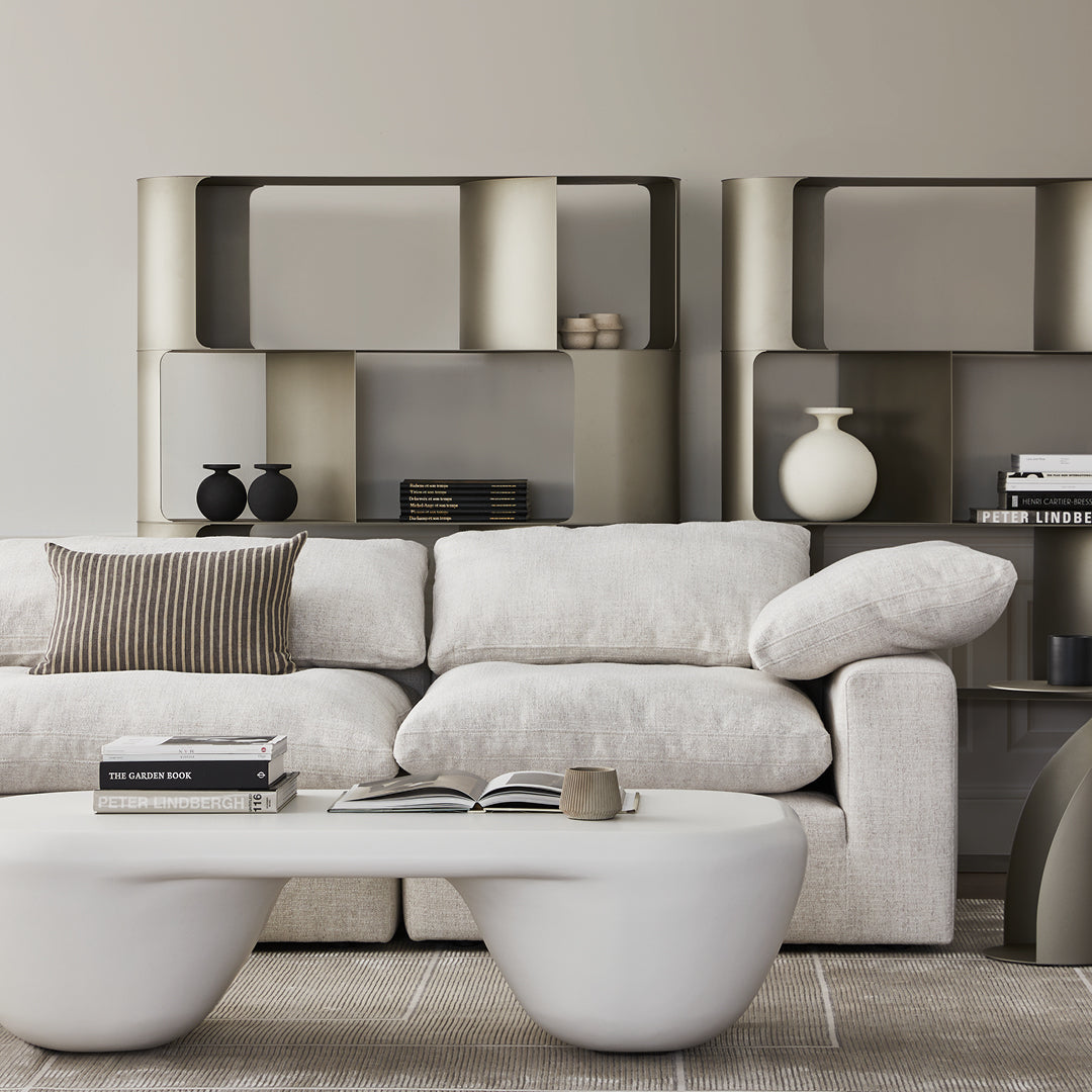 The Berlin ottoman is warm and inviting. Thanks to its modular structure and generously padded seat, it’s a great choice for a family room where comfort takes first place.