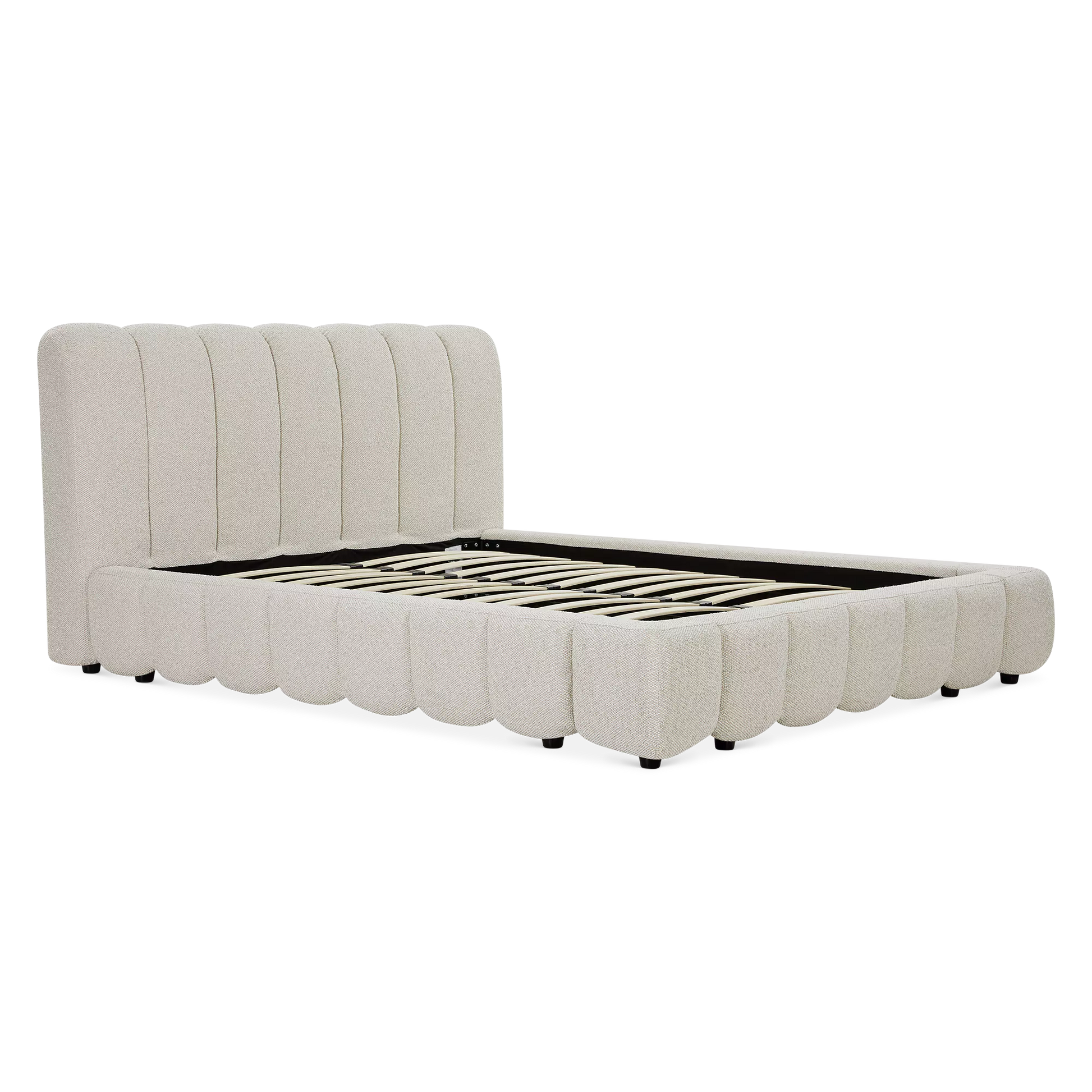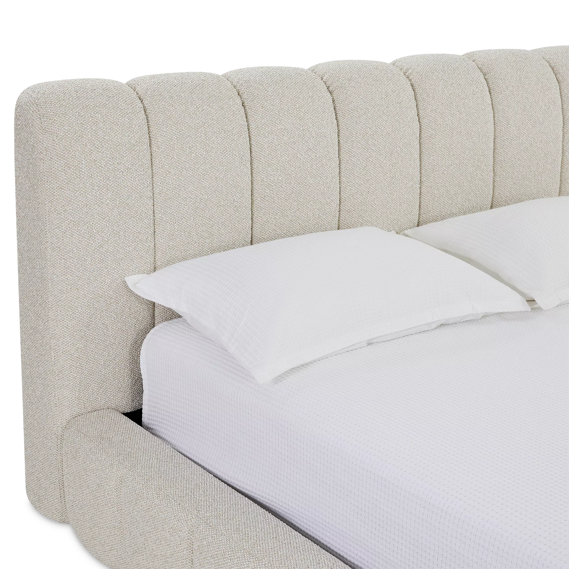 Channel tufted and upholstered in Tasmin linen fabric, the Biba bed envelops the bedroom in luxurious style and comforting softness with its rounded lines and textured finish. Ideal for any warm and modern, this inviting bed is designed for peaceful nights and gentle awakenings.