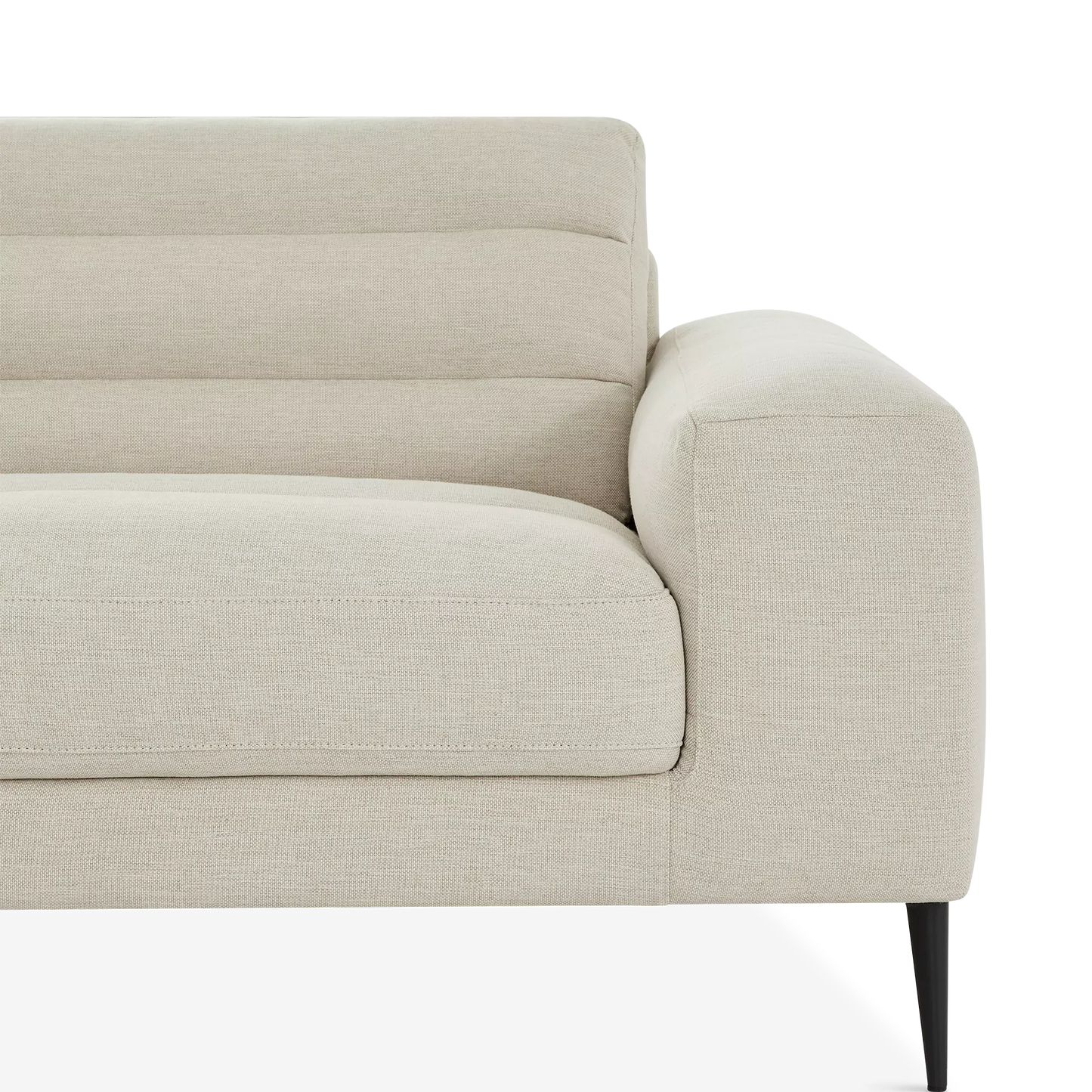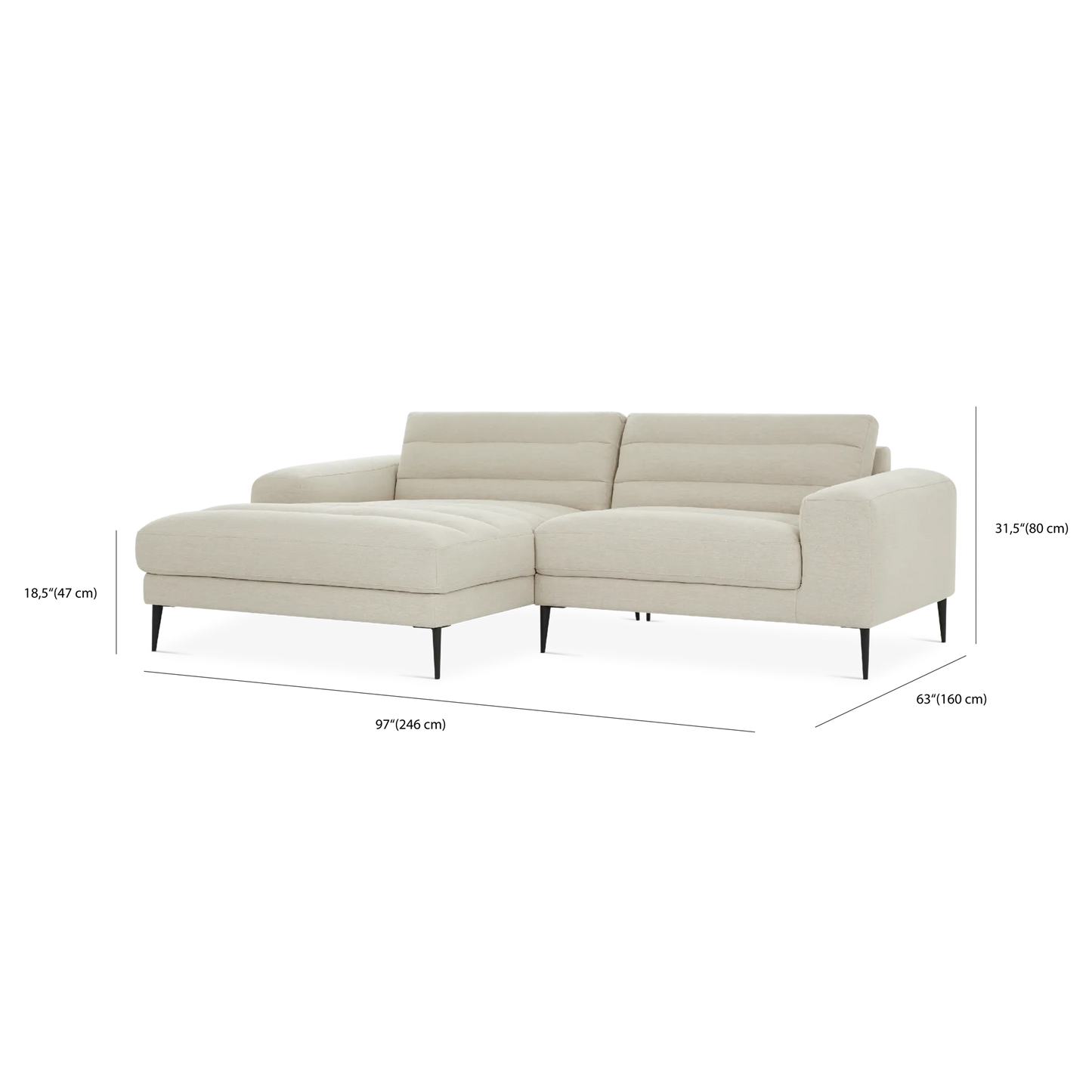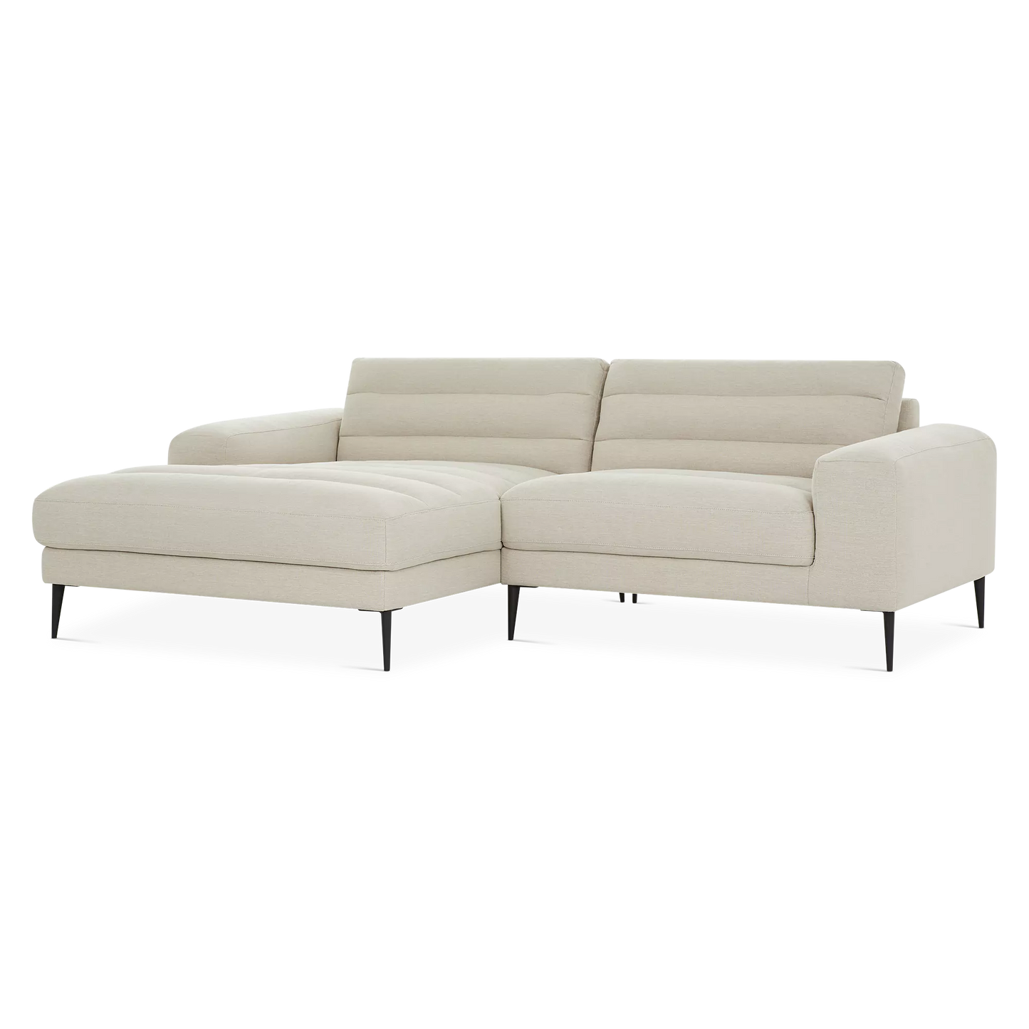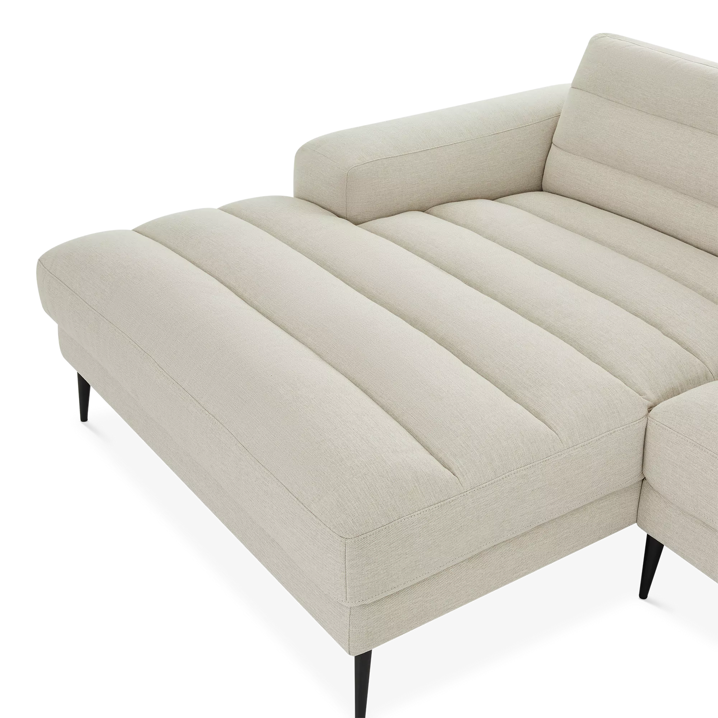 Straight to the point. In addition to offering spacious and comfortable seating, the Biel sectional sofa oozes sophistication with its slender black metal legs and chic channel tufting. Its chaise lounge can accommodate two people with ease.