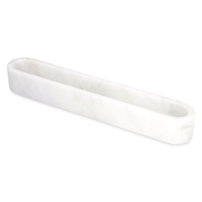 The Biscuit tray in white marble, elongated and elegant, is ideal for displaying your dishes or holding small everyday items, such as jewelry. Its versatility makes it both a practical accessory and a refined decorative element. The timeless beauty of natural marble enhances any interior with discretion and style.