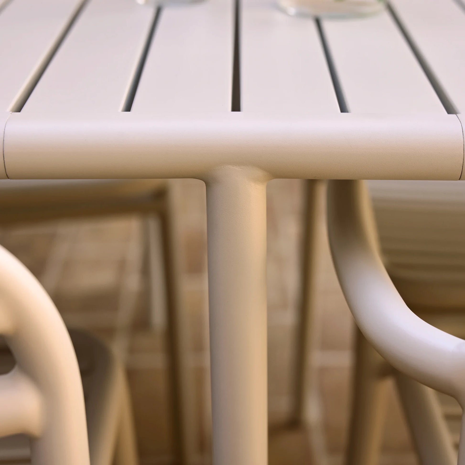 Designed by Danish brand Cane-line, the Bliss square dining table combines a Scandinavian design with a lightweight yet sturdy aluminium construction, ideal for outdoor use. In a city courtyard seating or expansive garden in the countryside, this functional table will elevate your everyday meals while adding a modern touch to your outdoor space. Extension module also available.
