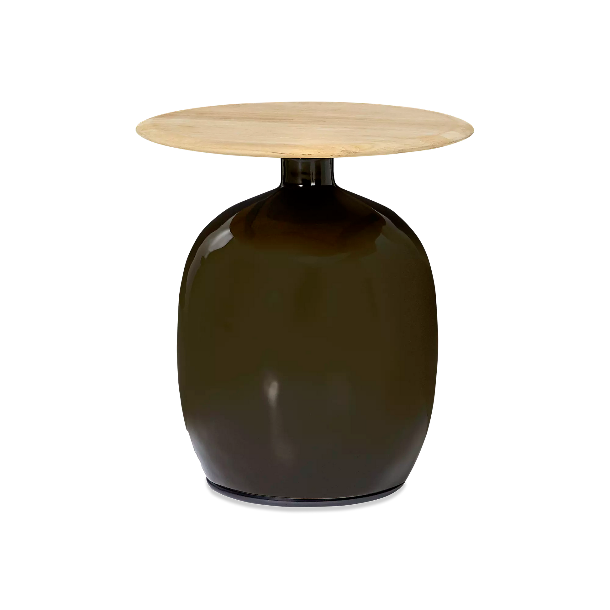 The round Blow table will attract attention from every angle. Its glazed ceramic base pays homage to the beauty of blown glass with its shimmering reflections. To cap off his work of art, designer Henrik Pedersen added a teak top with an elegant bevelled edge. Pair this table with the taller version to create a striking, staggered height effect.