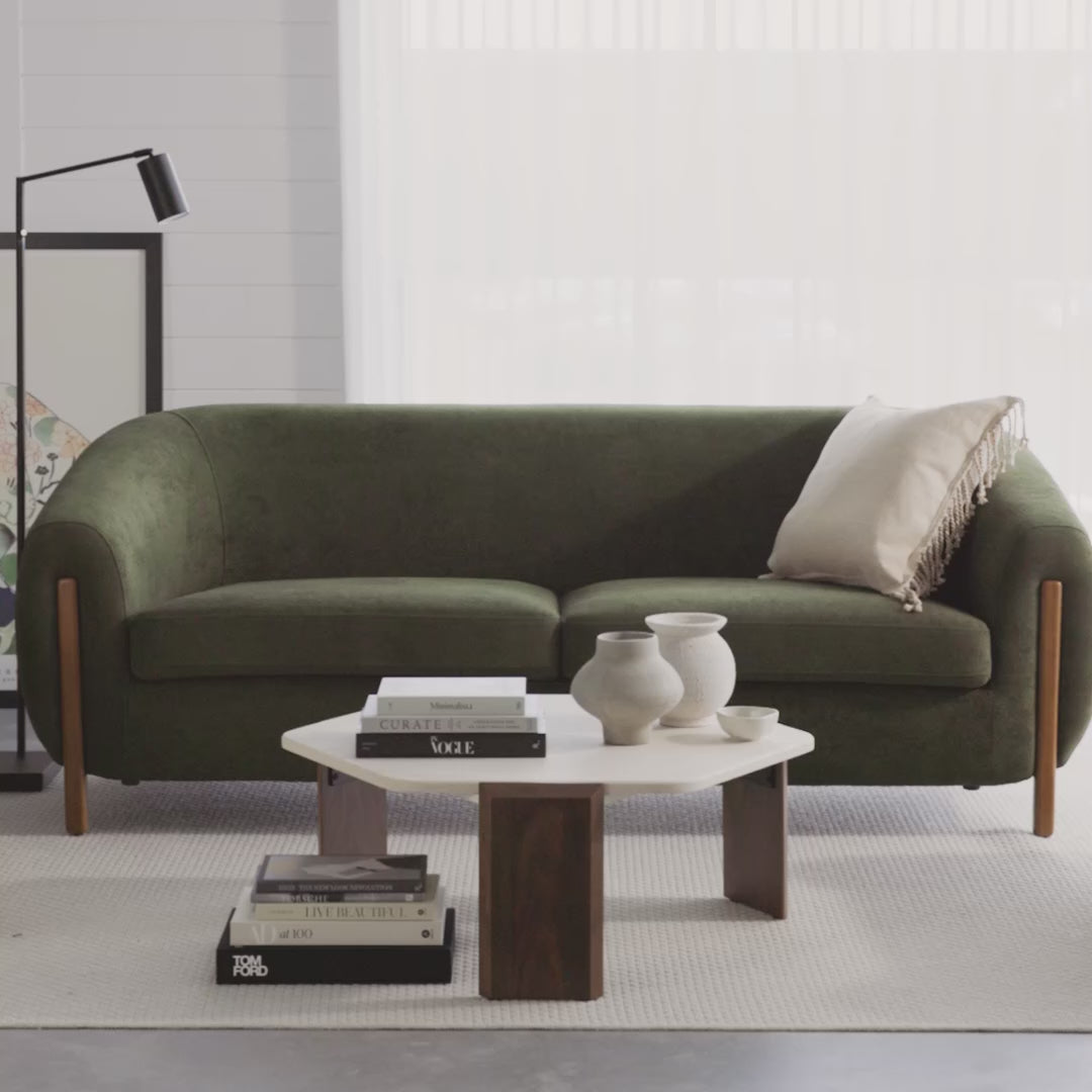 In search of a soft touch? The Bobby sofa embodies the natural beauty of its materials and exceptional craftsmanship. Its wooden frame and legs, which extend upward into armrests, create a unique visual continuity while giving it plenty of style. Its rounded and on-trend shape will soften the look of any space, making this sofa the perfect choice for modern, minimalist, and even more classic interiors.