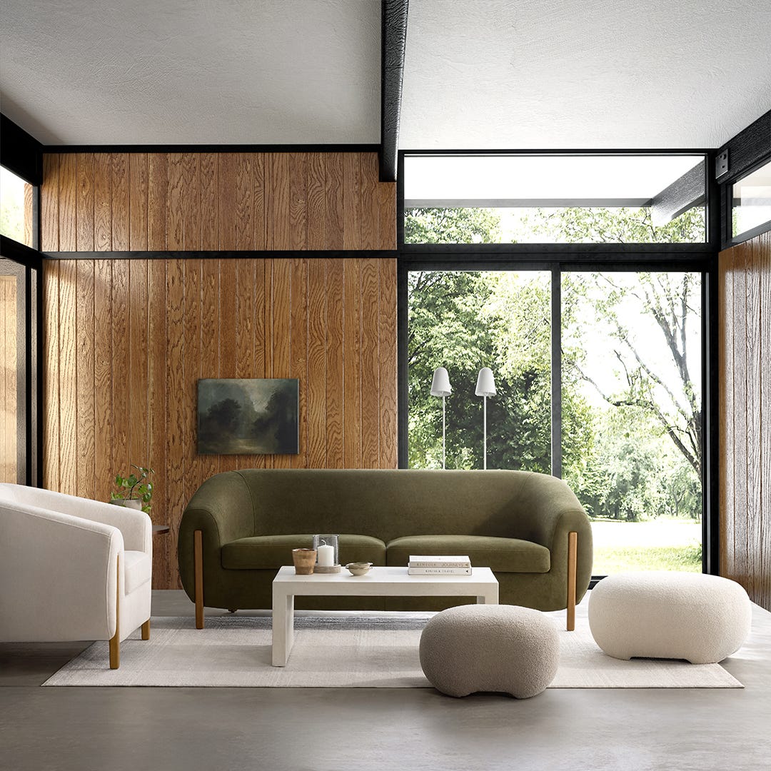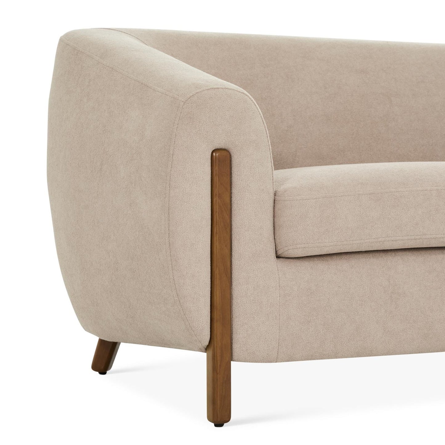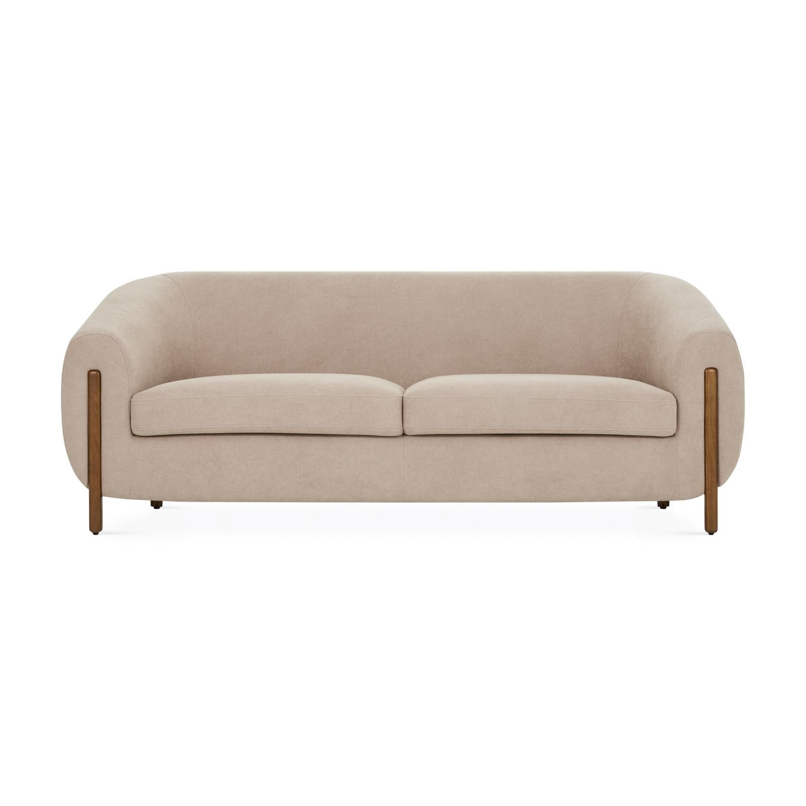 In search of a soft touch? The Bobby sofa embodies the natural beauty of its materials and exceptional craftsmanship. Its wooden frame and legs, which extend upward into armrests, create a unique visual continuity while giving it plenty of style. Its rounded and on-trend shape will soften the look of any space, making this sofa the perfect choice for modern, minimalist, and even more classic interiors.