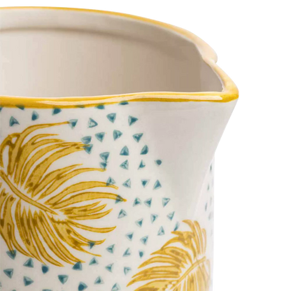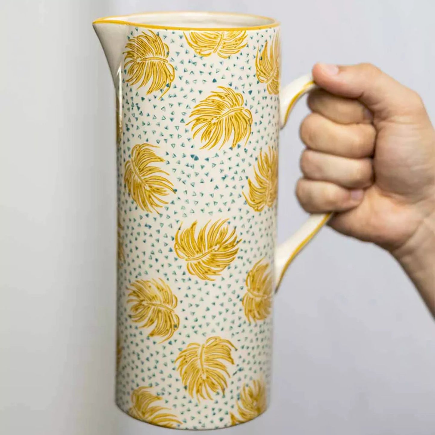 The Boho Chic carafe enchants with its hand-stamped floral pattern, bringing a natural and warm touch to the table. Perfect for serving water, juice, or tea, it can also be used as a decorative vase, blending harmoniously into the home or on the balcony.