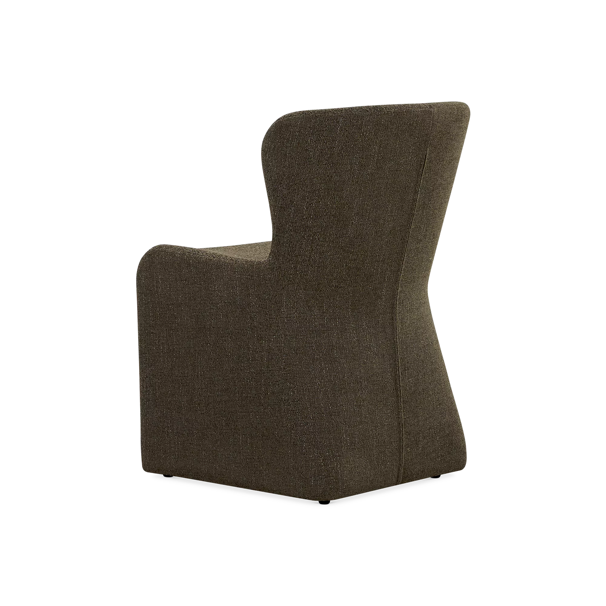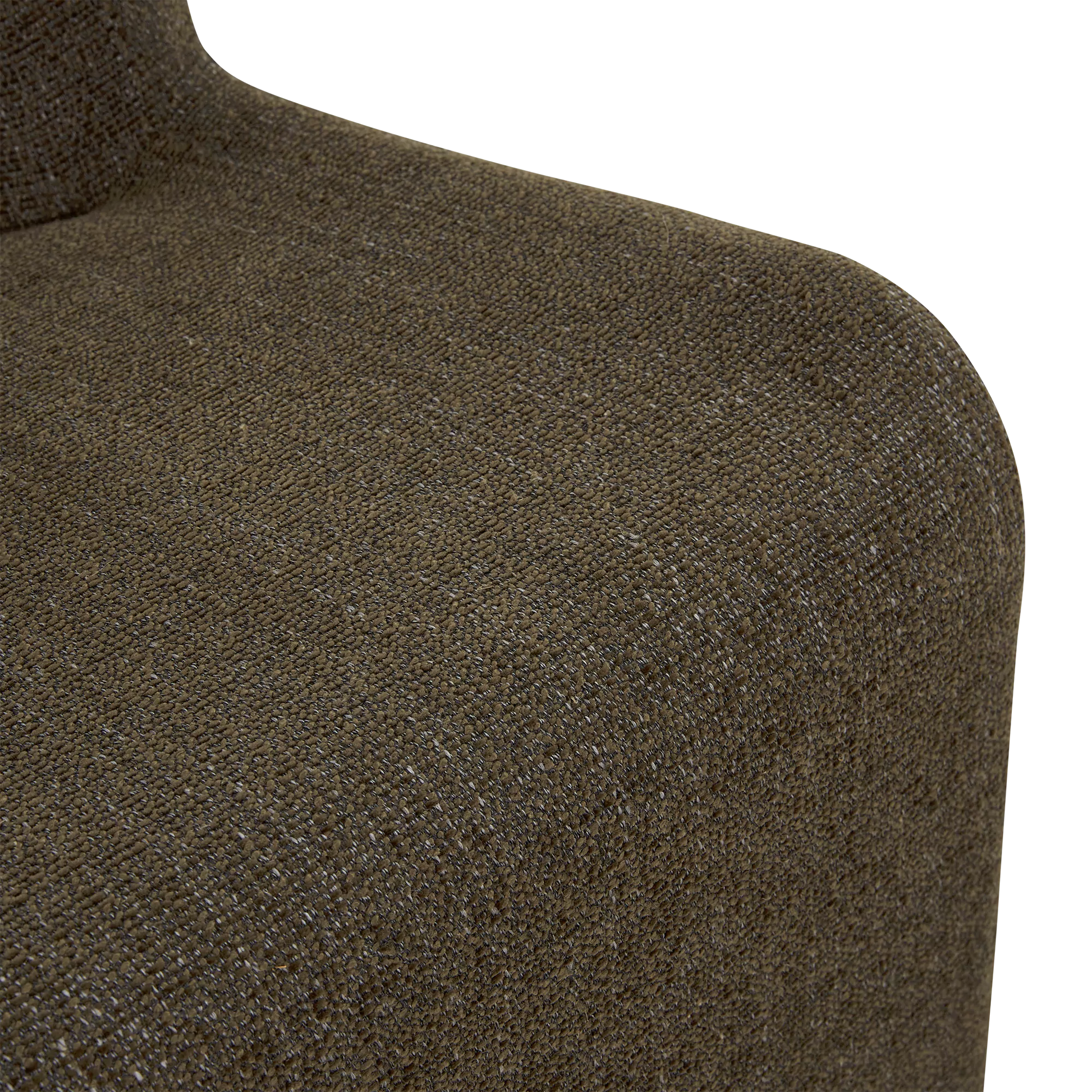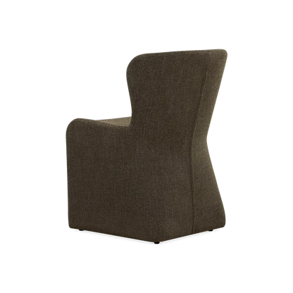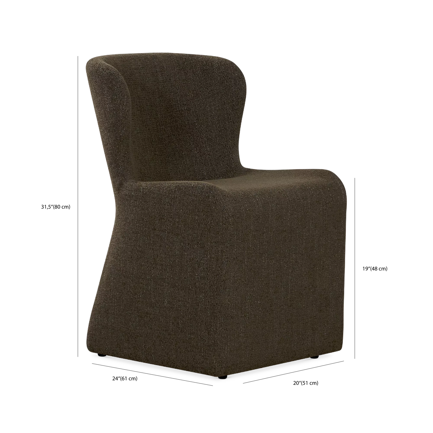 The Bound dining chair redefines modern seating with its bold, continuous silhouette. Wrapped in richly textured fabric, it balances sculptural curves with inviting comfort. A seamless, fully upholstered base grounds the design, while its curved backrest provides support for an artful yet functional complement to any dining room.