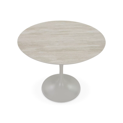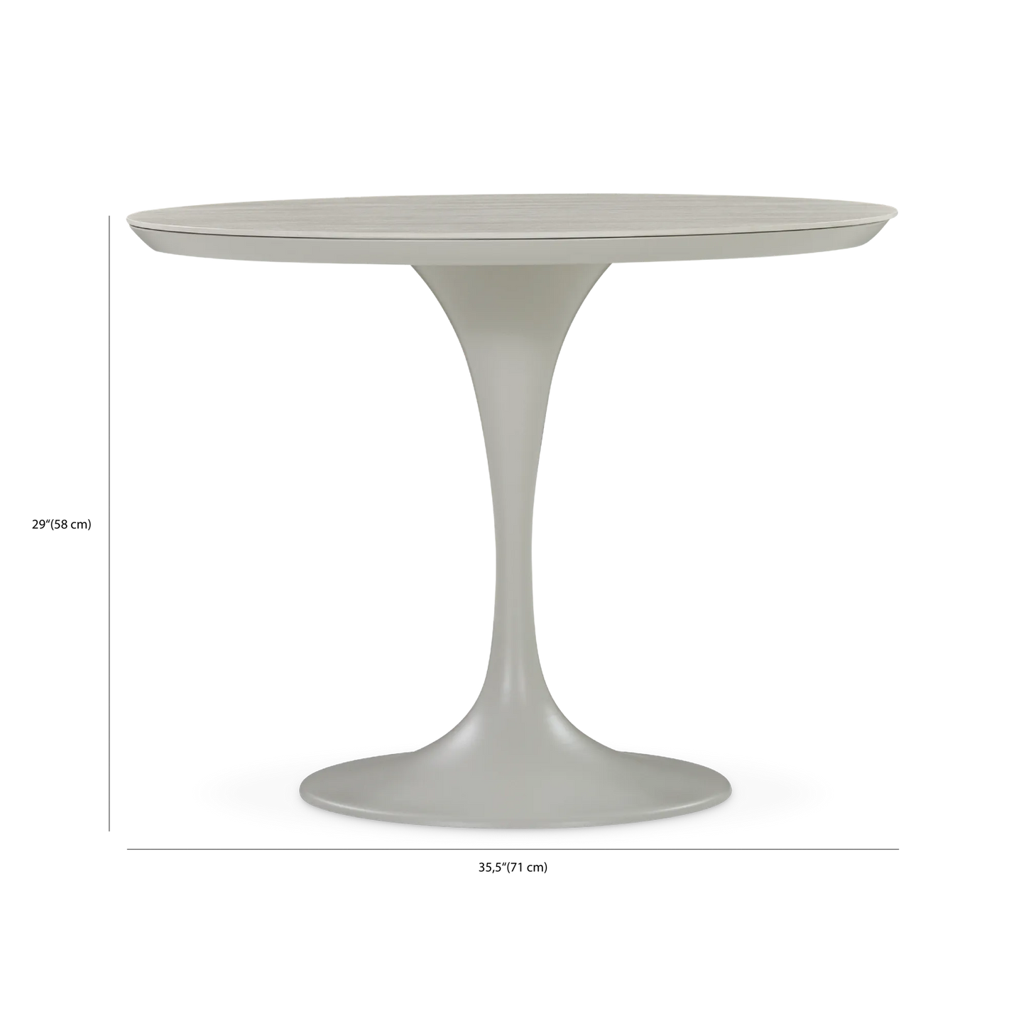 Enjoy every meal in timeless elegance and modern style. Designed for indoors and out, this dining table inspired by the legendary Tulip table features an aluminium pedestal base and superb ceramic top, both engineered to withstand the elements.