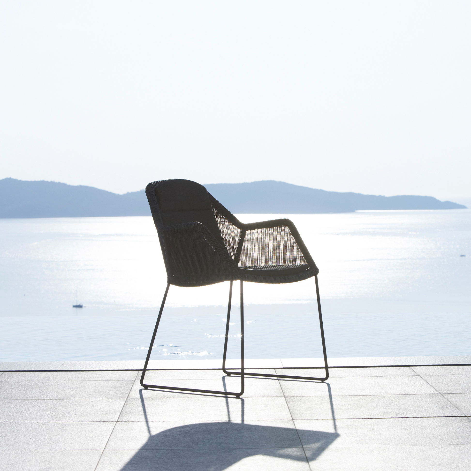 As light as a summer breeze, this dining chair by Danish duo Strand+Hvass is distinguished by its delicate, sculptural silhouette. Its angled seat and flexible, synthetic fibre weave guarantee optimal comfort. The cushions, made in Canada, are optional.