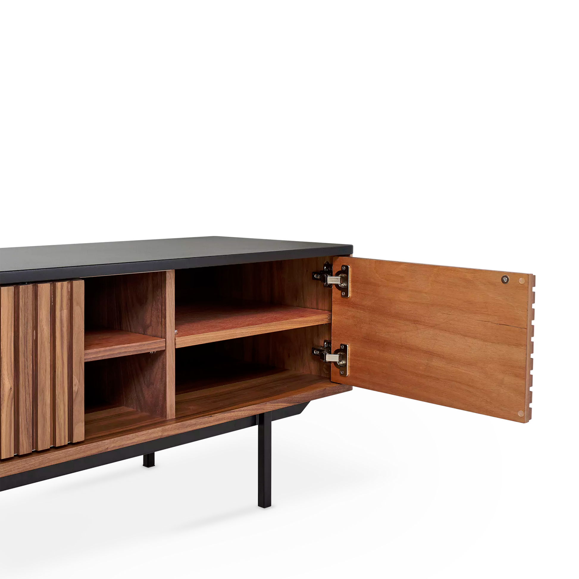 Here, Scandinavian design joins the Japanese art of living to create a silhouette that stands out with its understated and elegant lines. Perched on a set of slim legs, the Brixton TV stand will elevate your living room in delicate style.