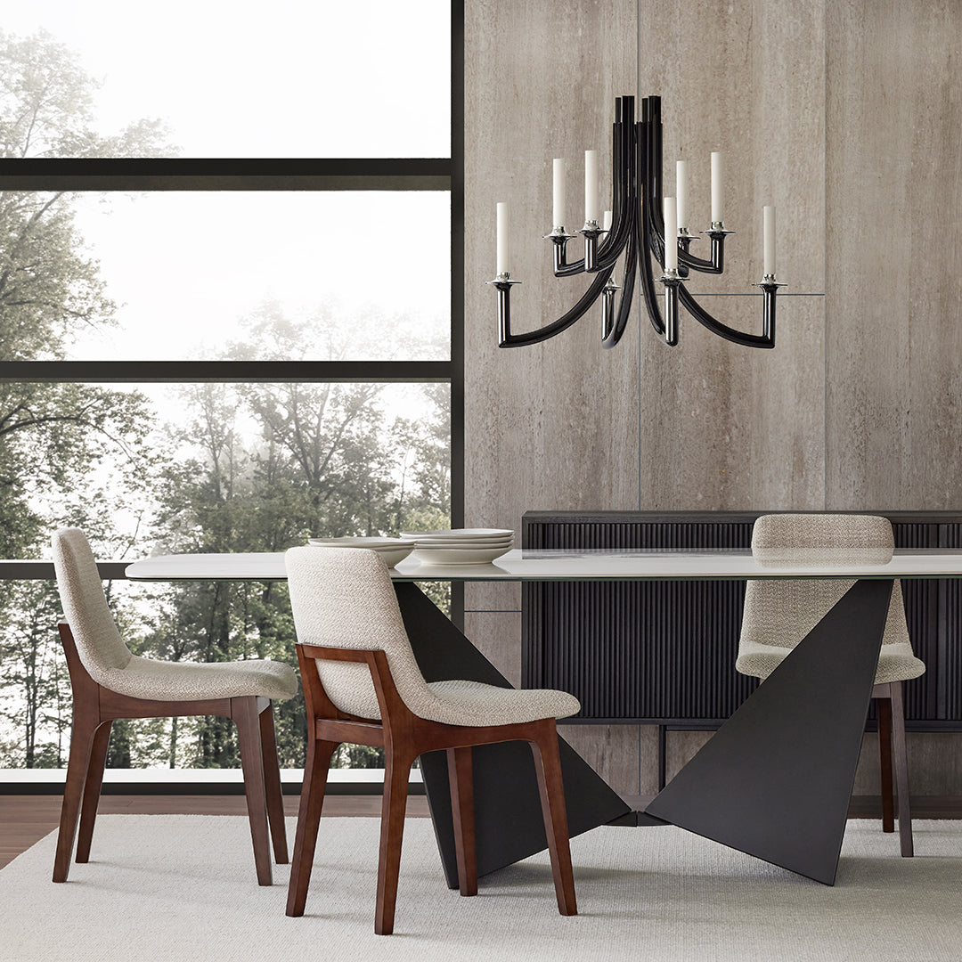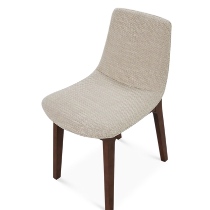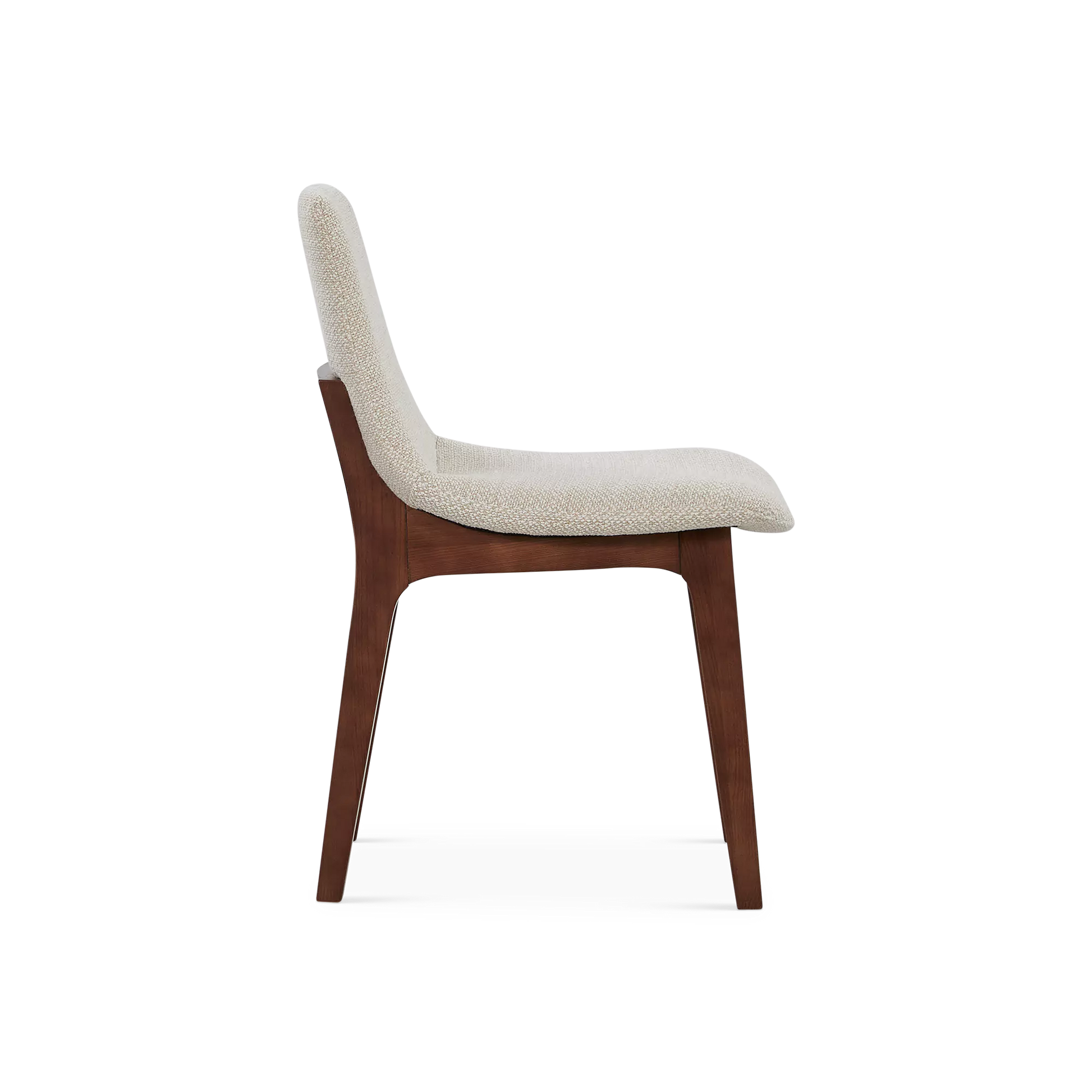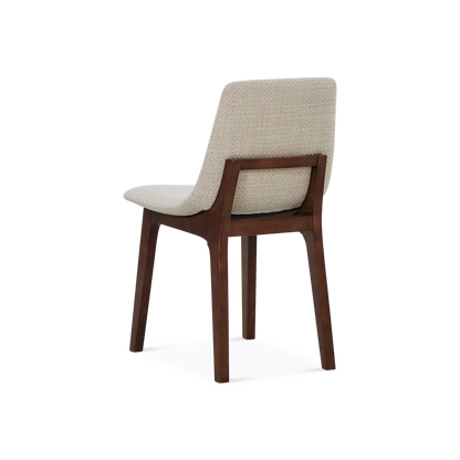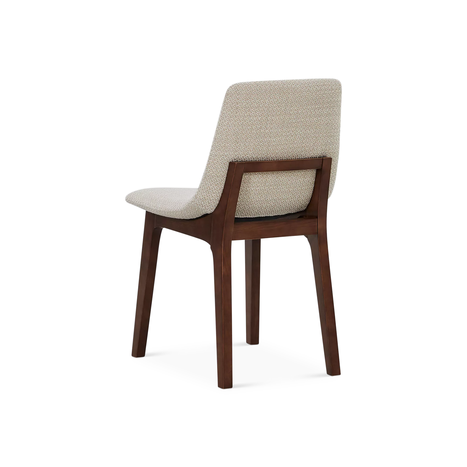Upholstered in subtly textured fabric, equipped with a spacious, slightly curved seat and finished with straight wooden legs that extend upward to form a supportive, low-profile backrest, the Calixte chair will enhance any dining room in understated style.